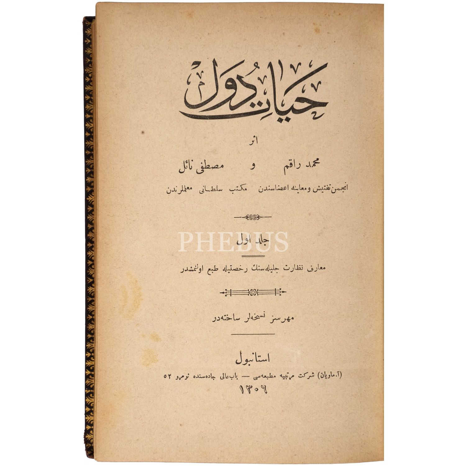 HAYAT-I DÜVEL (1. cilt), Mehmed Rakım - Mustafa Nail, 1306, A. Maviyan Şirket-i Mürettibiye Matbaası, 501 sayfa, 14x19 cm...