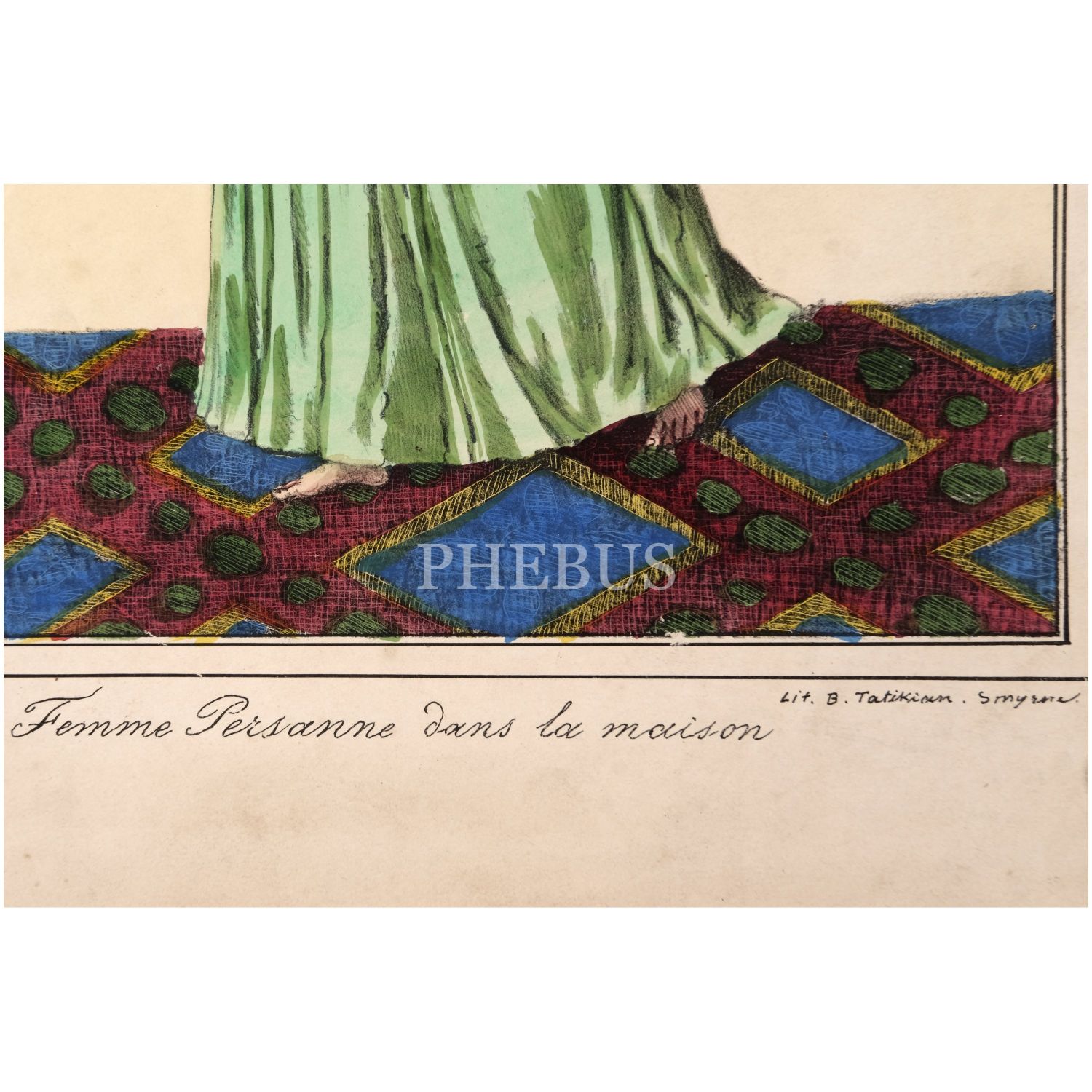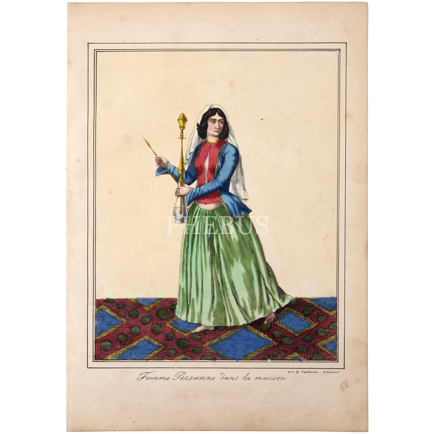Evin içinde İranlı (Pers) kadın, "Femme Persanne dans la maison", Lith. B. Tatikian, Smyrne, 23x32 cm...