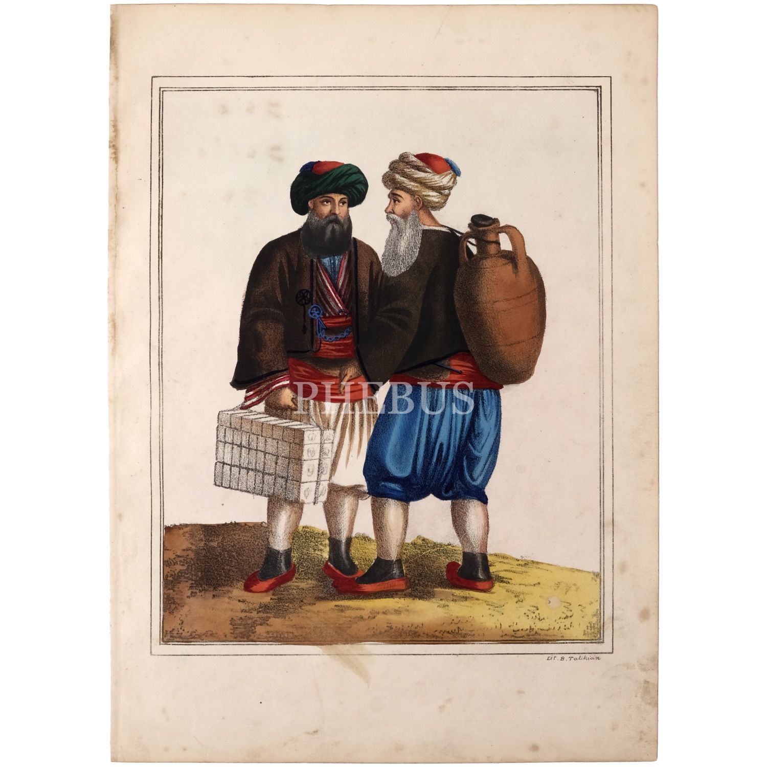 Seyyar tütüncü ve saka, Lith. B. Tatikian, Smyrne, 23x32 cm...