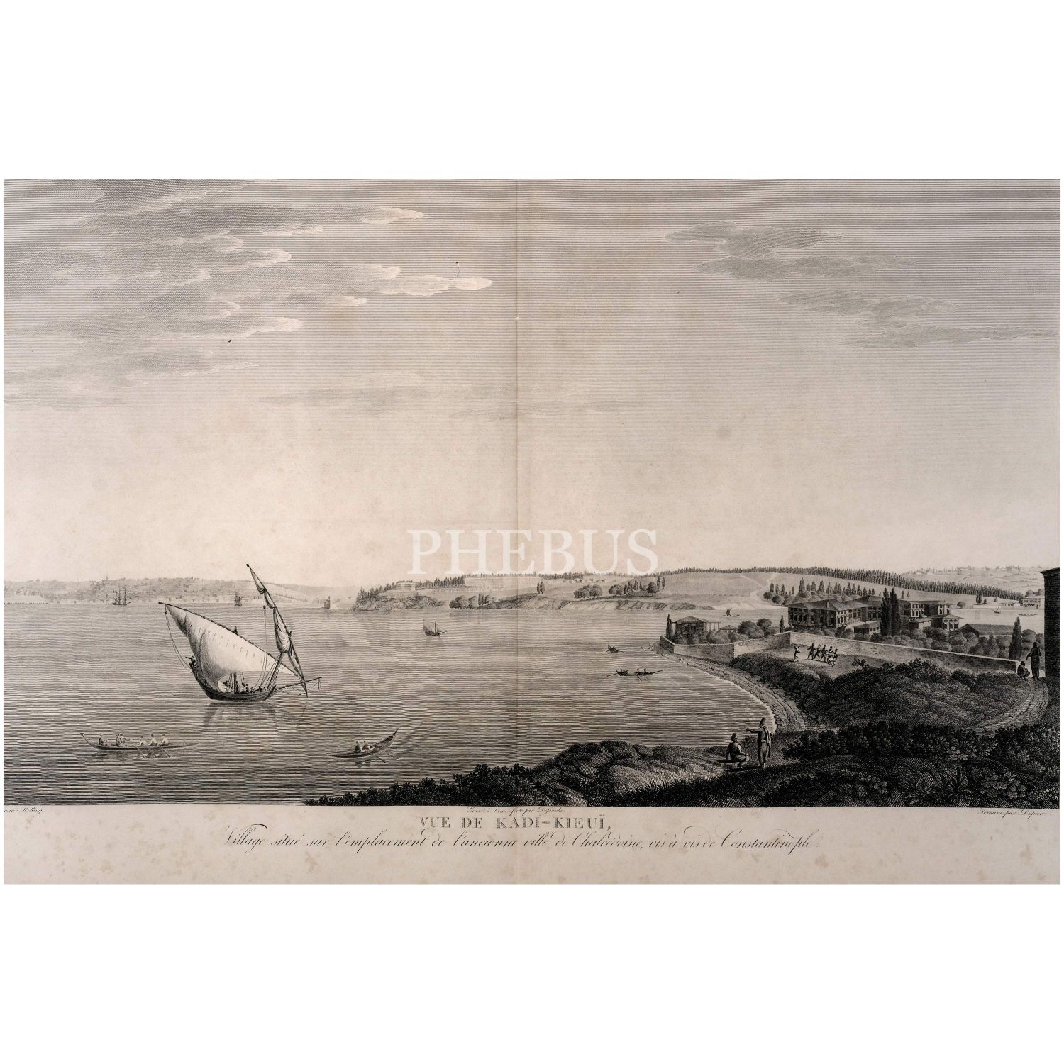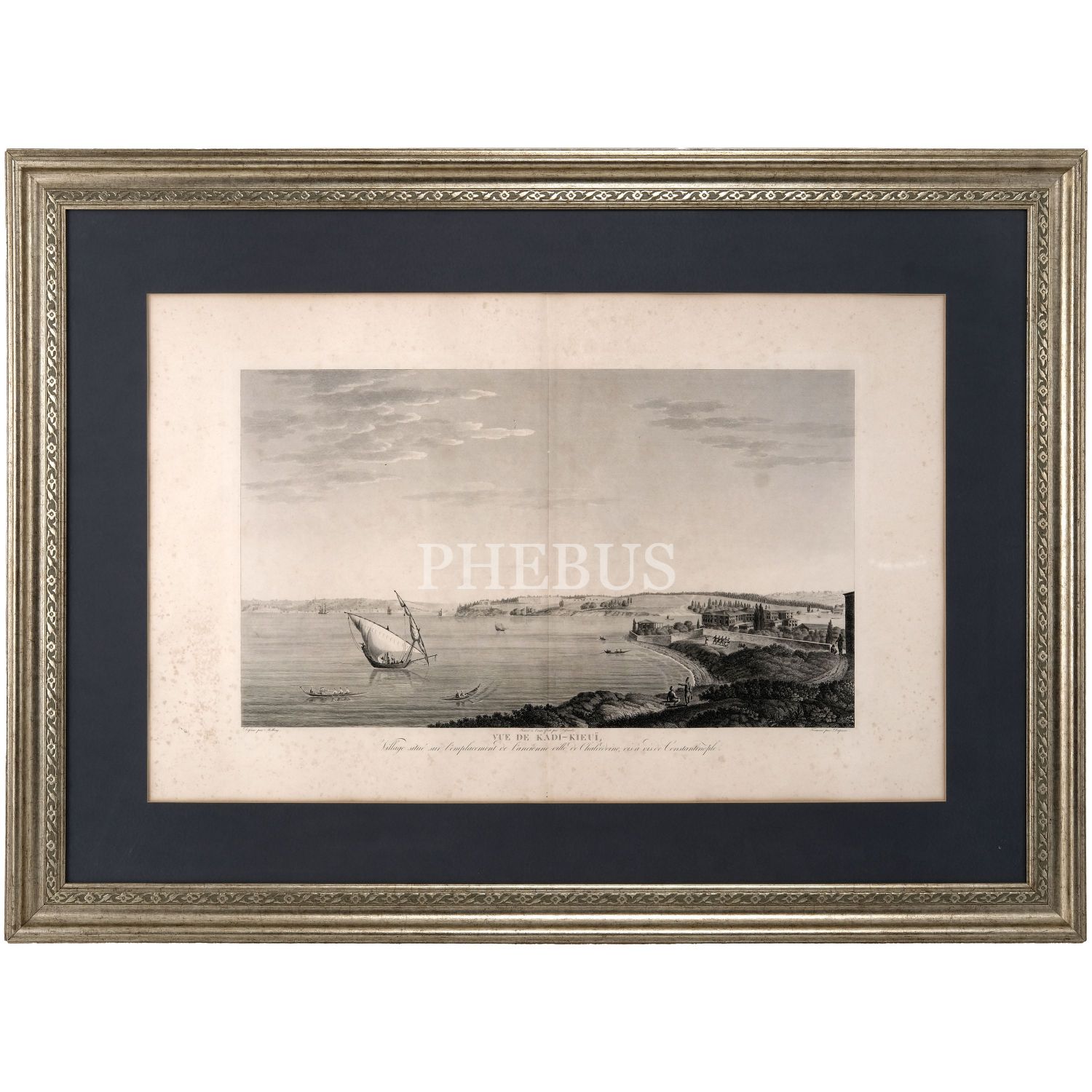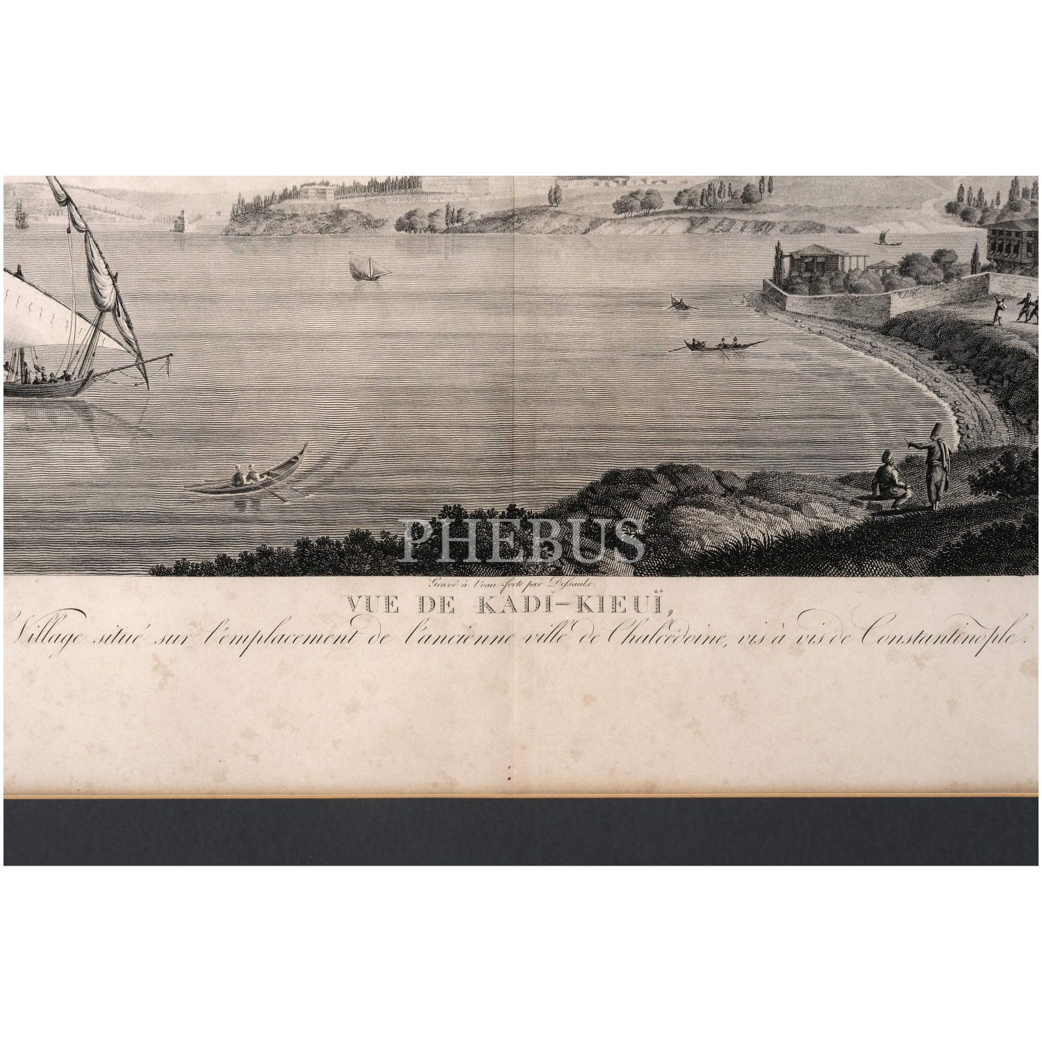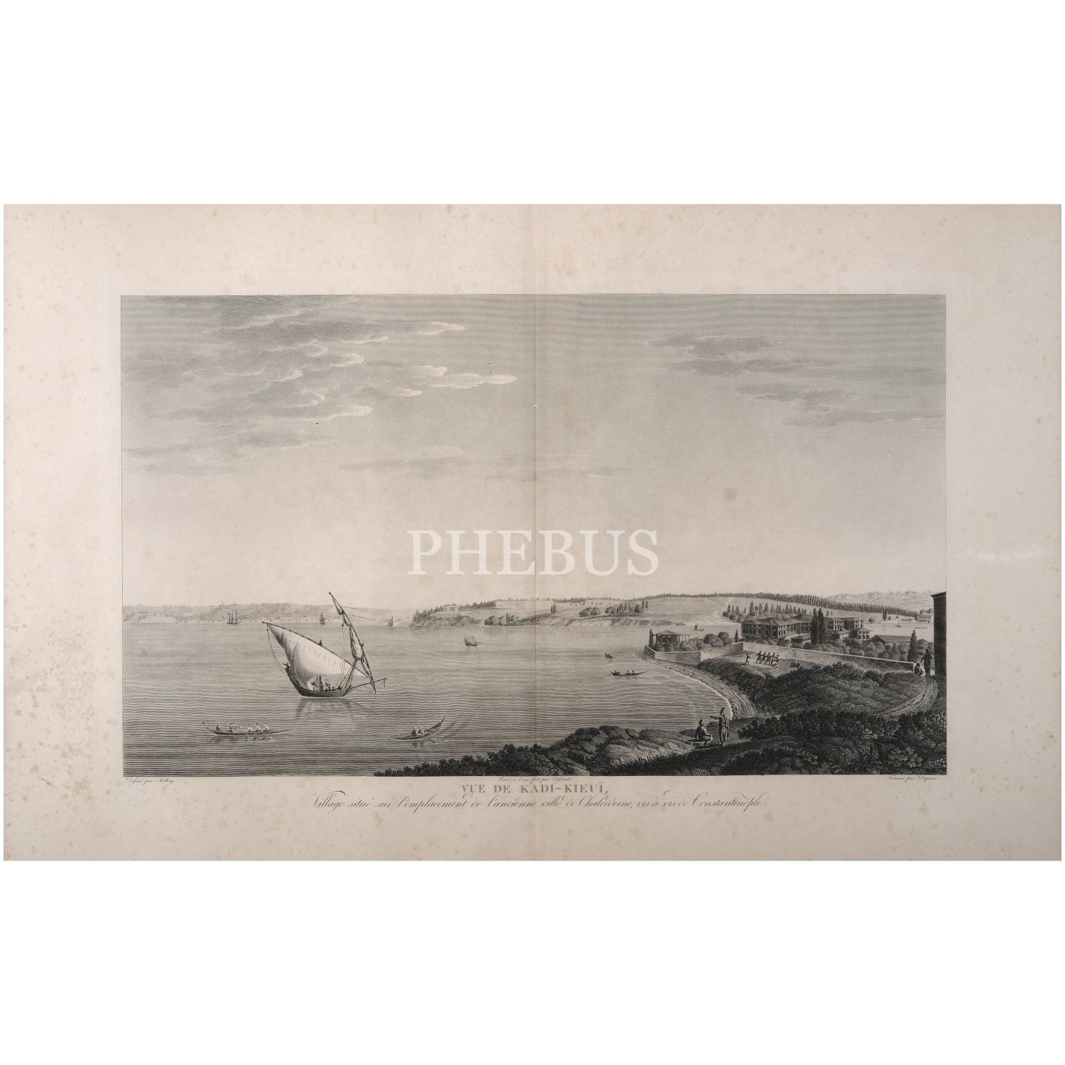 "VUE DE KADI-KIEUI, Village situé sur l’emplacement de l’ancienne ville de Chalcédoine, vis-à-vis de Constantinople" (Konstantinopolis´in karşısında, Kalkedon antik kentinin bulunduğu Kadıköy´ün görünümü), Antoine Ignace Melling, 1825, bakır oyma baskı, (çerçevesiyle birlikte) 121x90 cm...