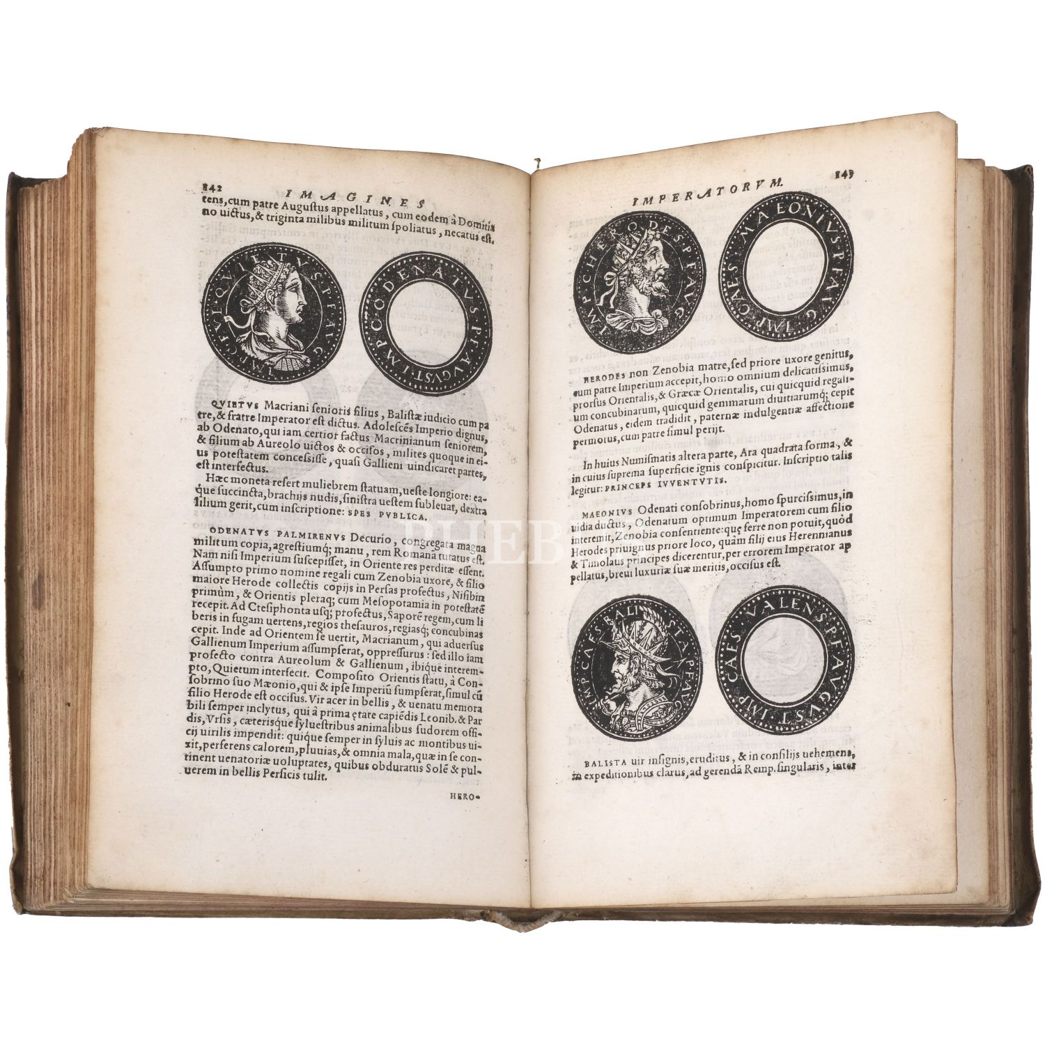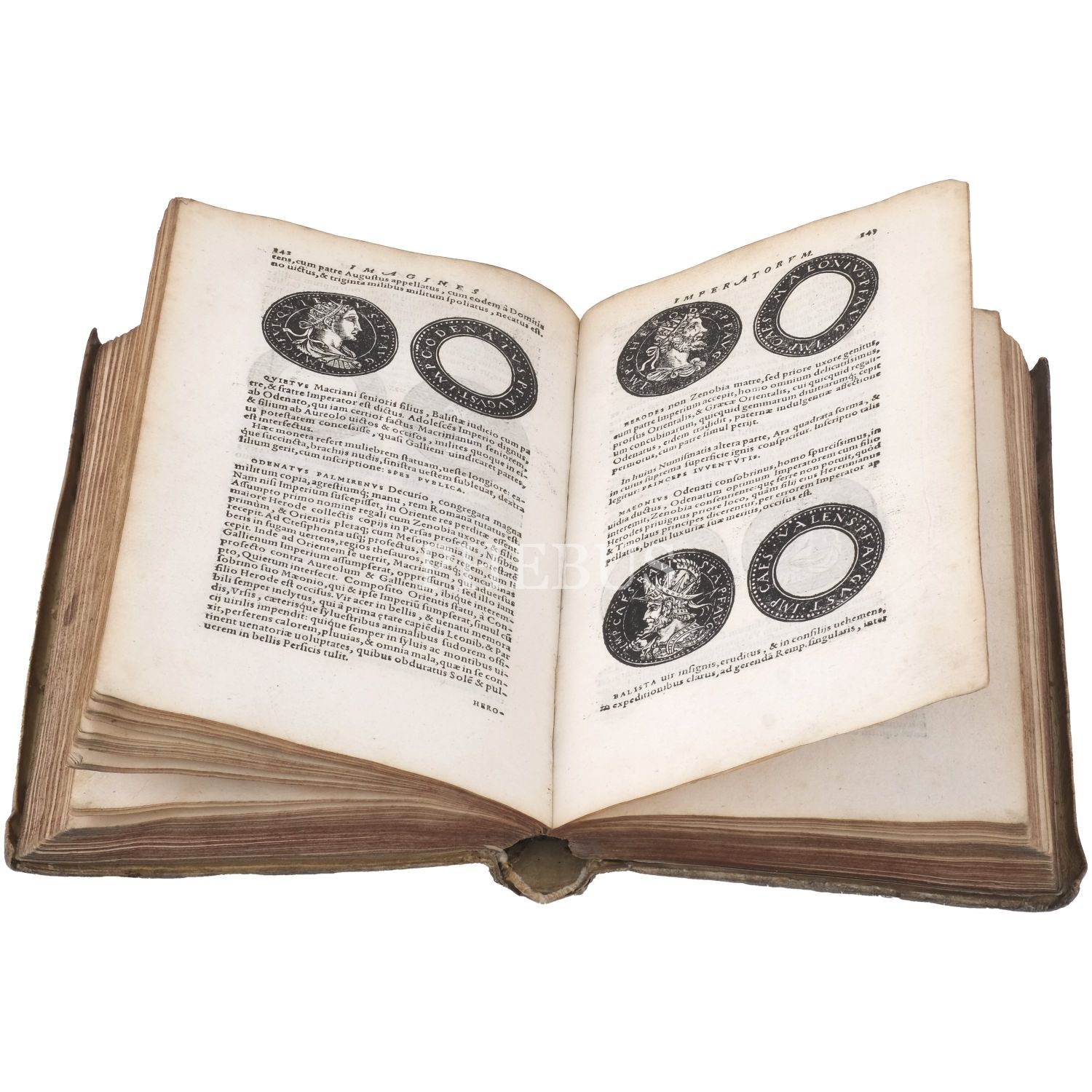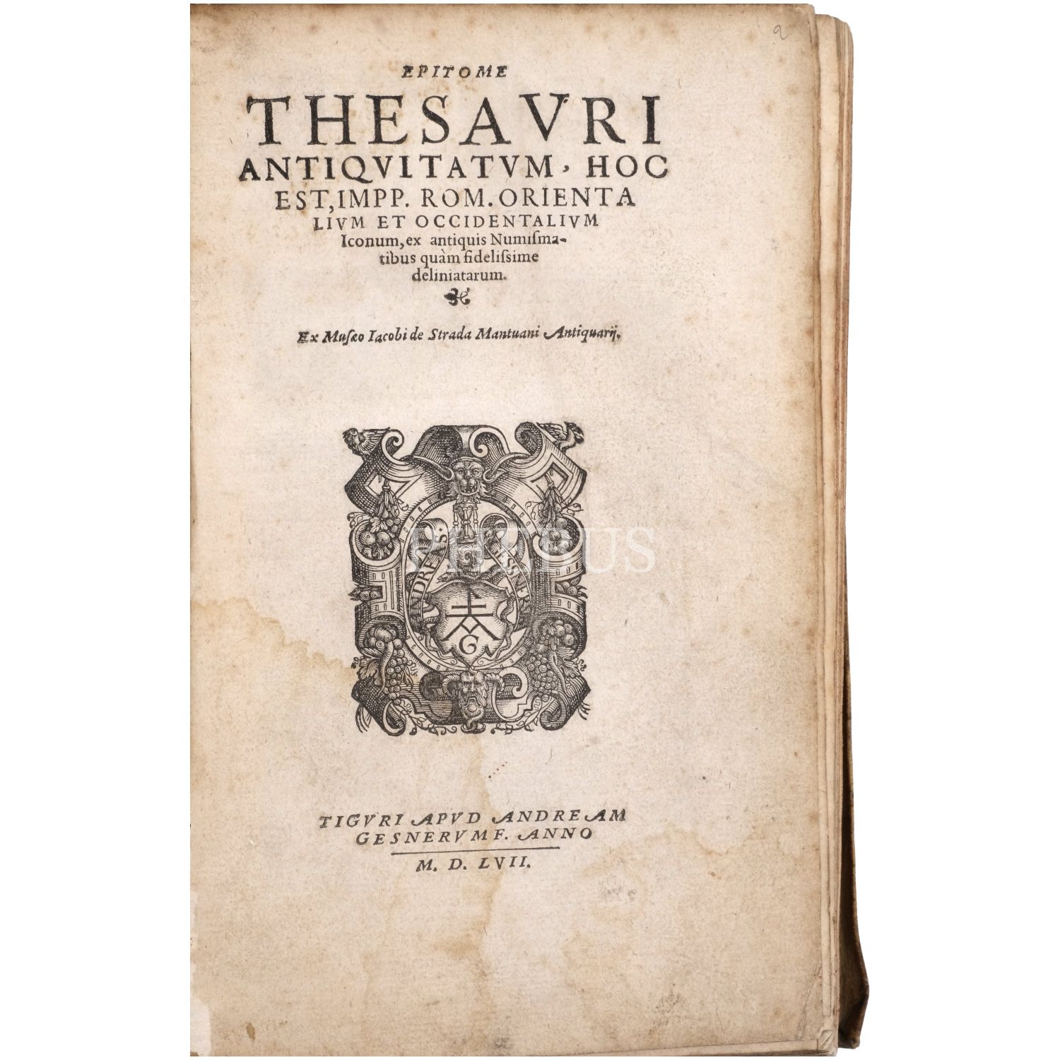 Bizans sikkelerini içeren ilk kitap olma özelliği taşıyan çalışma; nümismatist, antikacı ve sanat tüccarı Jacopo Strada´nın (1507-1588), özel koleksiyonlarda yer alan sikkelerdeki imparator tasvirlerini gravürler halinde bir araya getirmesiyle meydana gelmiştir... Dönemine ait vellum cildinde.