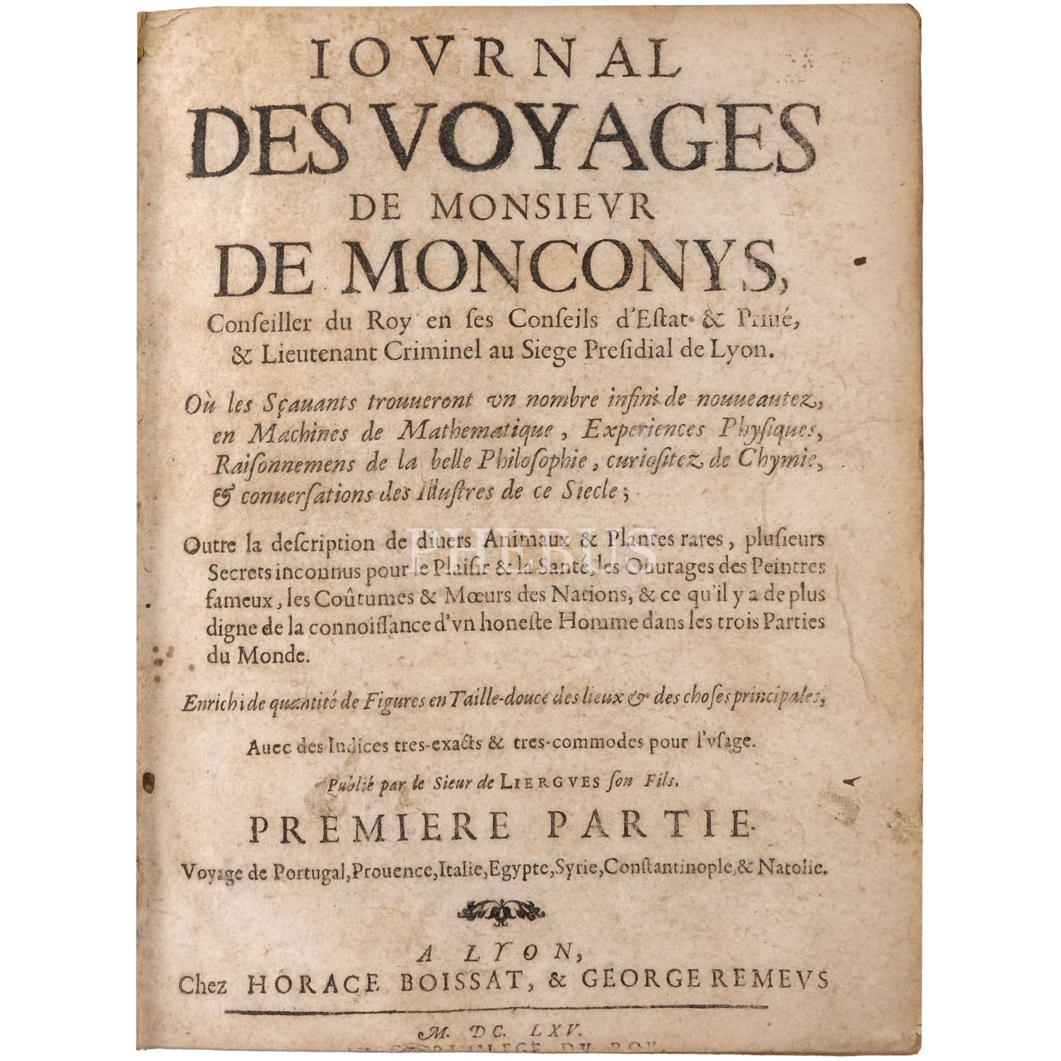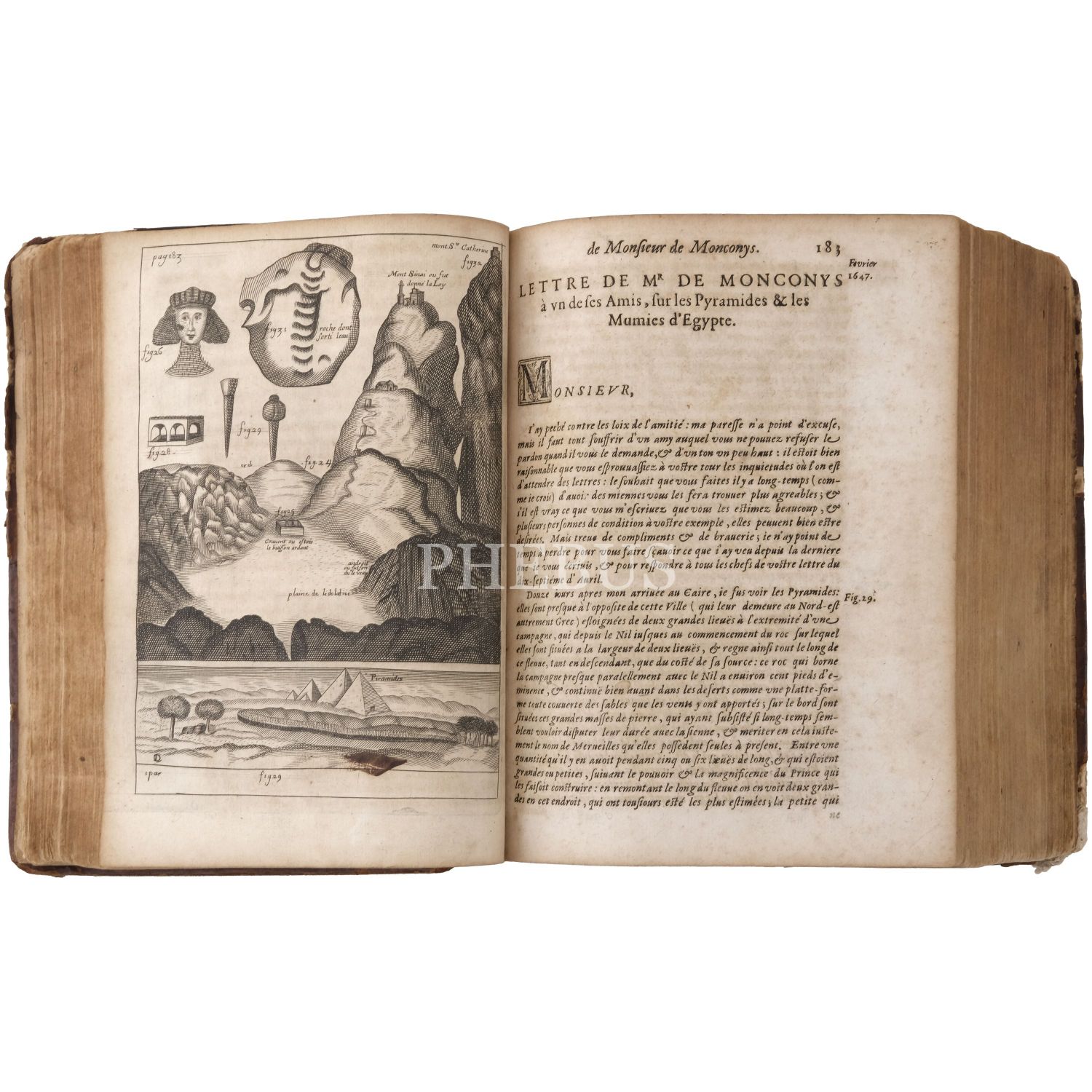 JOURNAL DES VOYAGES DE MONSIEUR DE MONCONYS, Conseiller du Roy en ses Conseils d’Estat & Privé, & Lieutenant Criminel au Siège Presidial de Lyon, Balthasar de Monconys, 1665, A Lyon, Chez Horace Boissat & George Remeus, 491+503 sayfa (ilave olarak birçok ek sayfa mevcuttur), 19x24 cm...