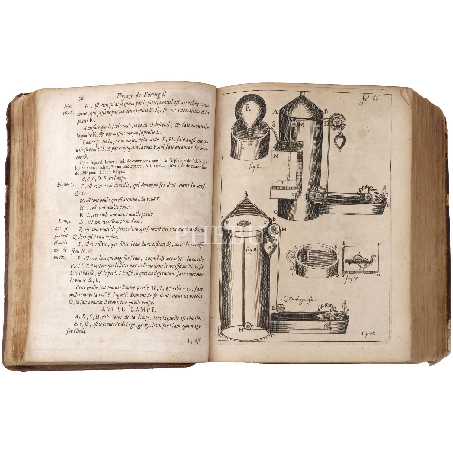 Metafizik ve mistisizme büyük ilgi duyan Fransız fizikçi ve yargıç Balthasar de Monconys´nin, Yunan ve Arap simyacıların öğretilerinin kaynaklarını keşfetmek ve bilim adamlarıyla bilgi alışverişi yapmak amacıyla Küçük Asya ve Kutsal Topraklar´a, Portekiz´e, İspanya´ya, İtalya´ya, İngiltere´ye, Hollanda´ya ve Almanya´ya yaptığı yolculuklarda tuttuğu güncelerin, ölümü sonrası oğlu tarafından derlenip yayımlanmış hali... Sırtı altın yaldız dekorlu, tümüyle deri dönem cildinde. *Cildinde bölgesel yıpranmalar ve genel yorgunluk mevcuttur.