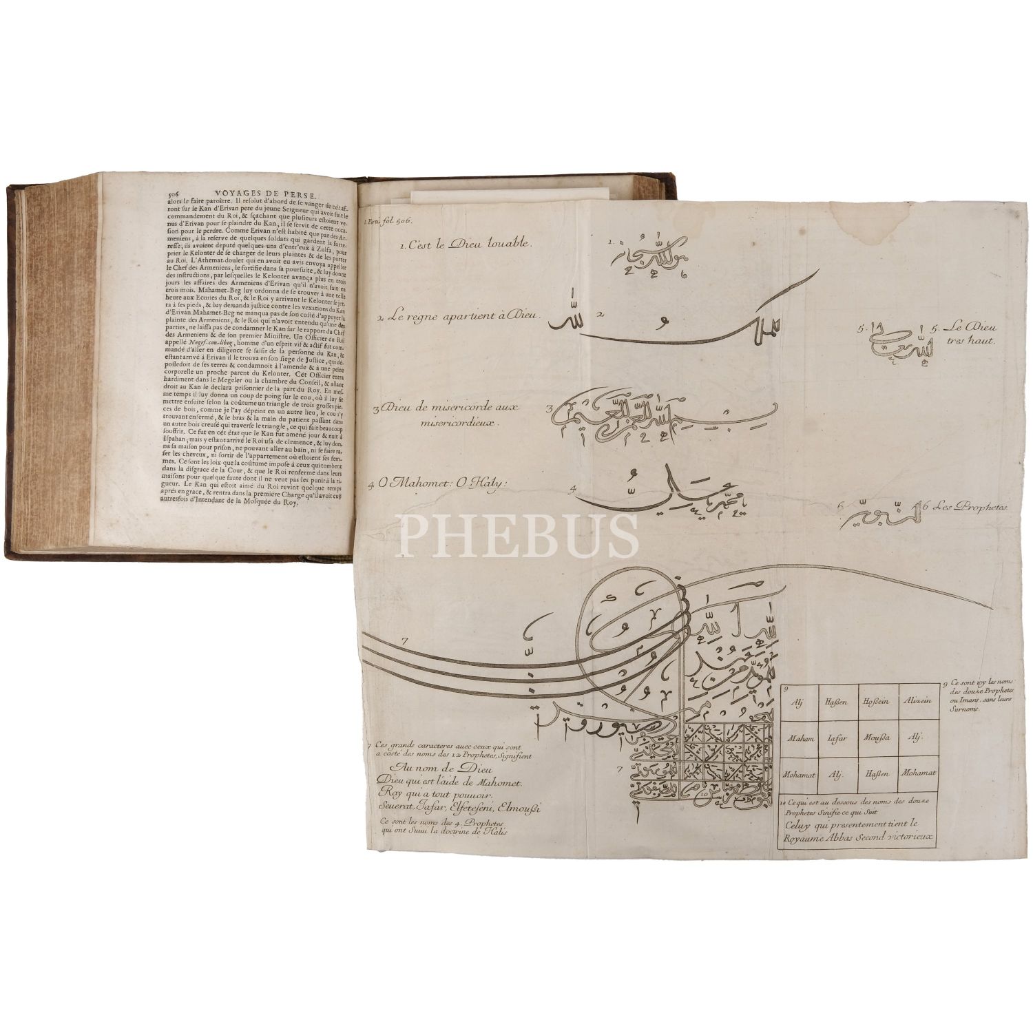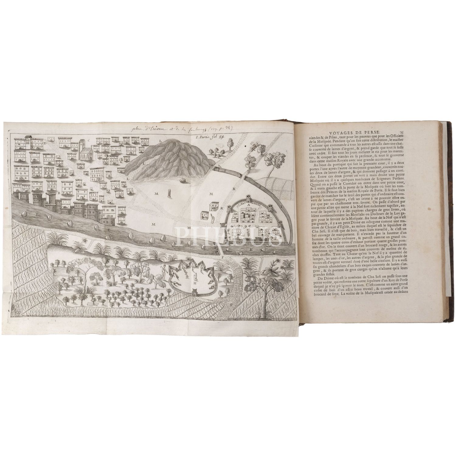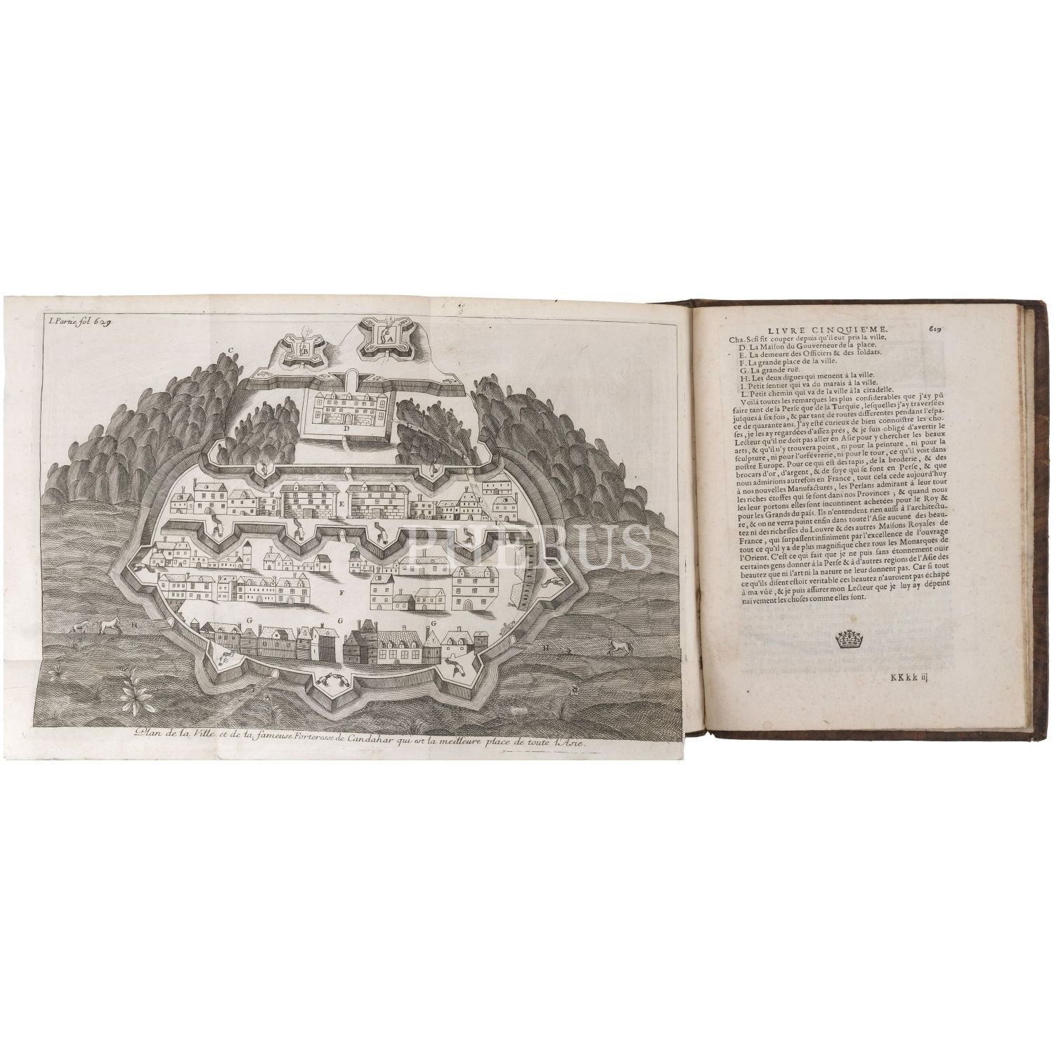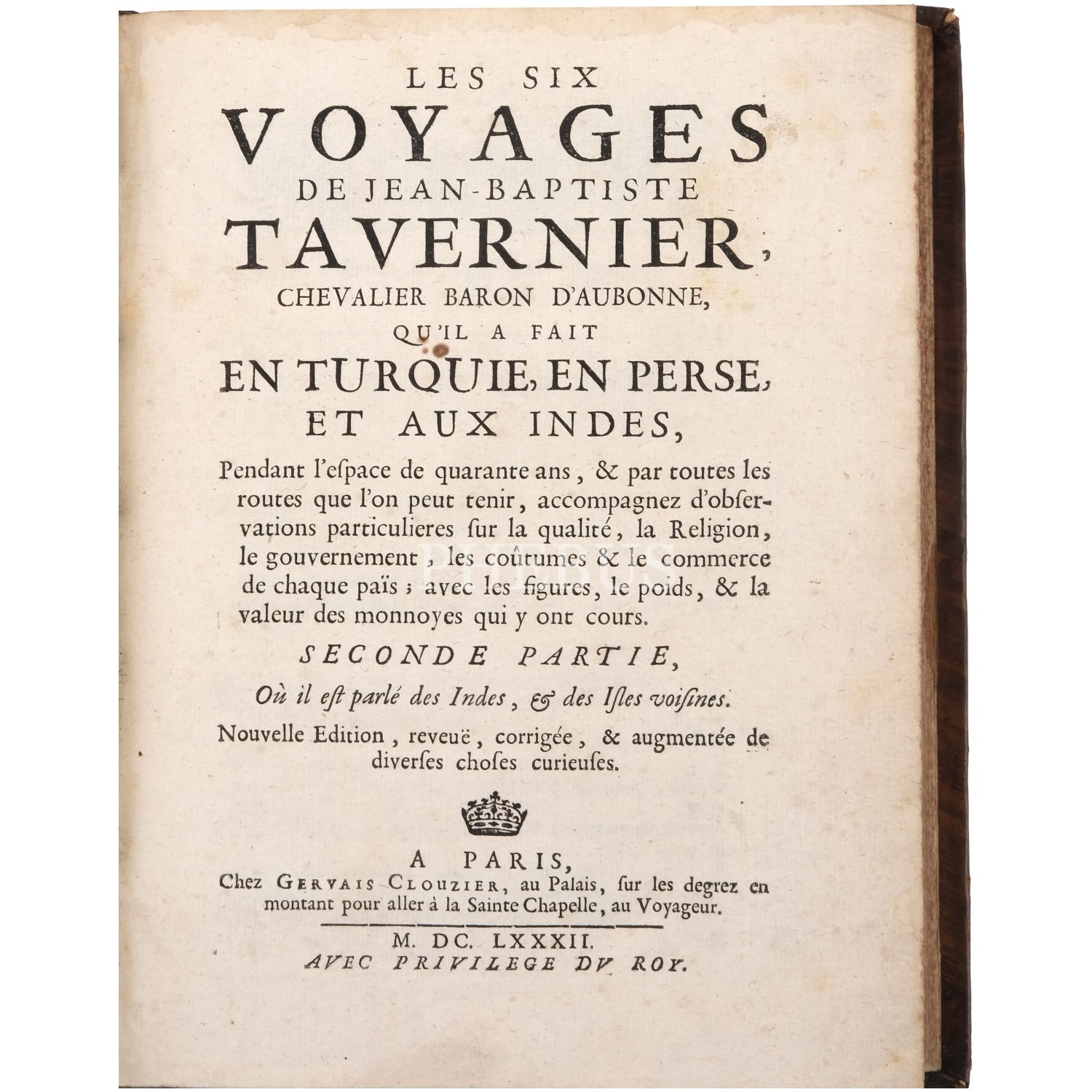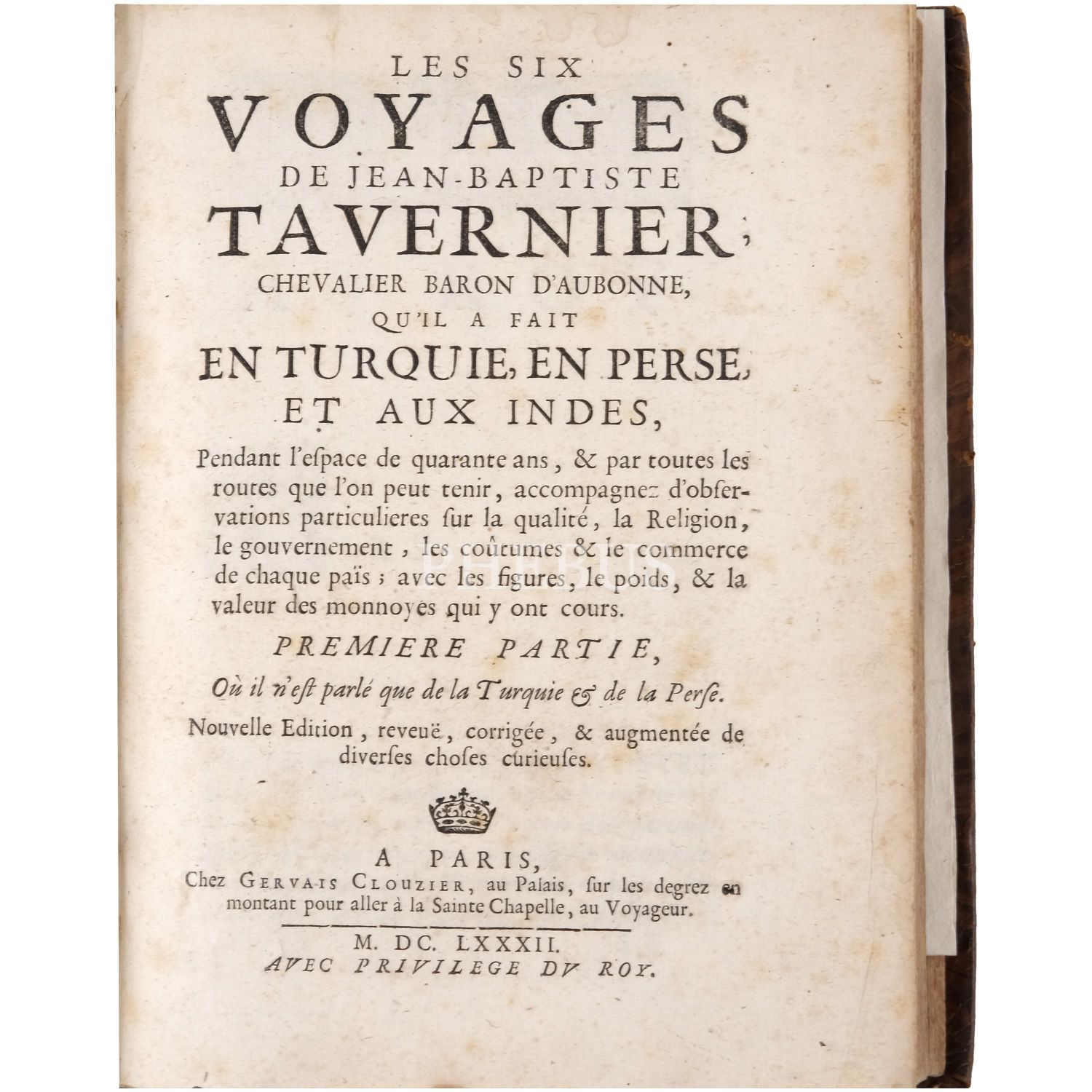 Fransız seyyah Jean-Baptiste Tavernier´in; 1631 yılında çıktığı ve İstanbul´dan İsfahan´a uzanan uzun bir rotayı izlediği Doğu seyahatinin, çok sayıda katlanır levhayla okurlarla buluşan seyahatnamesi... Sırtları panelli, altın yaldız dekor ve başlıklı, tümüyle deri dönem ciltlerinde.