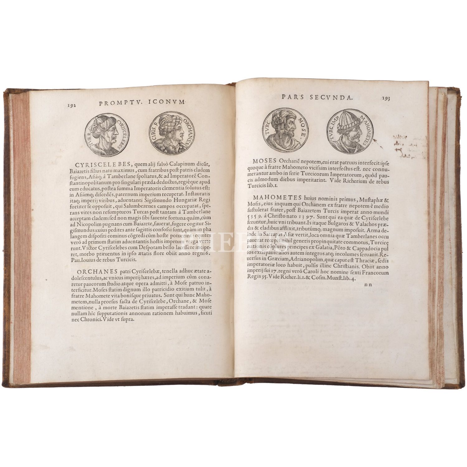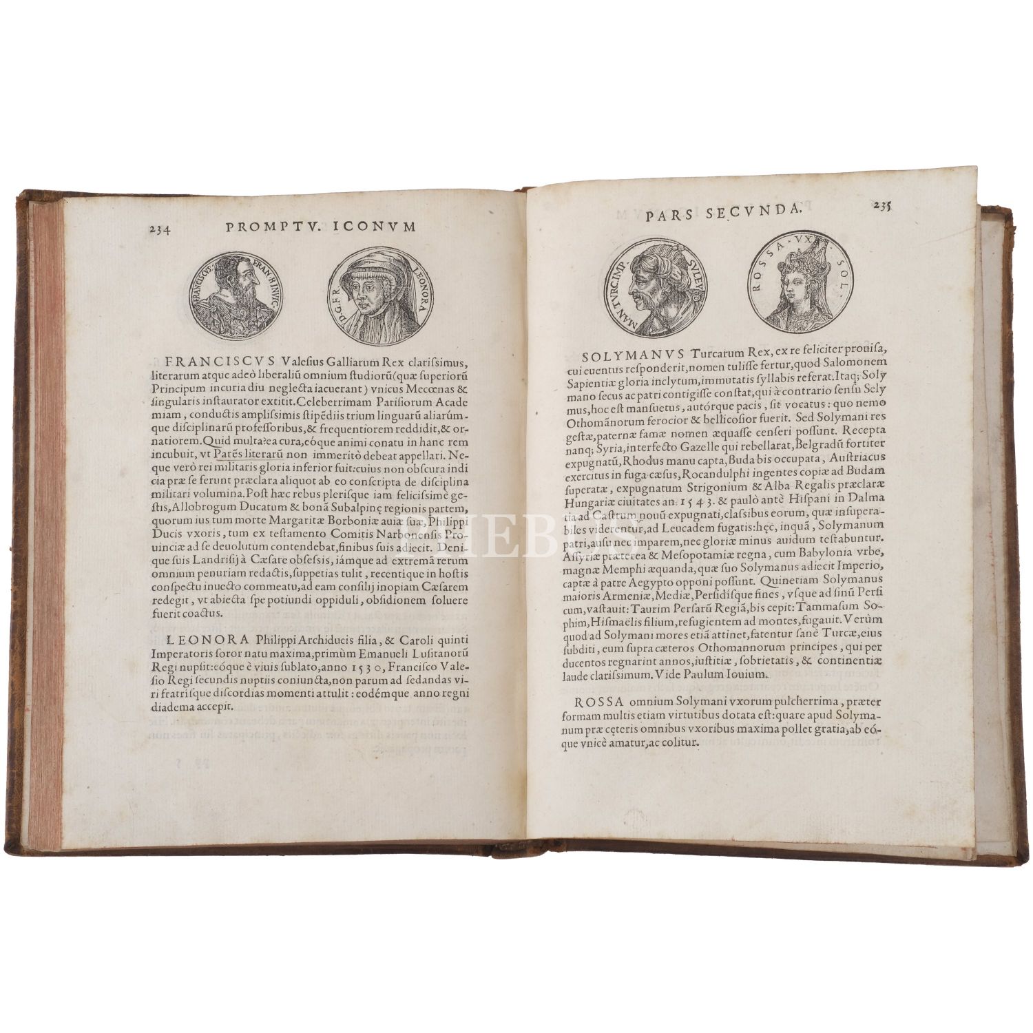 İsa´dan önce ve sonra olarak ikiye ayrılan kitapta, Sapho´dan Sokrates´e, Büyük İskender´den Fatih Sultan Mehmet´e fikirleri, eserleri ve eylemleriyle tarihe yön veren isimler ve mitolojik karakterler, güvenilir kaynaklardan derlenen kısa biyografileri ve antik paralardaki tasvirlerine -bazense hayal gücüne- dayanan, madalyon şeklindeki portreleriyle yer alıyor. Sırtı panelli ve altın yaldız süslemeli, iç kapakları ebru süslemeli, tümüyle deri dönem cildinde...
