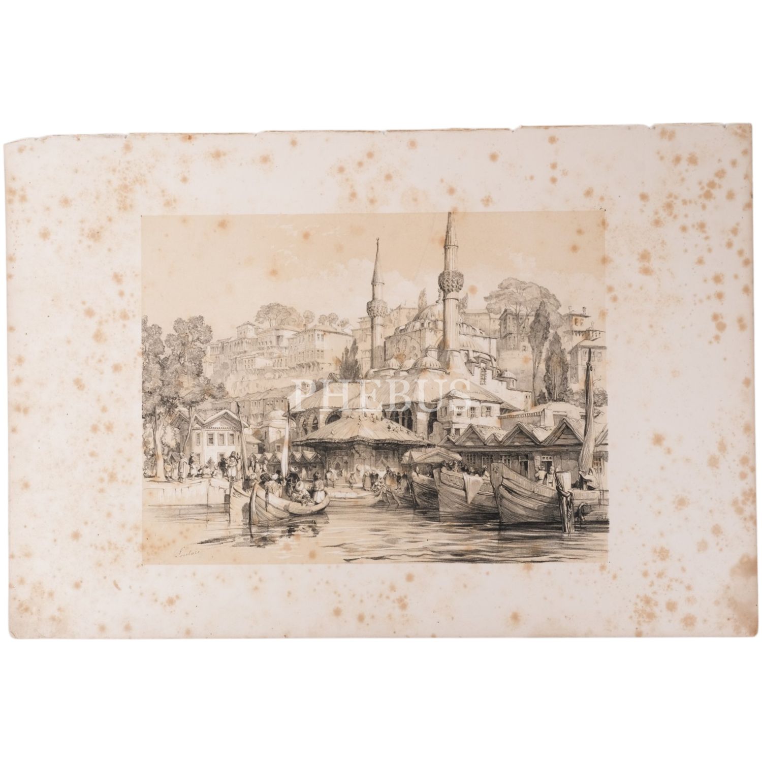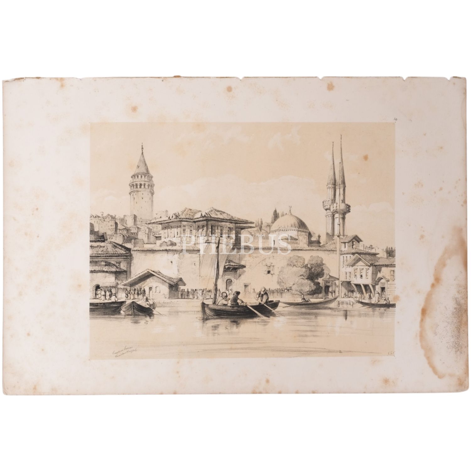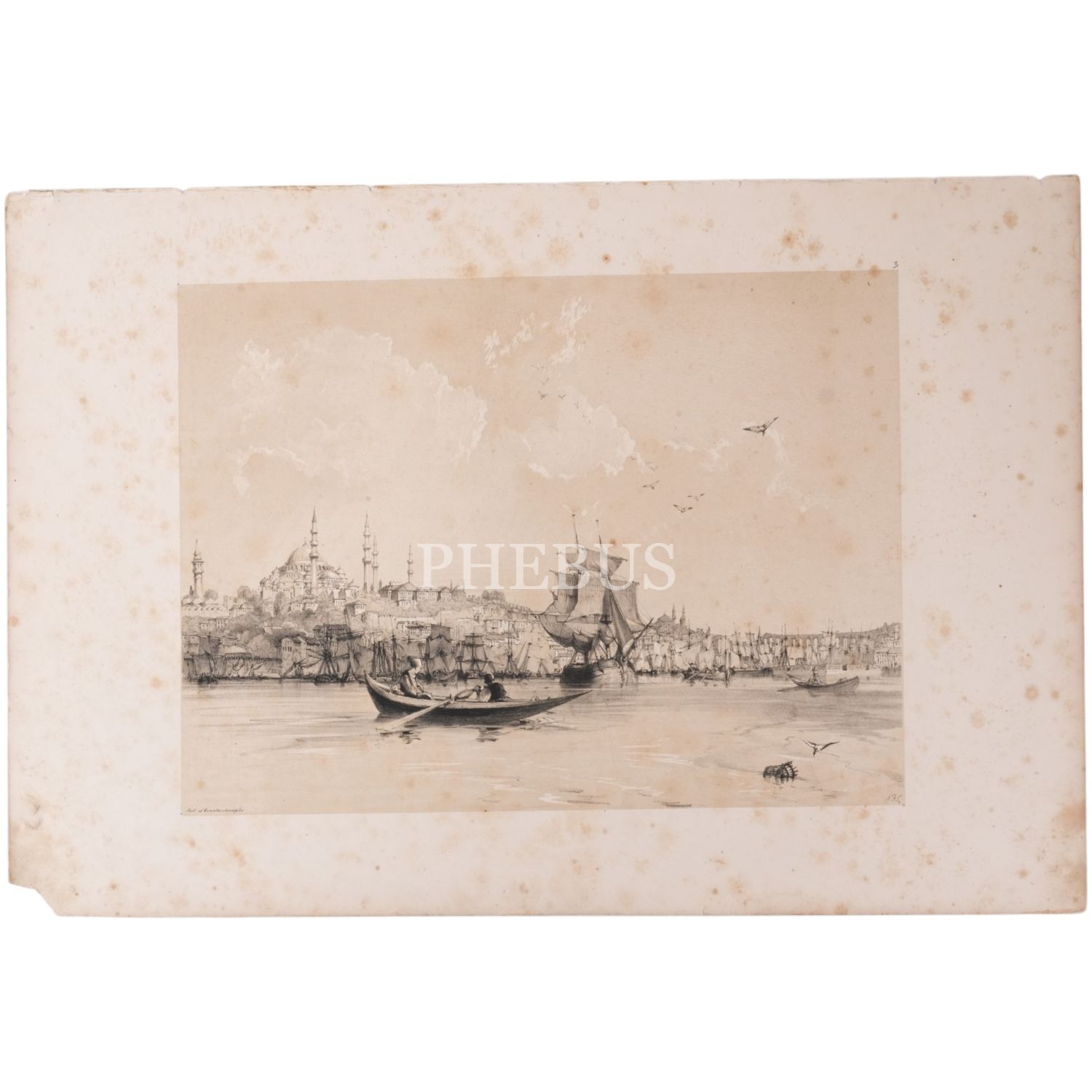 Uzun yıllar yaşadığı Kahire başta olmak üzere Doğu ve Akdeniz seyahatleriyle bu bölgelerde yer alan ülke ve şehirleri ustaca resmeden İngiliz asıllı oryantalist ressam John F. Lewis (1804-1876) tarafından hazırlanan meşhur İstanbul albümü... Albüm içinde 25 adet taş baskı levha mevcuttur. Altın yaldız başlıklı, deri sırtlı bez cildinde. *Cildin sırt kısmı dağılmış ve yapraklar sırttan ayrılmıştır.