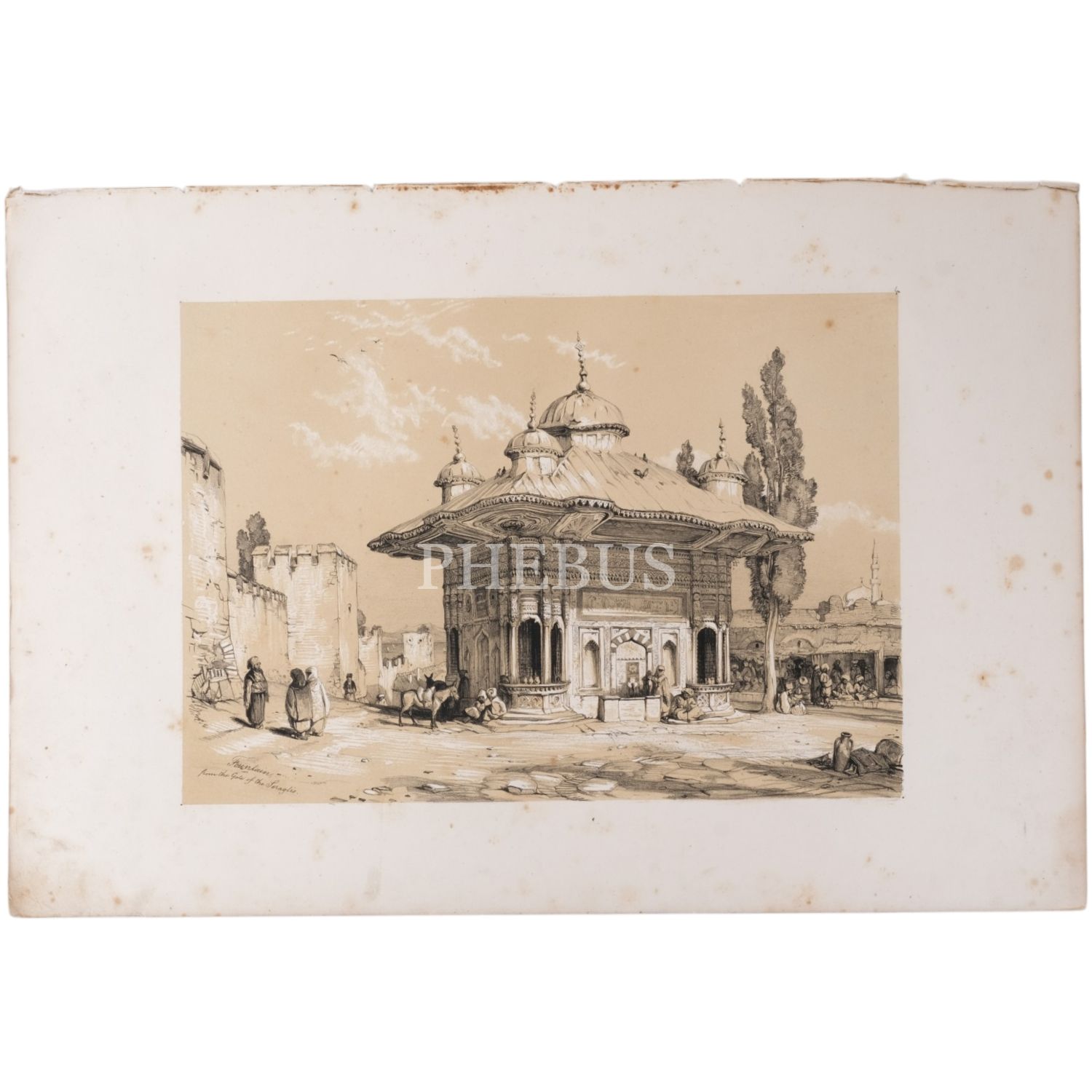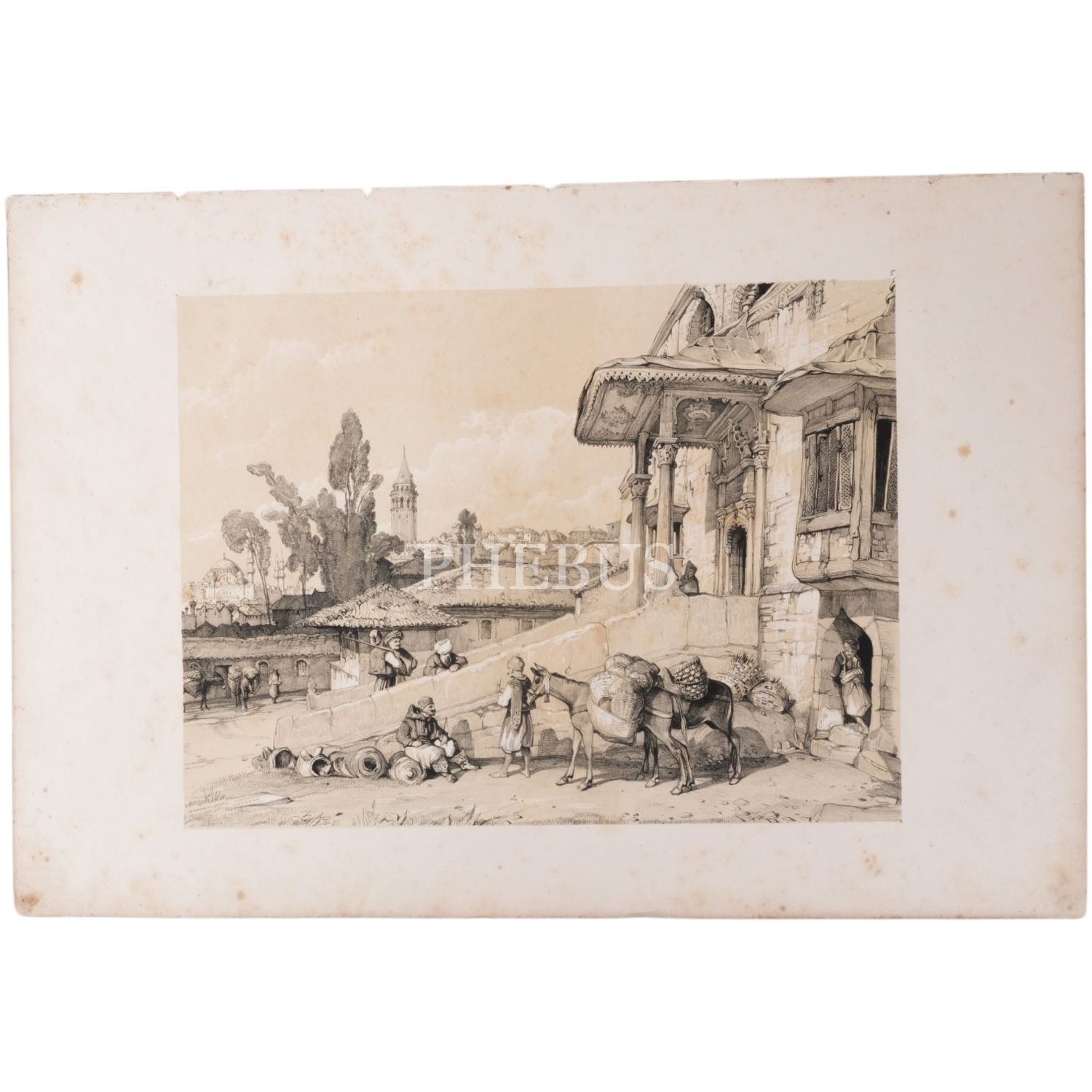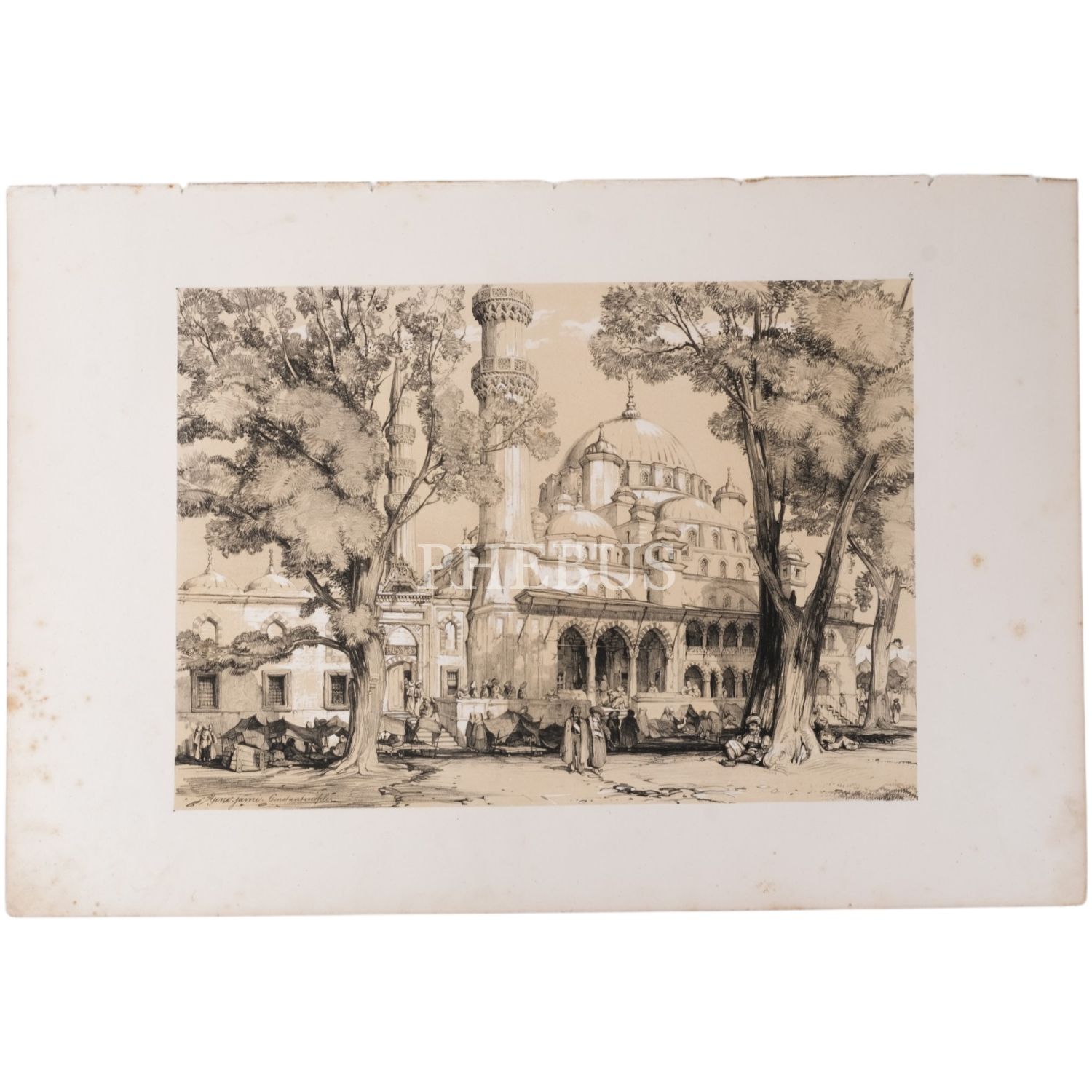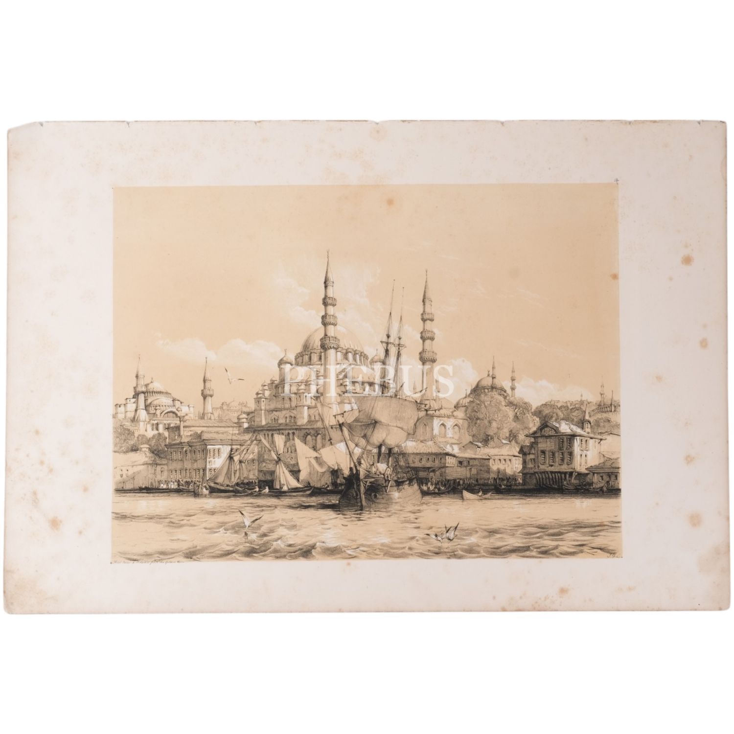 Uzun yıllar yaşadığı Kahire başta olmak üzere Doğu ve Akdeniz seyahatleriyle bu bölgelerde yer alan ülke ve şehirleri ustaca resmeden İngiliz asıllı oryantalist ressam John F. Lewis (1804-1876) tarafından hazırlanan meşhur İstanbul albümü... Albüm içinde 25 adet taş baskı levha mevcuttur. Altın yaldız başlıklı, deri sırtlı bez cildinde. *Cildin sırt kısmı dağılmış ve yapraklar sırttan ayrılmıştır.