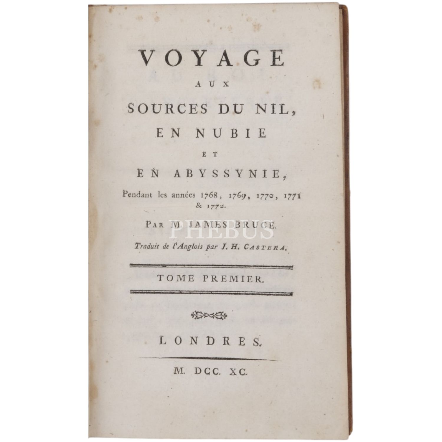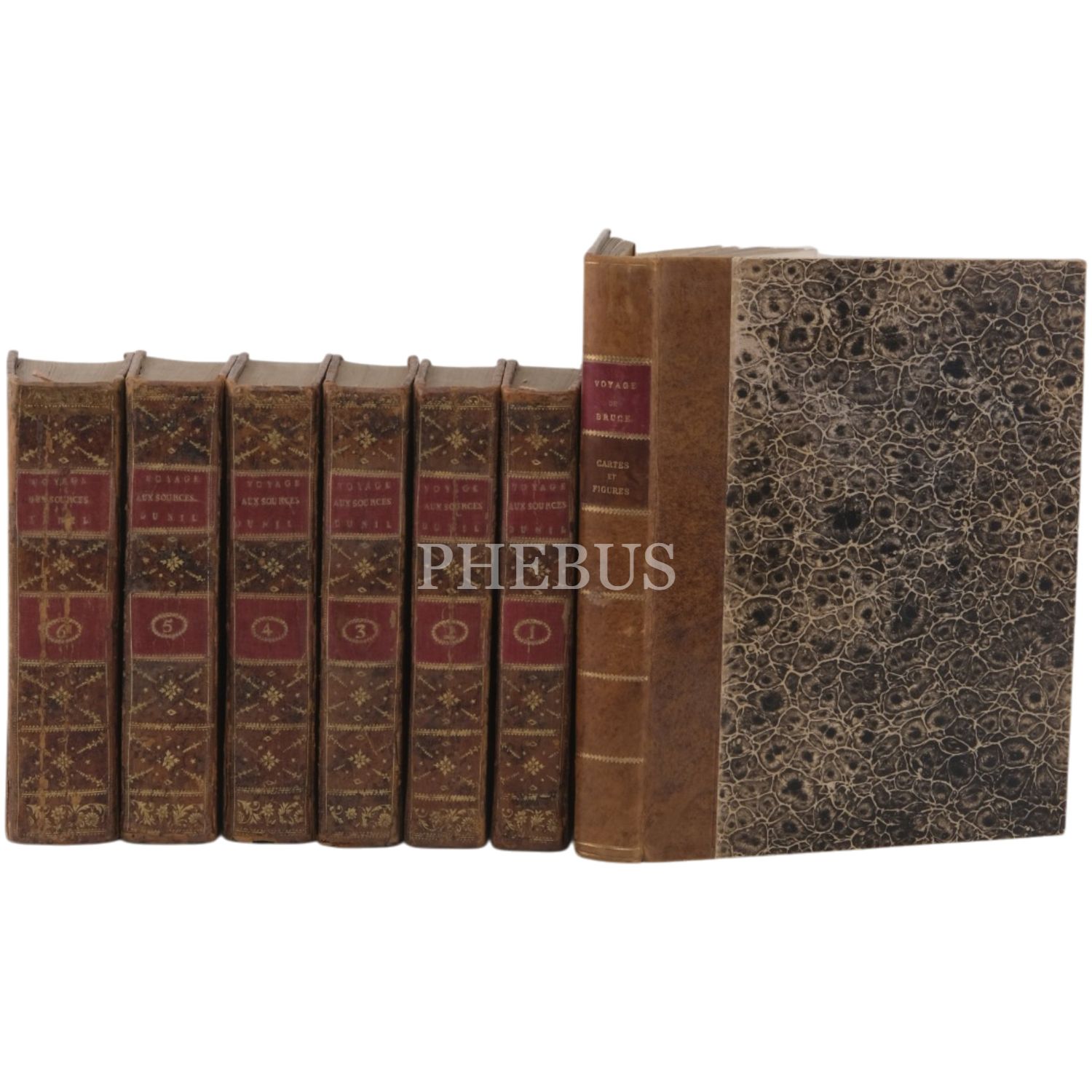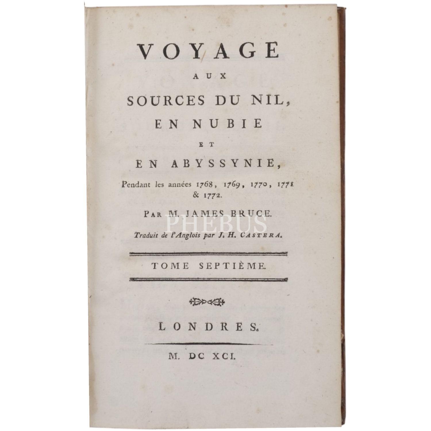 VOYAGE AUX SOURCE DU NIL, EN NUBIE ET EN ABYSSYNIE (6 cilt), James Bruce, 1790, Londres, 304+368+368+396+379+352 sayfa, 13x21 cm + CARTES ET FIGURES DU VOYAGE EN NUBIE ET EN ABYSSINE, James Bruce, 1792, A Paris, Chez Plassan, 130 sayfa, 22x27 cm... ...