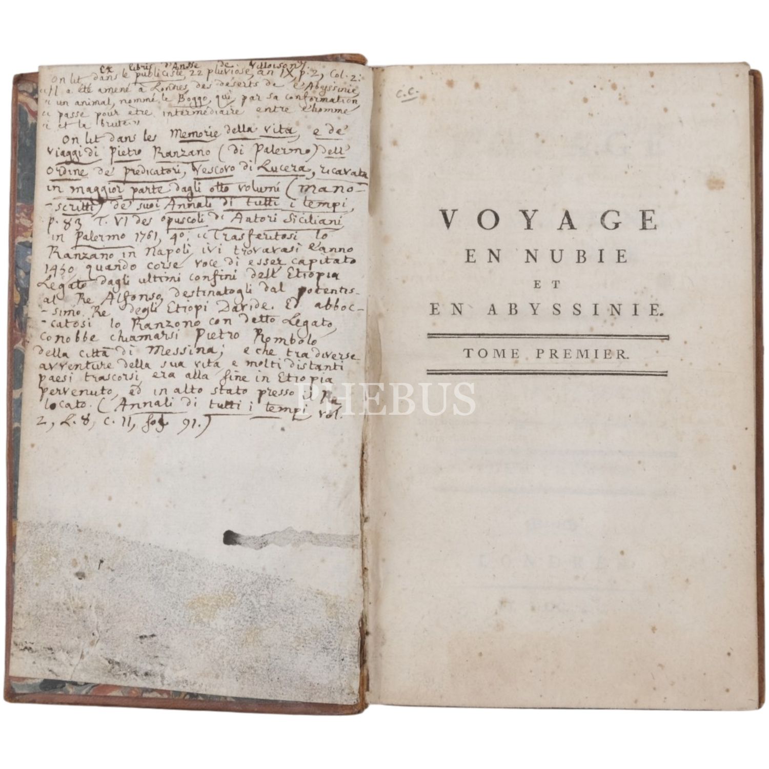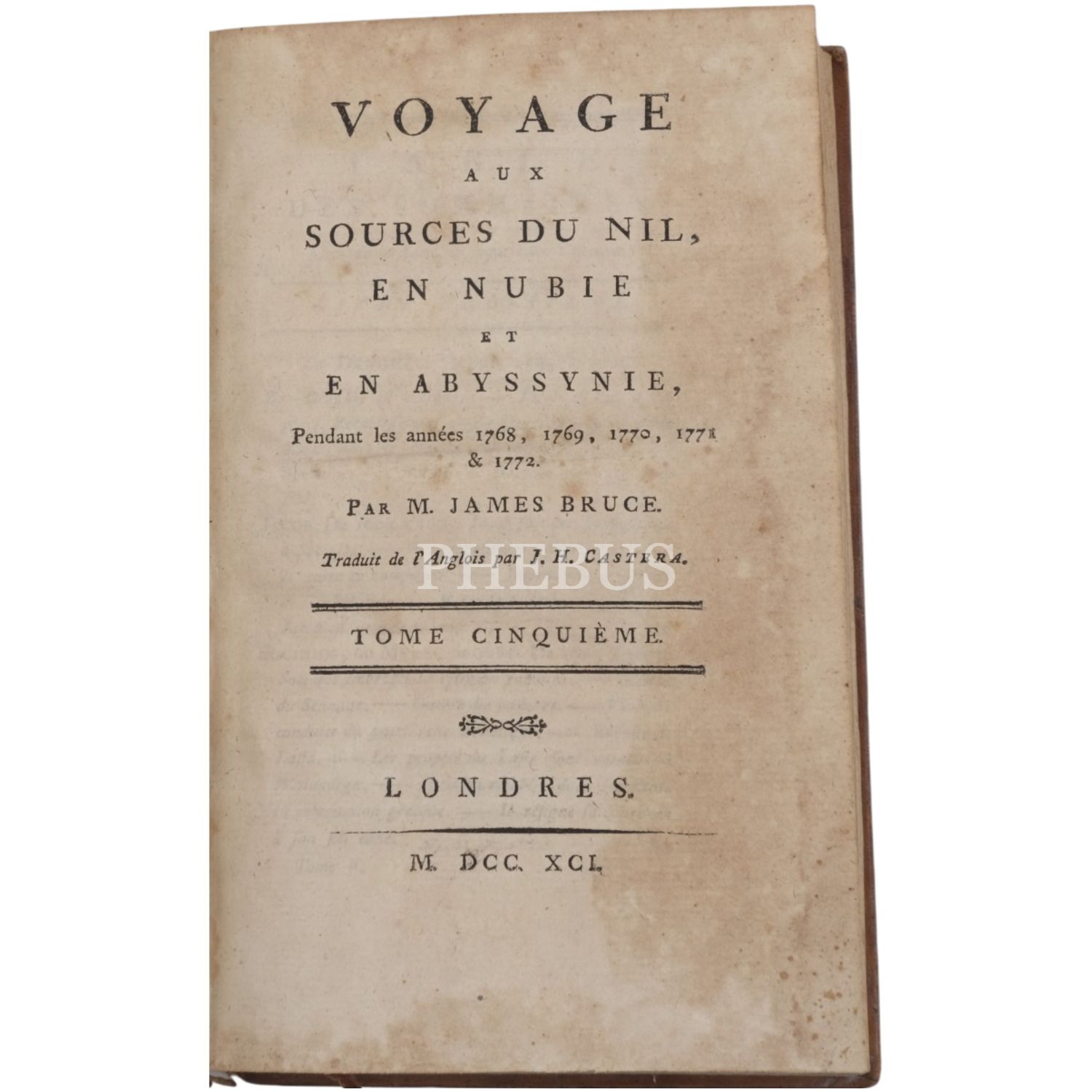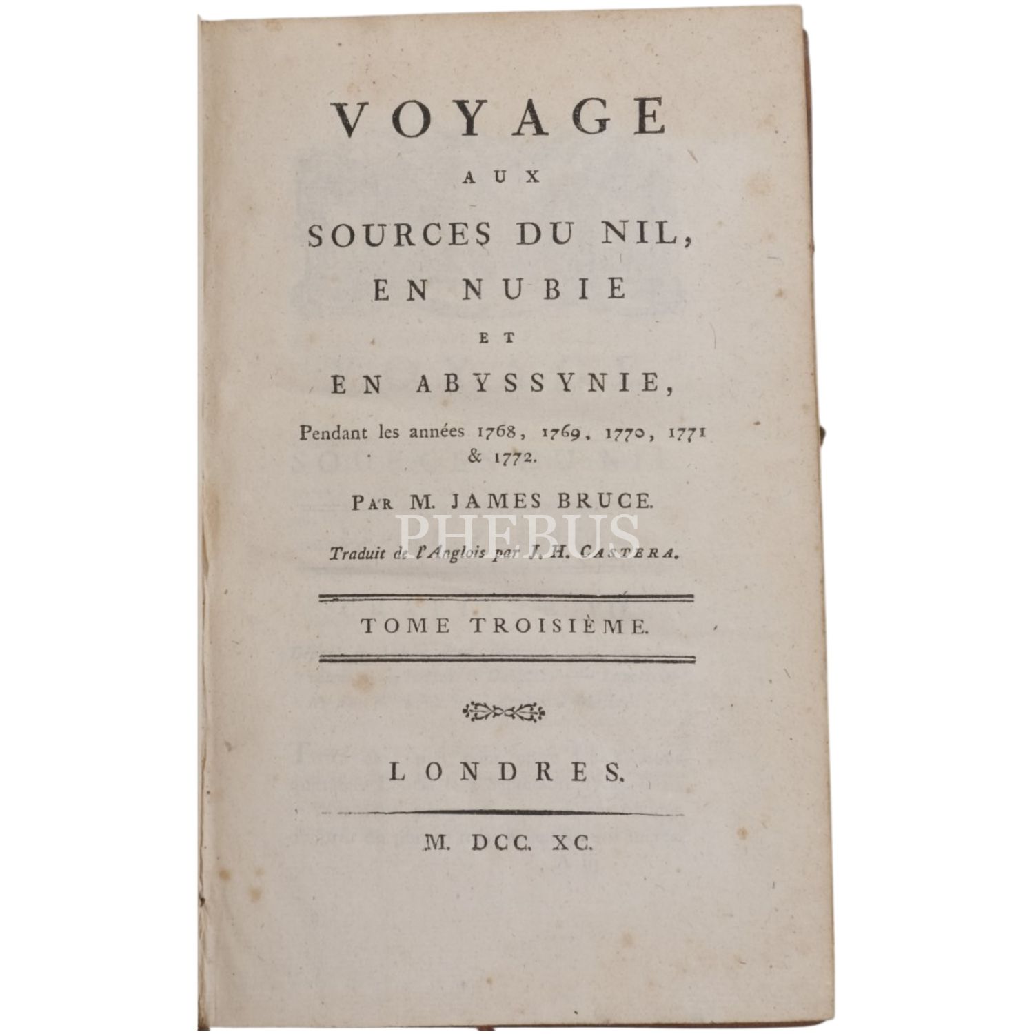 VOYAGE AUX SOURCE DU NIL, EN NUBIE ET EN ABYSSYNIE (6 cilt), James Bruce, 1790, Londres, 304+368+368+396+379+352 sayfa, 13x21 cm + CARTES ET FIGURES DU VOYAGE EN NUBIE ET EN ABYSSINE, James Bruce, 1792, A Paris, Chez Plassan, 130 sayfa, 22x27 cm... ...