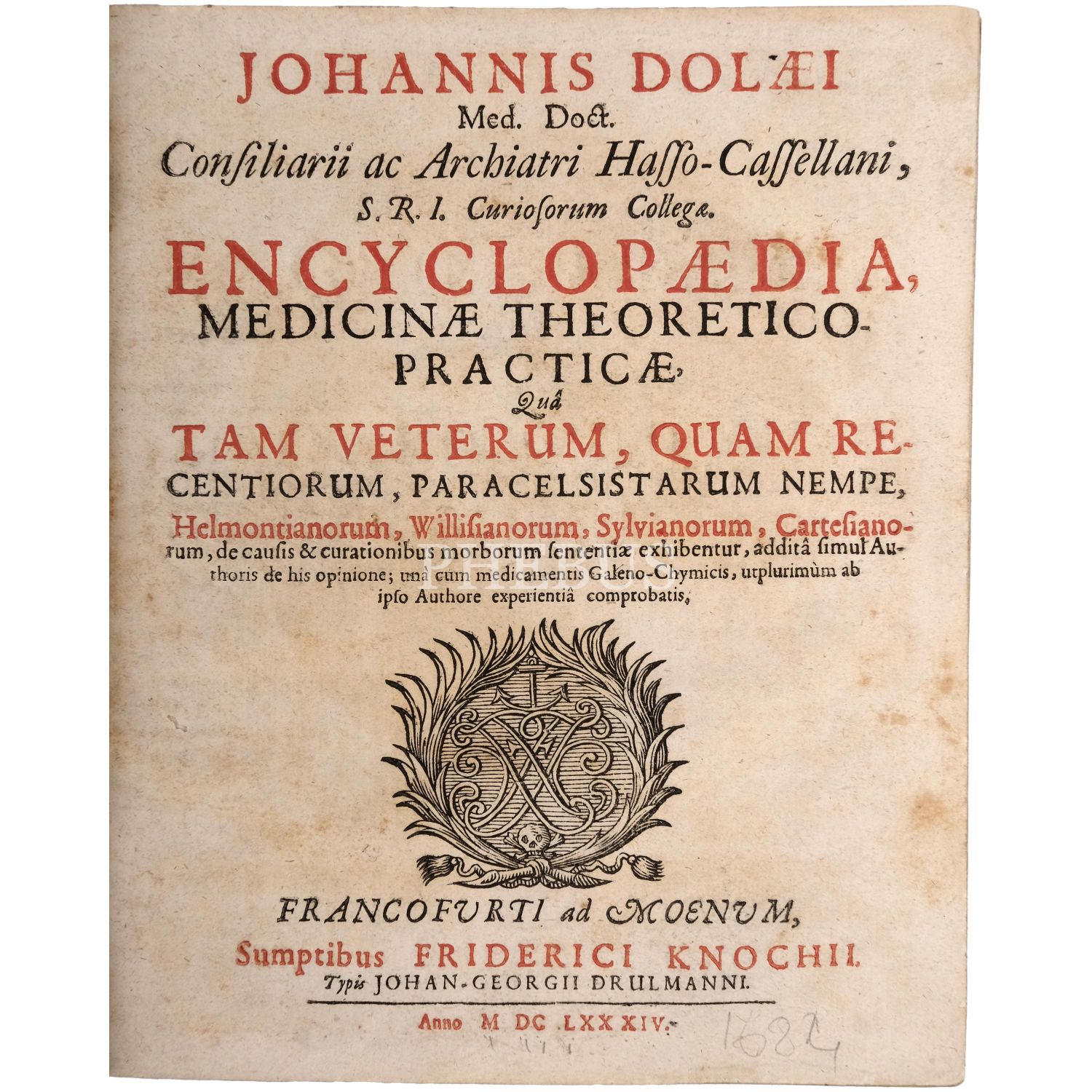 ENCYCLOPAEDIA, MEDICINAE THEORETICO-PRACTICAE, Johannis Dolaei, 1684, Friderici Knochii, Francofurti ad Moenum (Frankfurt am Main), 1038 sayfa metin + indeks, 17x21 cm...