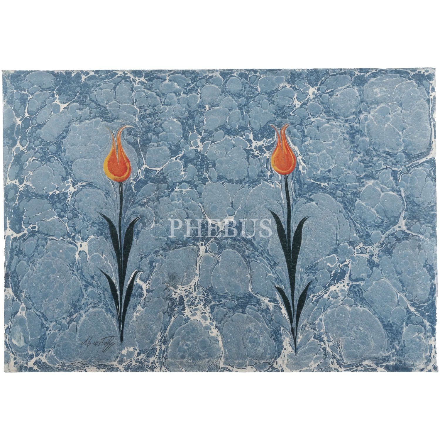 Mustafa Düzgünman imzalı çift lale ebrusu, ölçü: 47x34 cm...