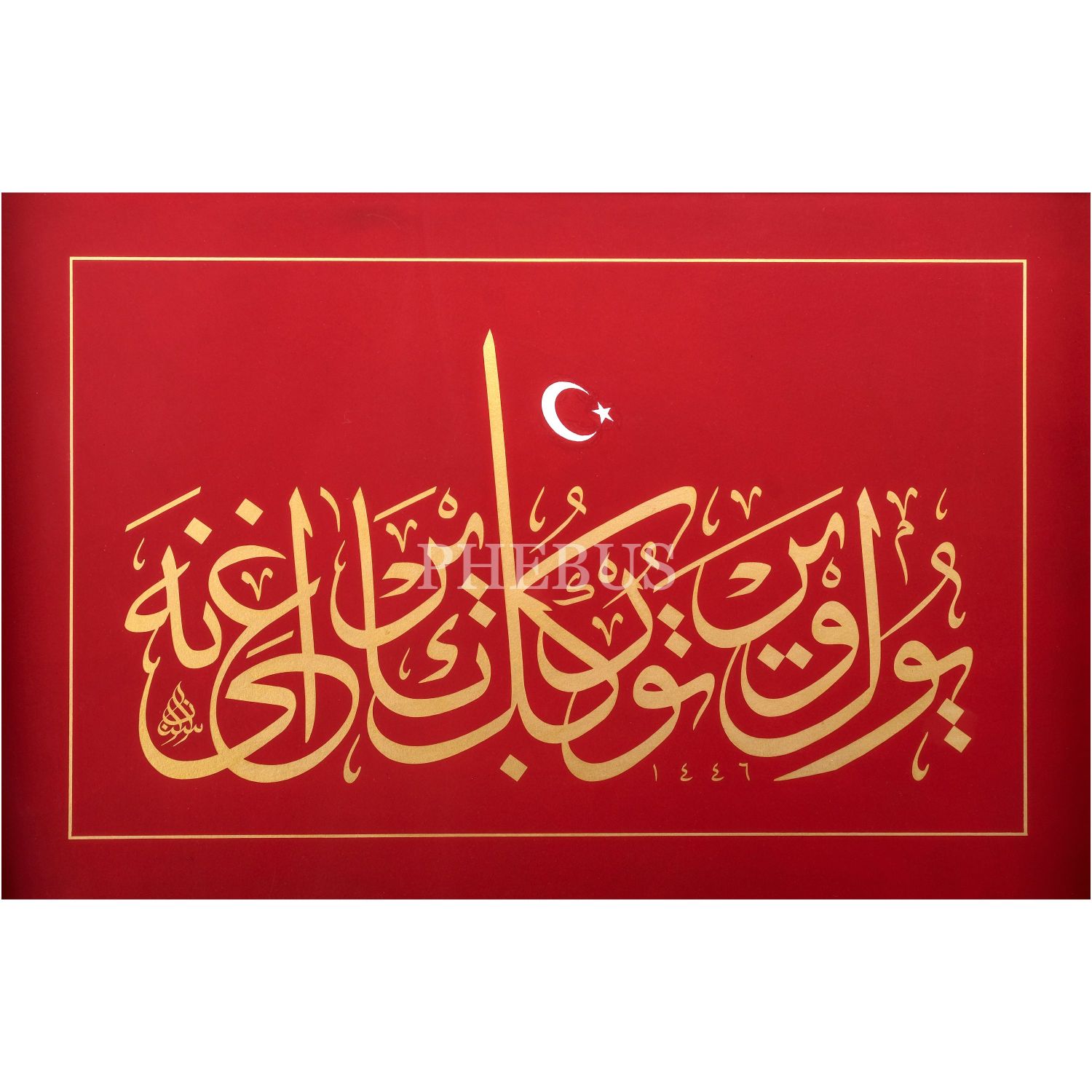 Sinan (Doğan) ketebeli akrilik yaldız sürme celî sülüs levha, 1446 tarihli, yazı ölçü: 52x32 cm, çerçeve içi ölçü: 61x40 cm...