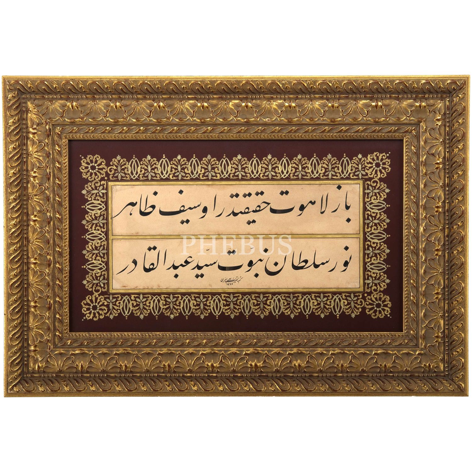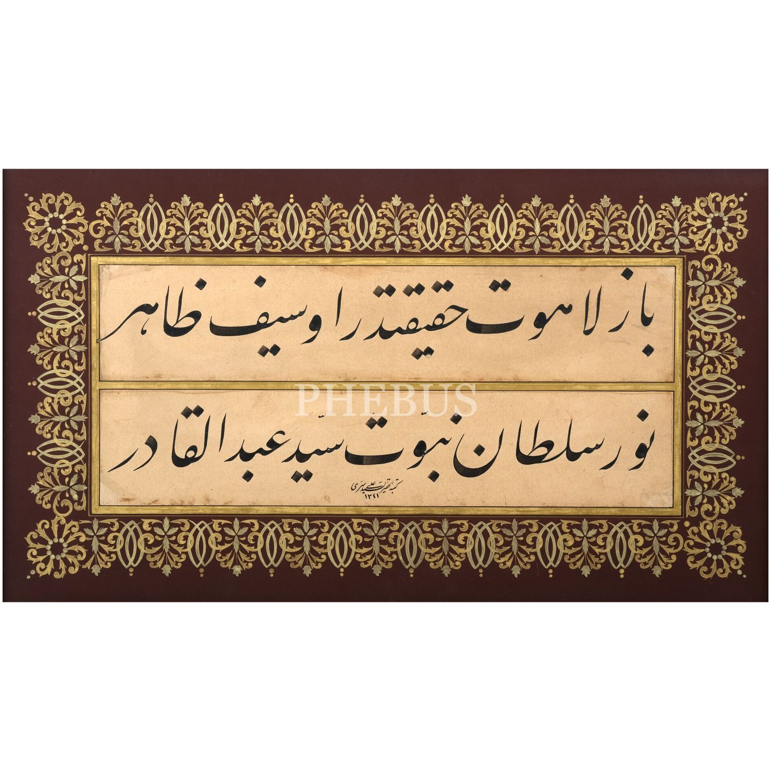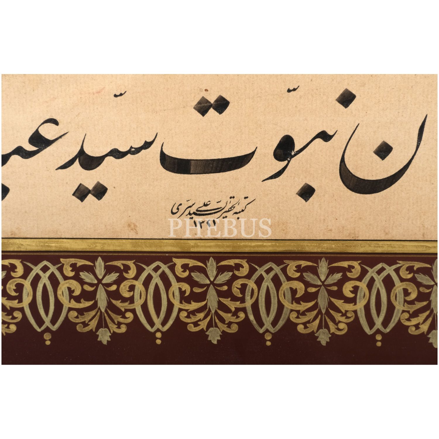 Seyyid Ali Sırrı ketebeli celî talik levha, hicrî 1321 tarihli, çerçeve içi ölçü: 49x28 cm...