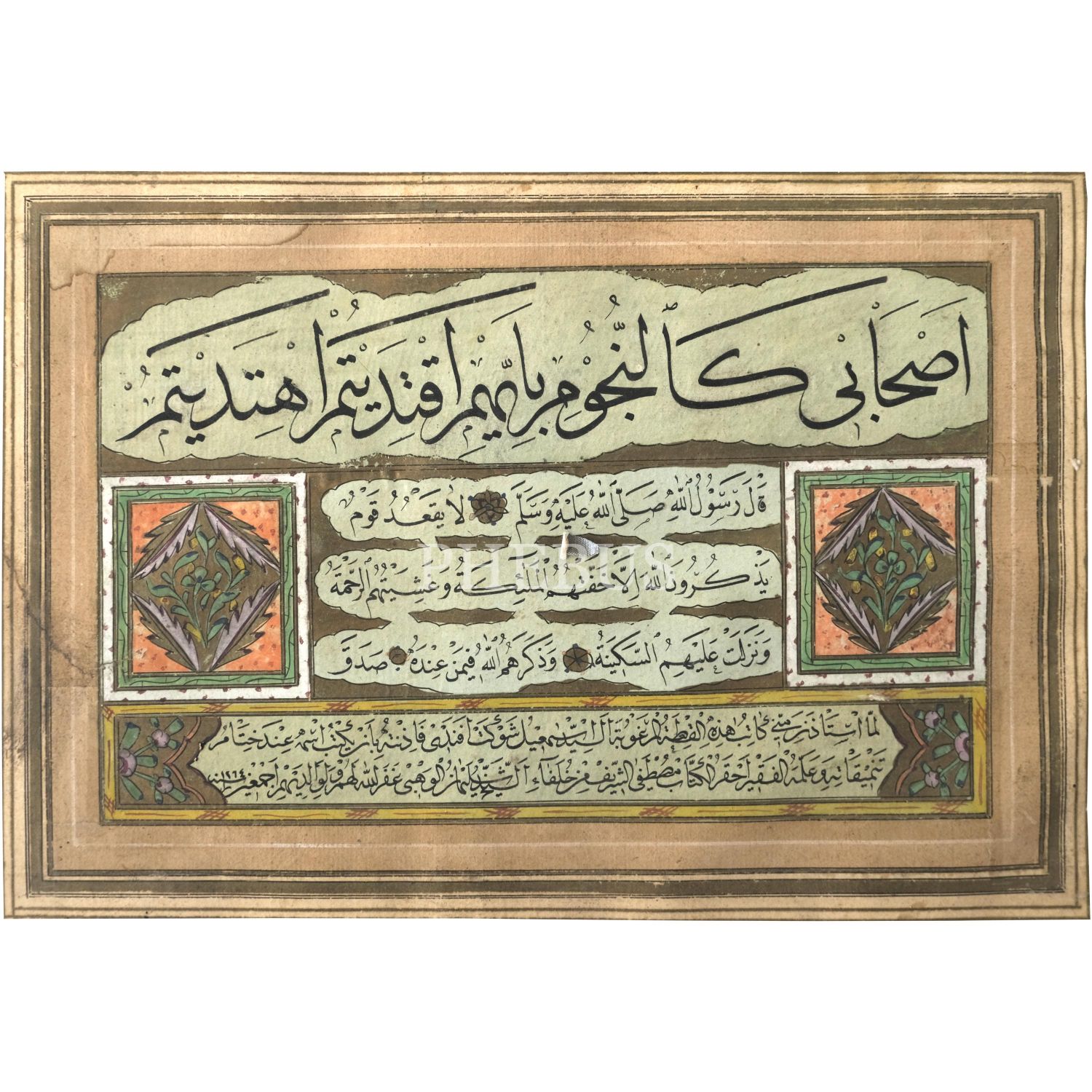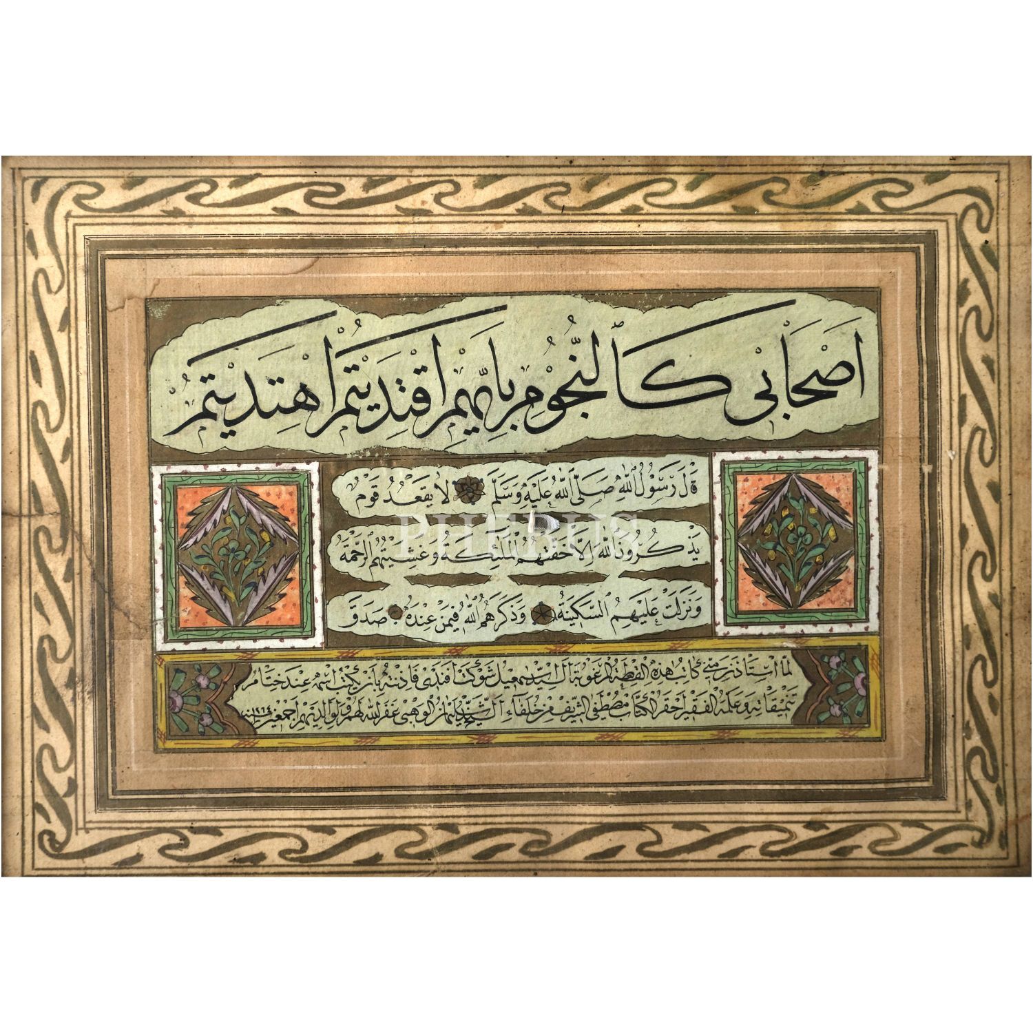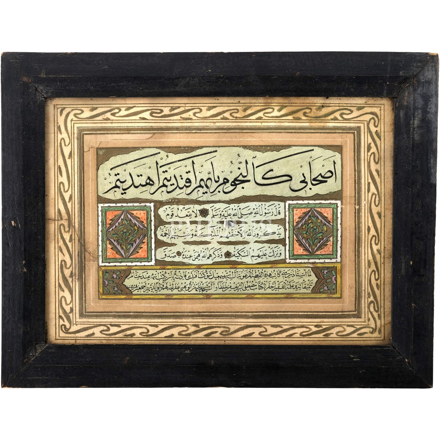 Sülüs kısımda "Sahabelerim yıldızlar gibidir. Hangisine uyarsanız doğru yolu bulursunuz" mealindeki hadis yazılıdır. Nesih kısımda da hadis-i şerif rivayeti vardır.