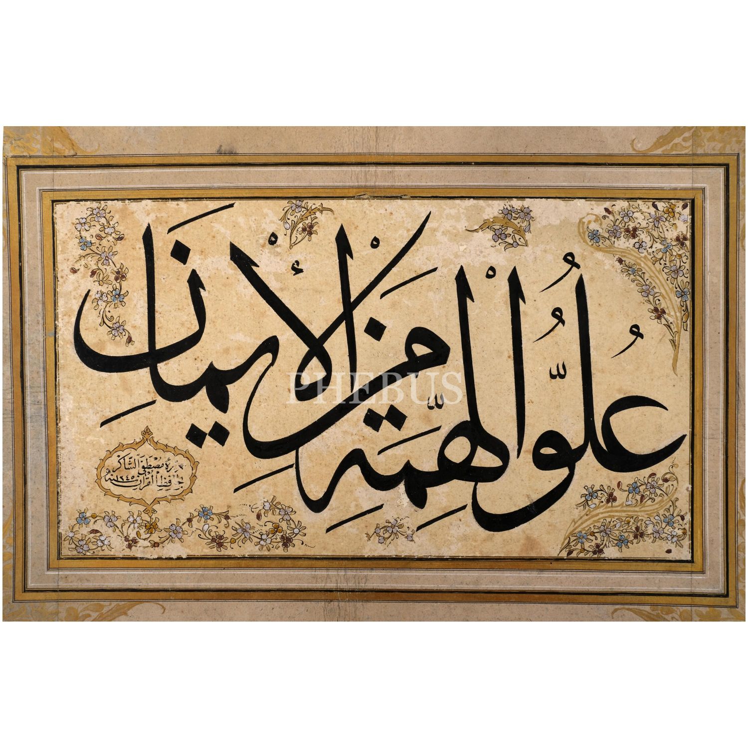 Okunuşu: "Uluvvül himmeti mine´l-îmân Anlamı: "Himmetin yüceliği imandandır."