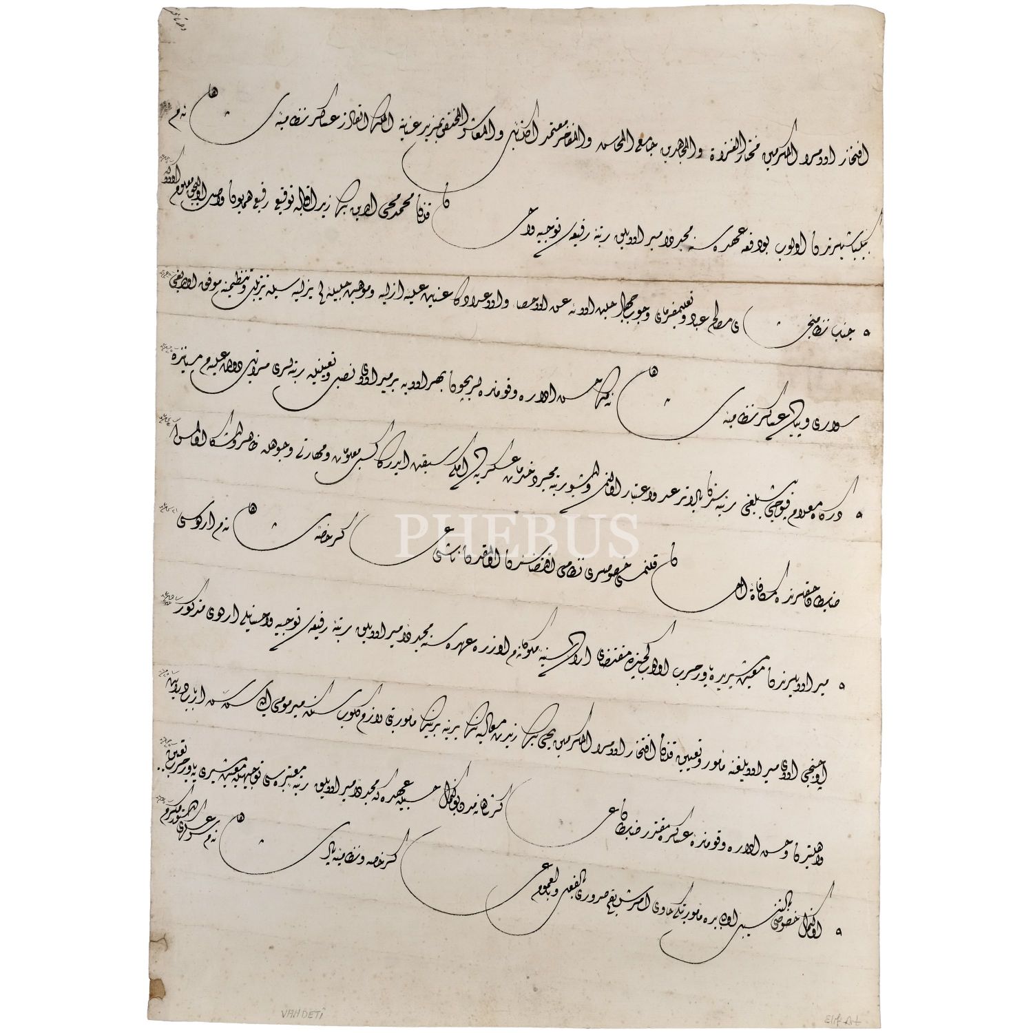 Enderûn-i Hümâyûn´da görev alan Hâfız Vahdetî´nin kaleminden dîvânî yazıyla tayin emri, 37x52 cm...