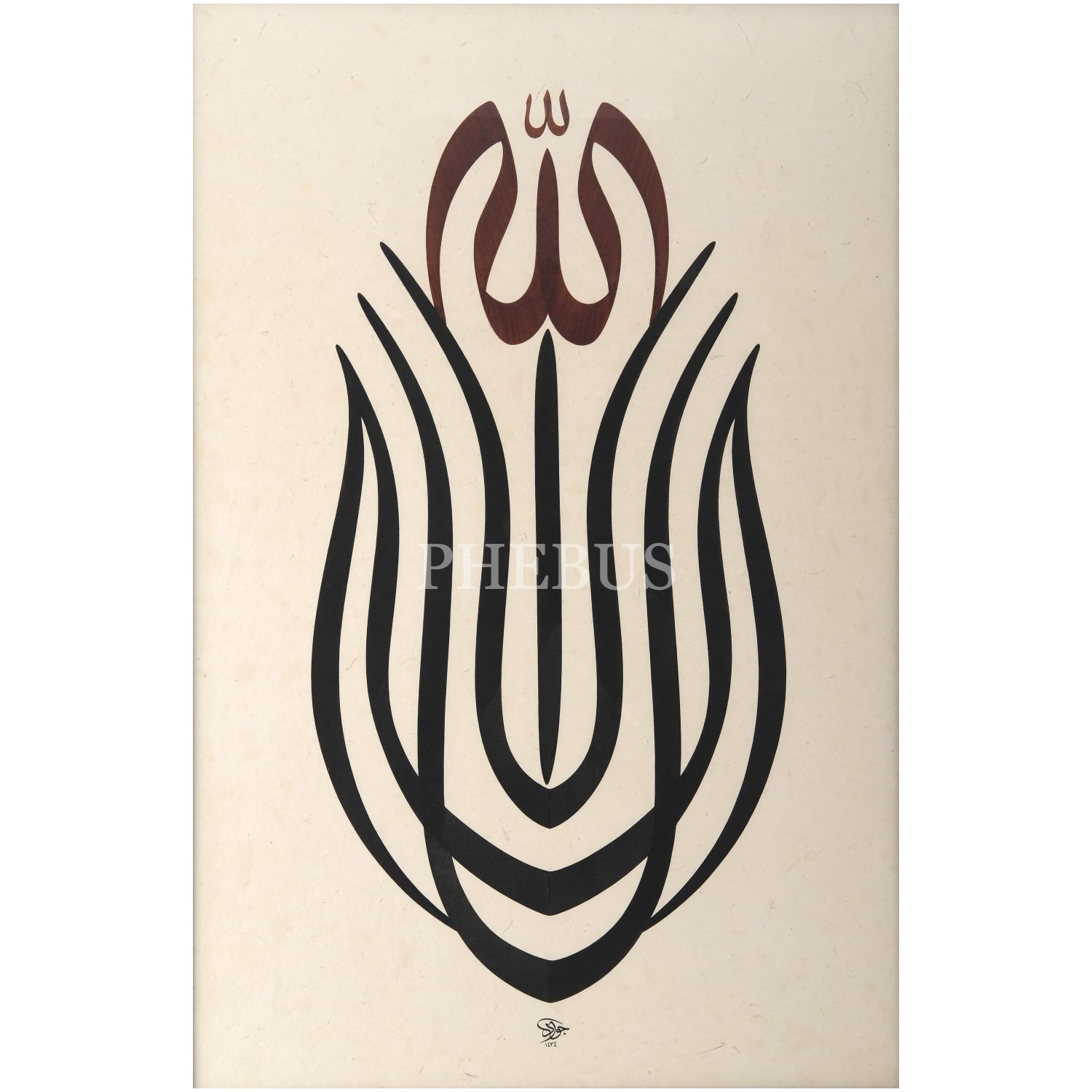 Cevad (Huran) ketebeli celî sülüs müsennâ kelime-i tevhid, 1434 tarihli, yazı ölçü: 64x98 cm, çerçeve ölçü: 89x123 cm...