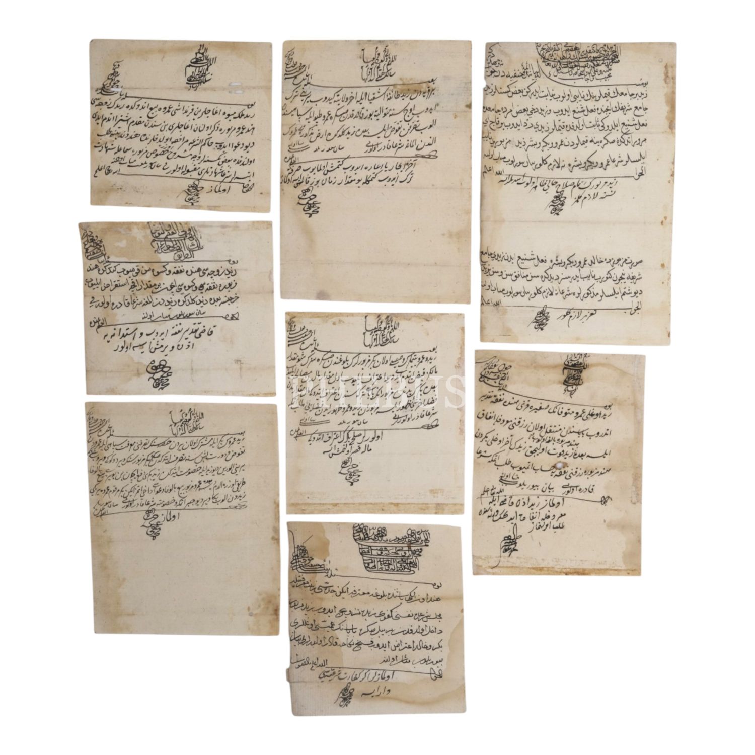 Şeyhülislam Bostanzâde Mehmed Efendi´nin 8 adet fetvası, en büyük kâğıt: 10x16 cm, en küçük kâğıt: 10x9 cm...