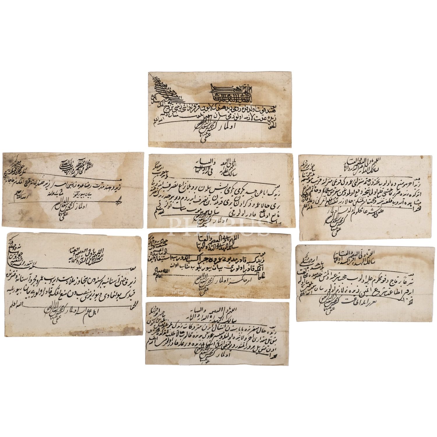 Şeyhülislam Şerif Mehmed Efendi´ye ait 8 adet fetva, en büyük kâğıt: 9x7 cm, en küçük kâğıt: 10x5 cm...