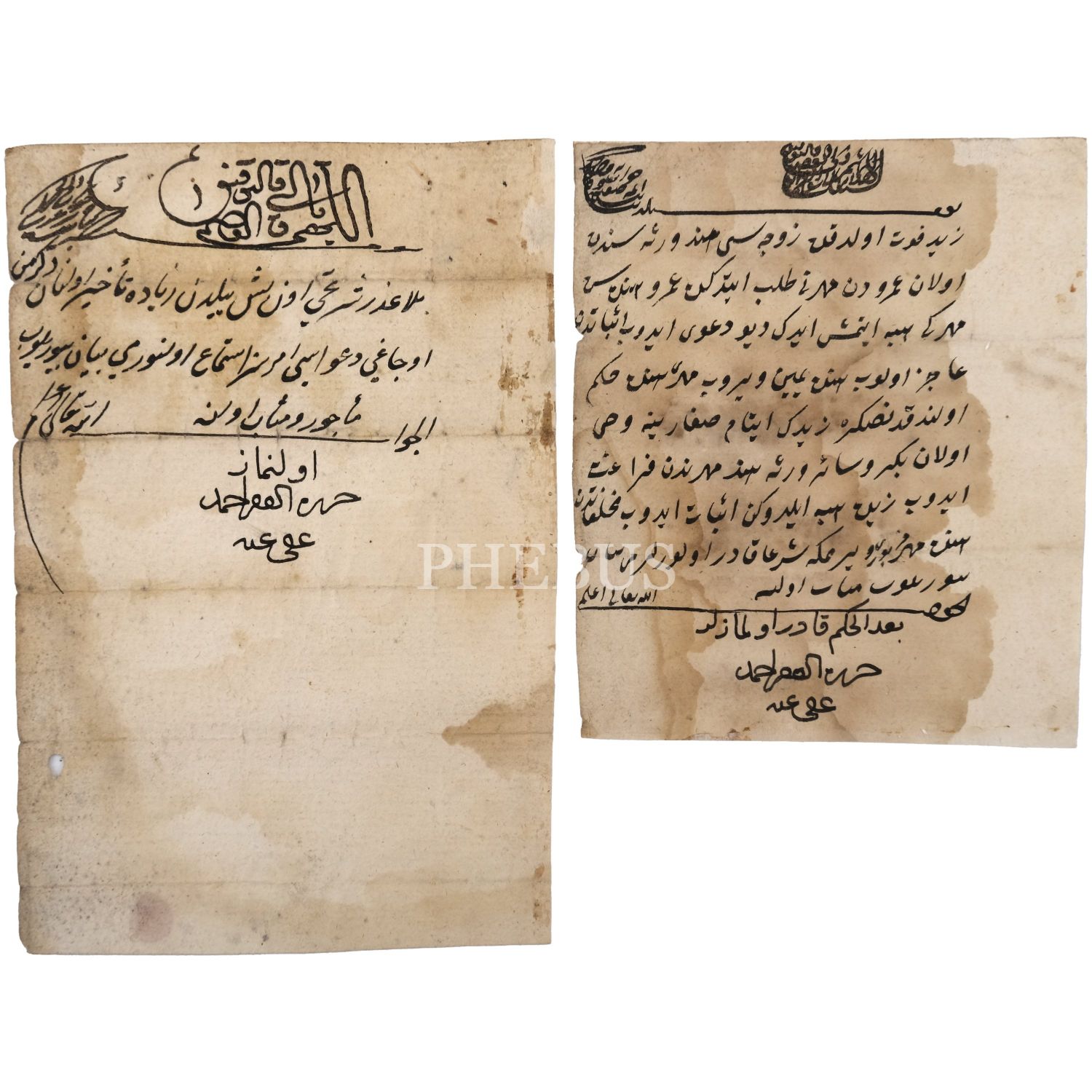 Şeyhülislam Kadızâde Ahmed Efendi´ye ait 2 adet fetva: kâğıt ölçü: 10x16 cm, 10x11 cm...