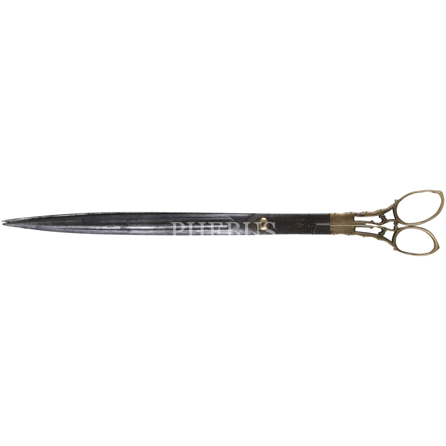 Sapı ve iki yüzeyi işlemeli hattat makası.