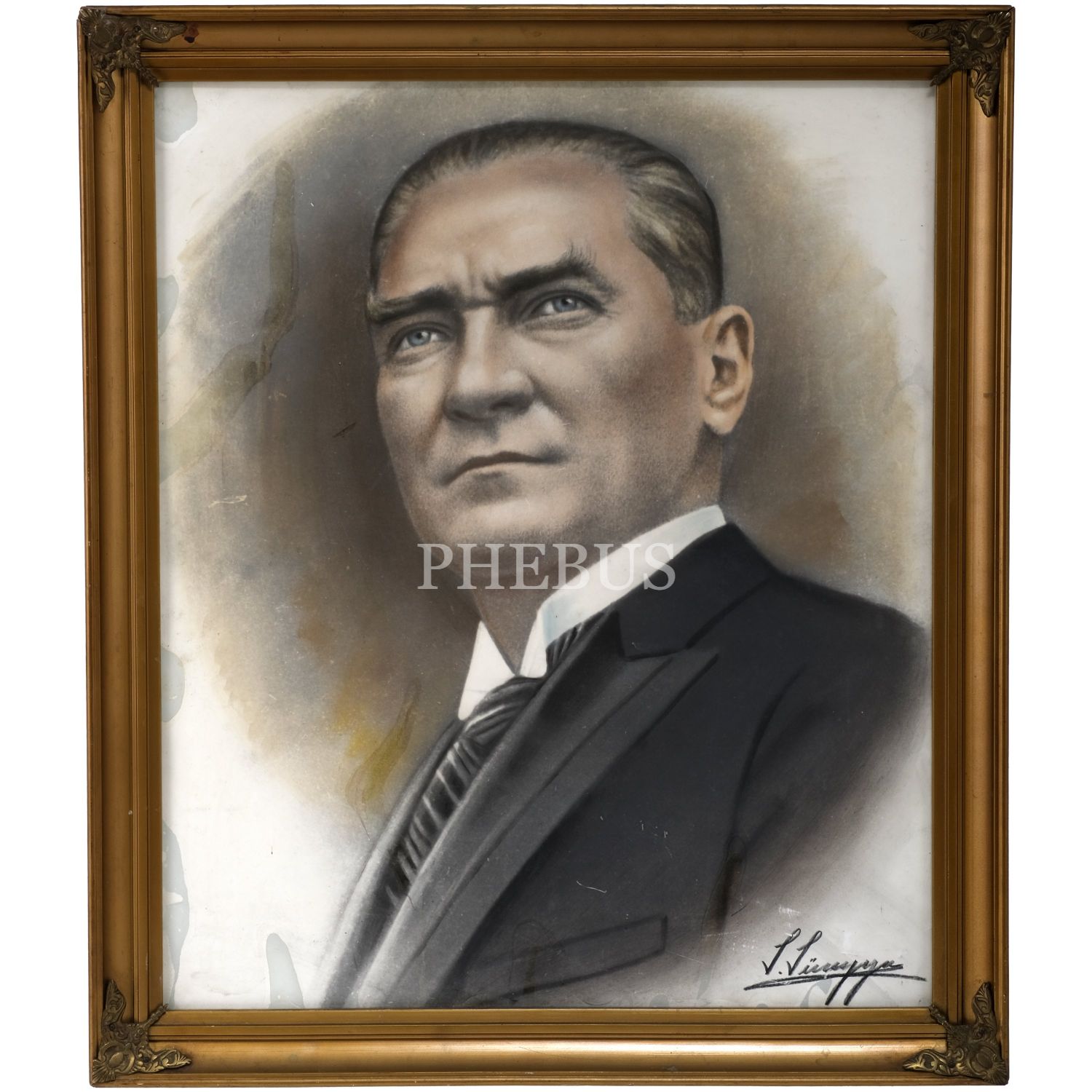 Mustafa Kemal Atatürk´ün, "S. Süreyya (Süleyman Süreyya Bükey)" ıslak imzalı, büyük boy portre resmi, çerçevesiyle birlikte 58x68 cm...