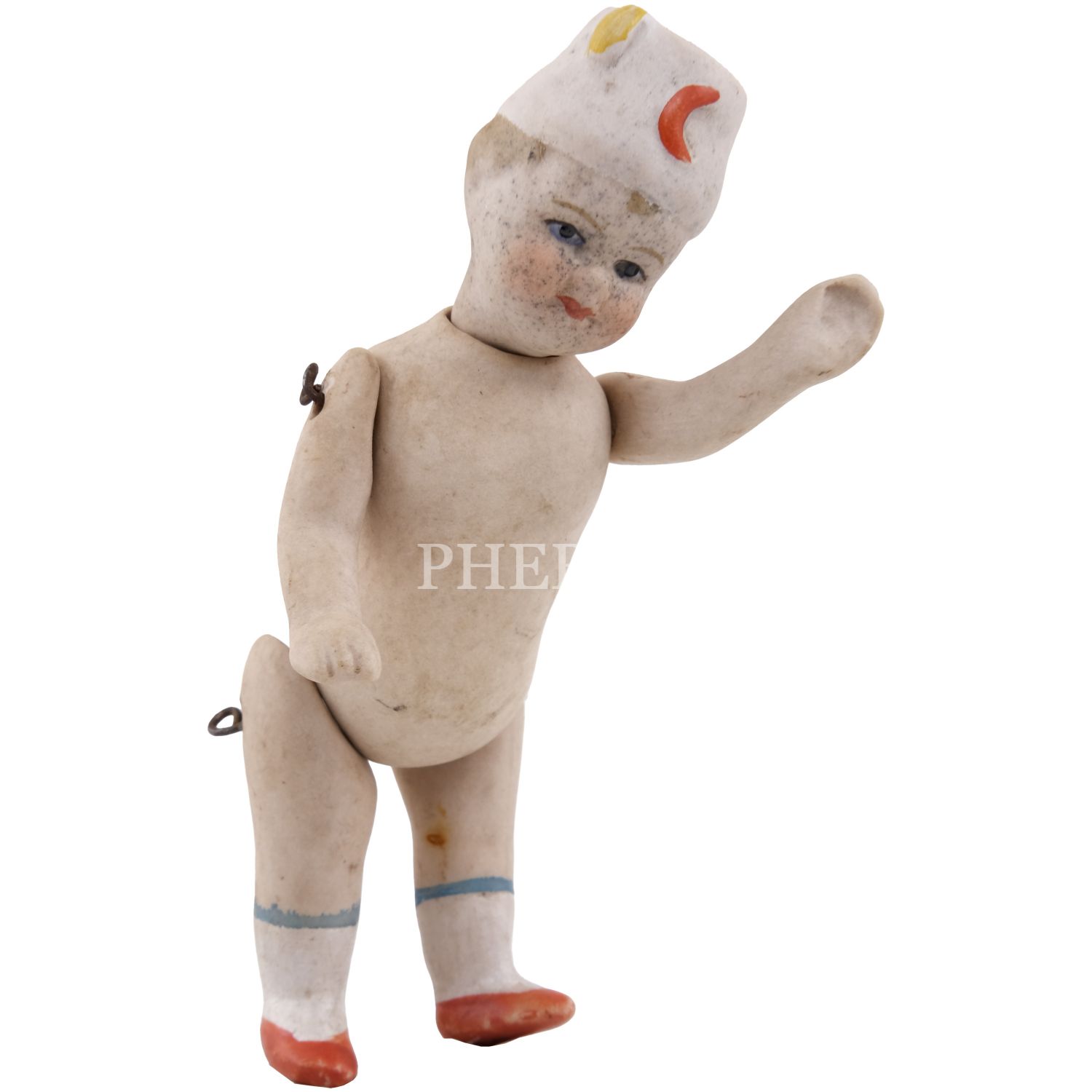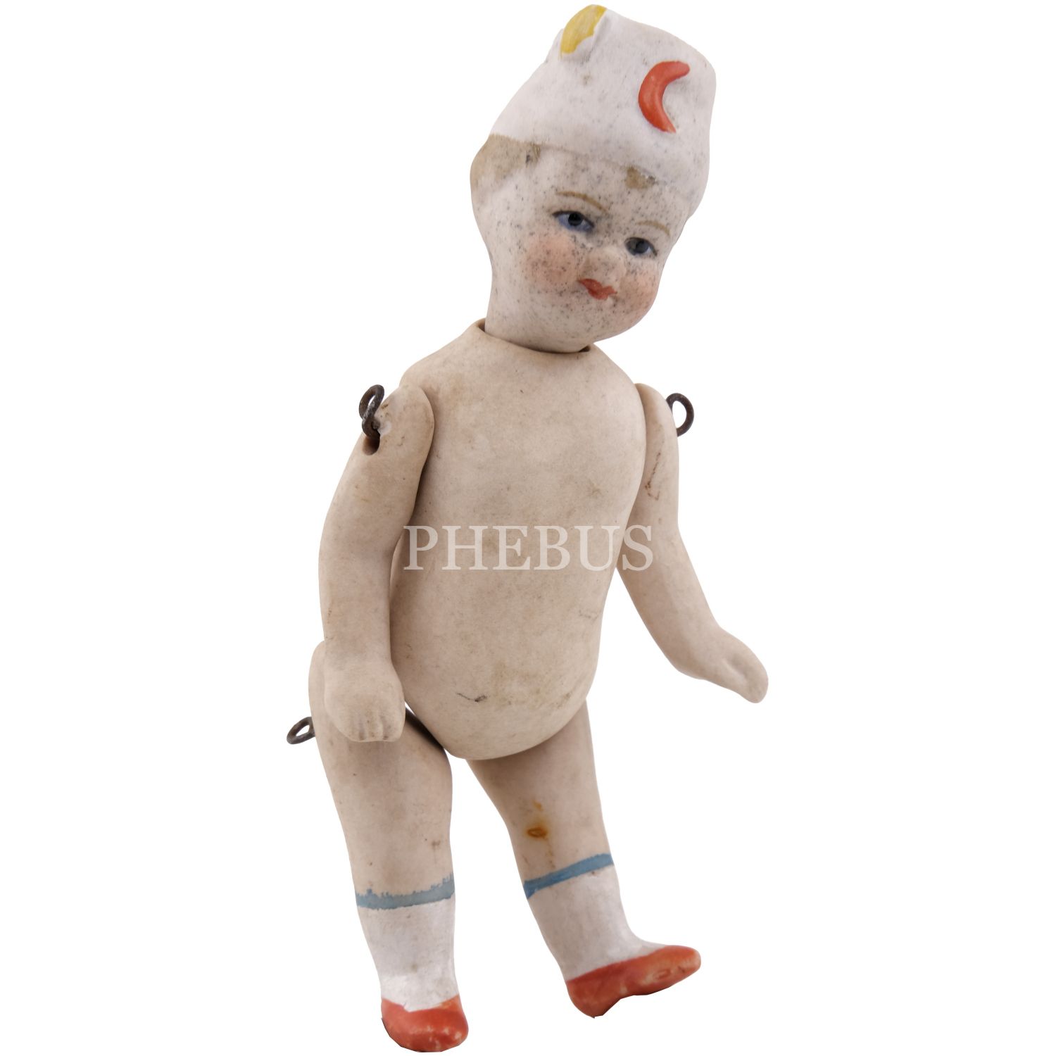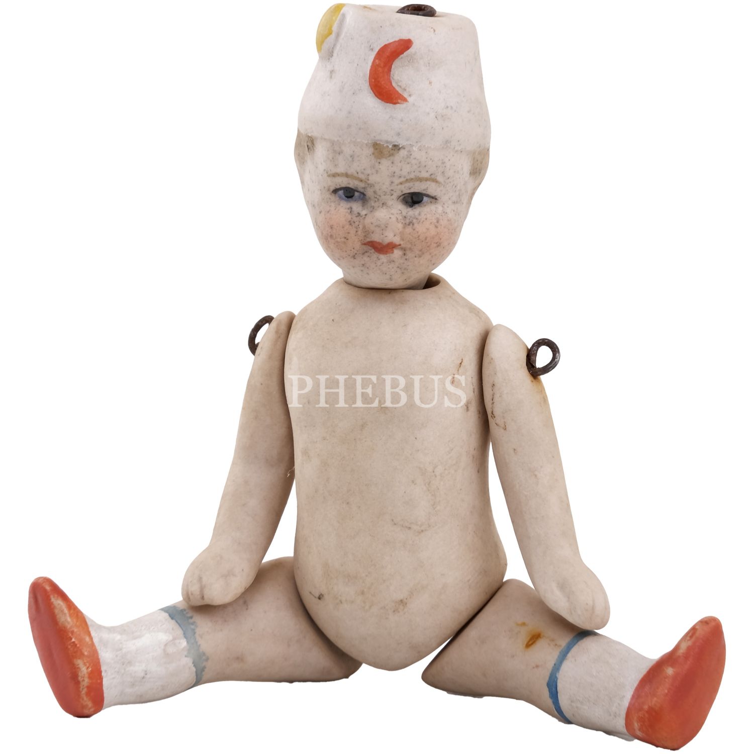 Osmanlı döneminden, Hilal-i Ahmer Cemiyeti (Kızılay) fesli, bisküvi porselenden mamul oyuncak bebek, 10x3 cm...