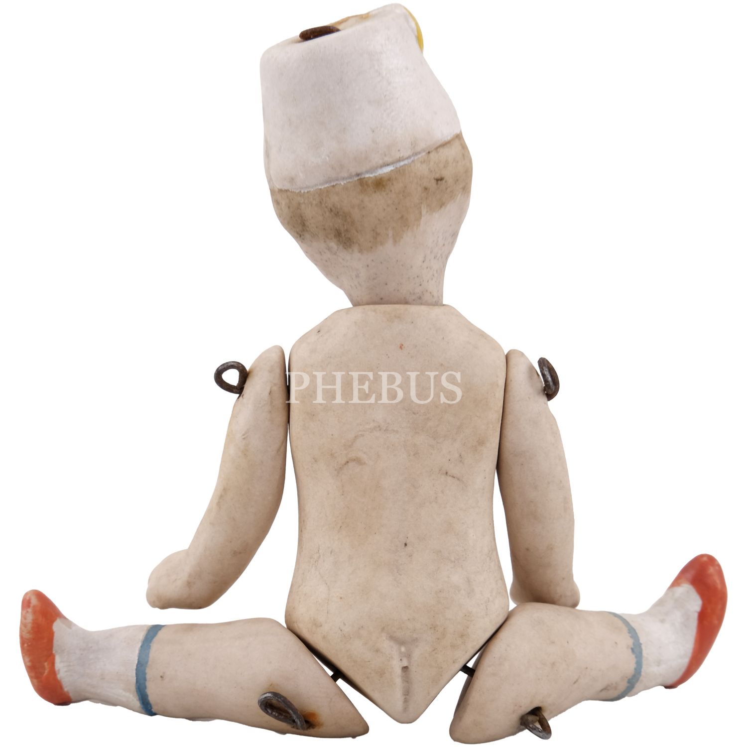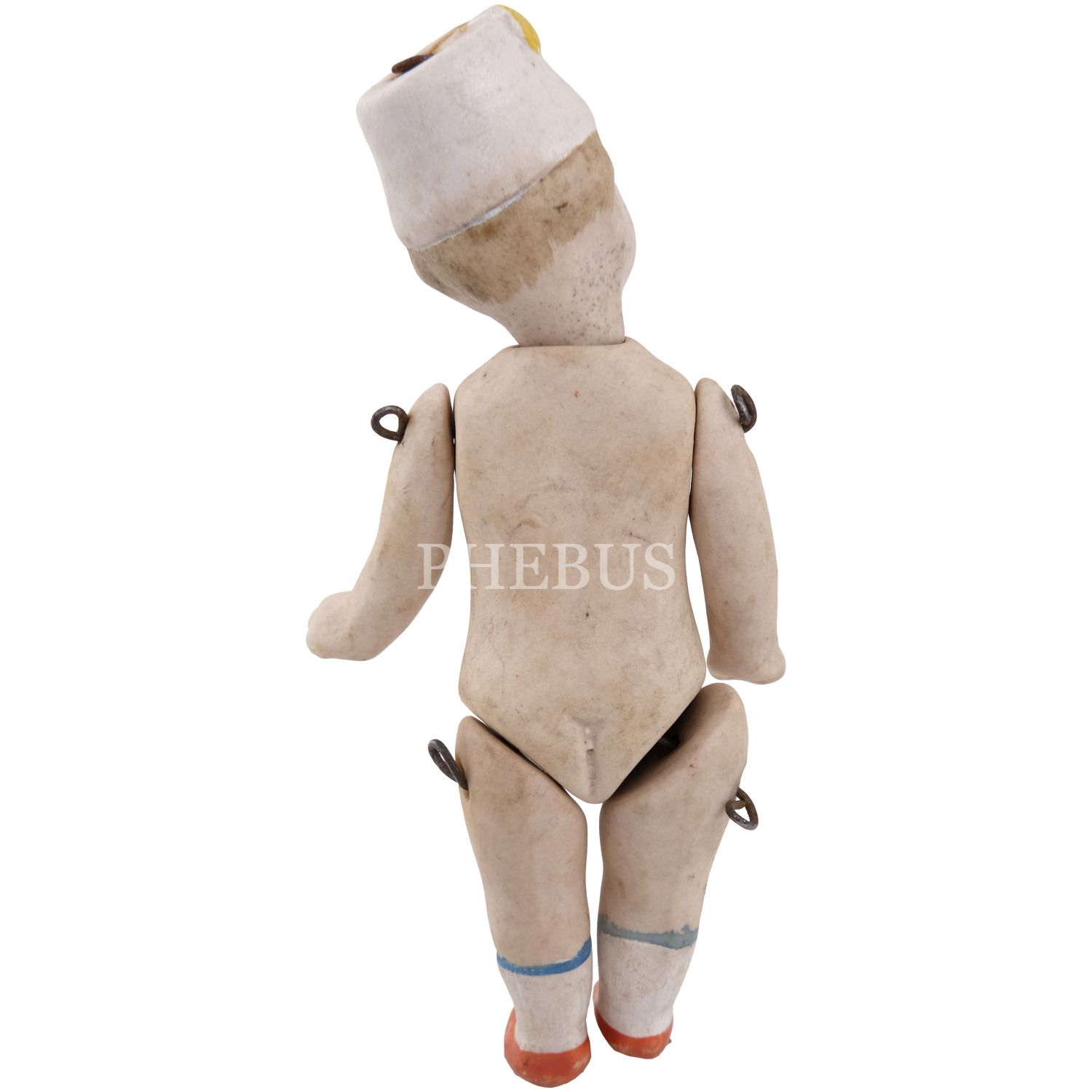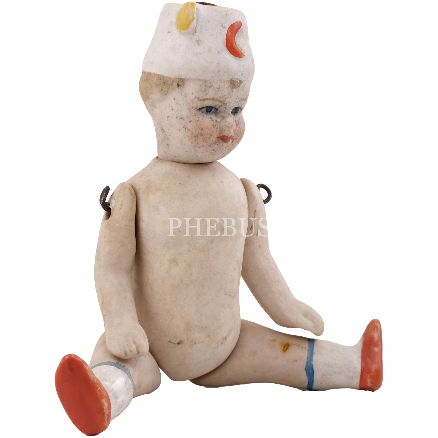 Osmanlı döneminden, Hilal-i Ahmer Cemiyeti (Kızılay) fesli, bisküvi porselenden mamul oyuncak bebek, 10x3 cm...