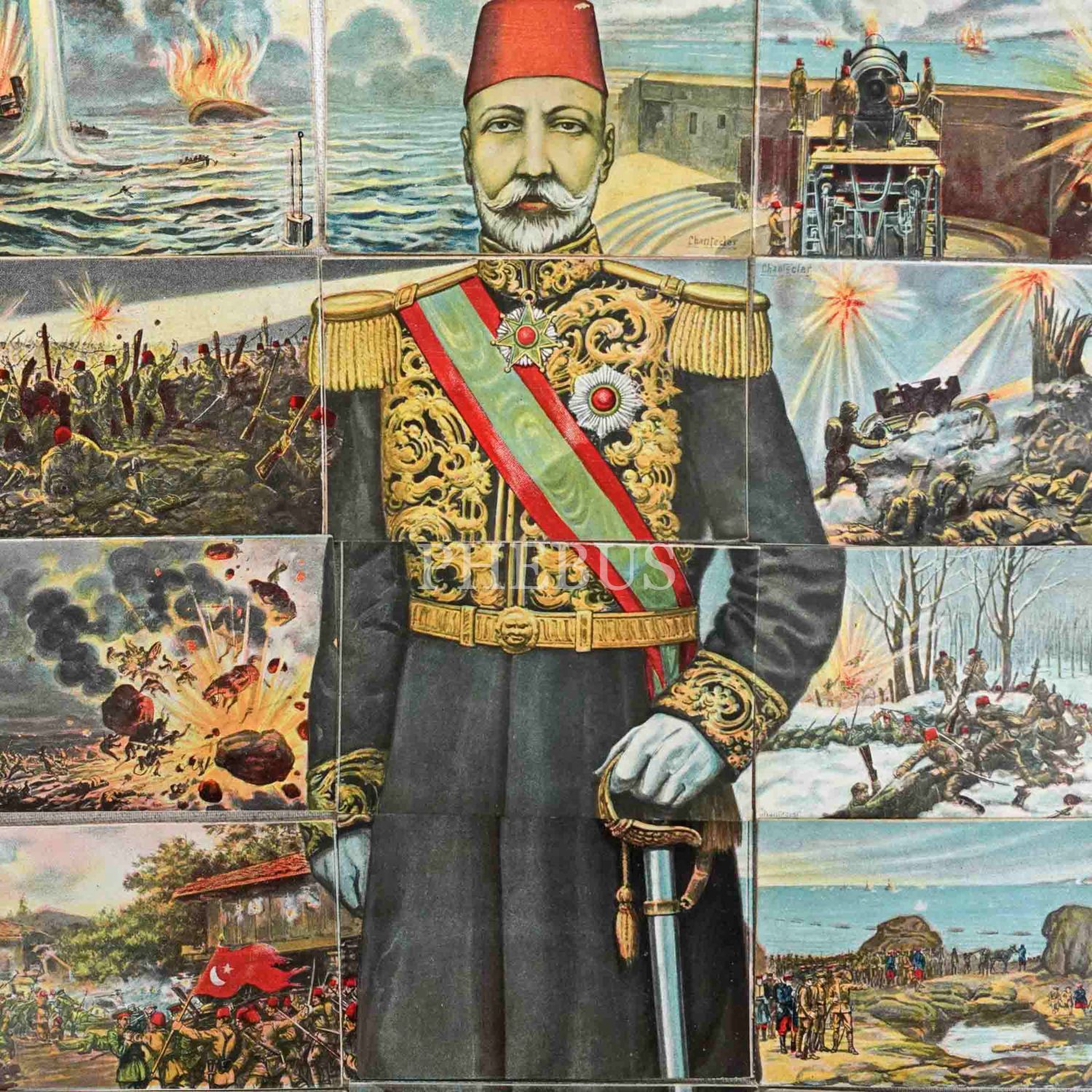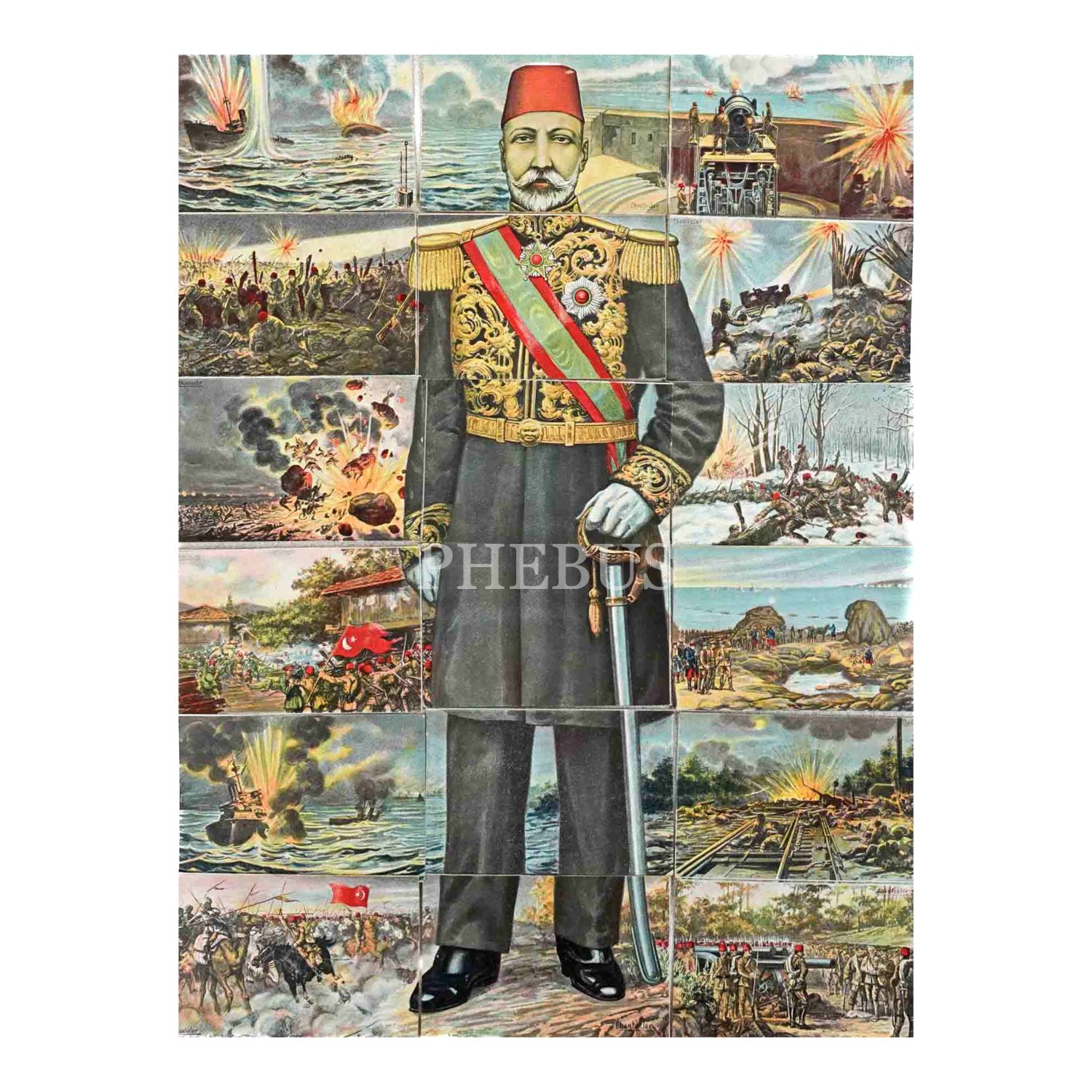 Uygun sırada bir araya getirildiklerinde Çanakkale Cephesi´nden manzaralarla bu manzaranın ortasında duran Sultan Mehmed Reşad´ın ortaya çıktığı yapboz çikolata kartı takımı ve Jaime Boix tarafından yayımlanan, bu takımın sıralı bir şekilde görüldüğü, İspanyolca yazılı duyuru afişinin prova baskısı, "Chocolates Jaime Boix (Barcelona), her bir yapboz kartı 10x7 cm, afiş 31x55 cm...