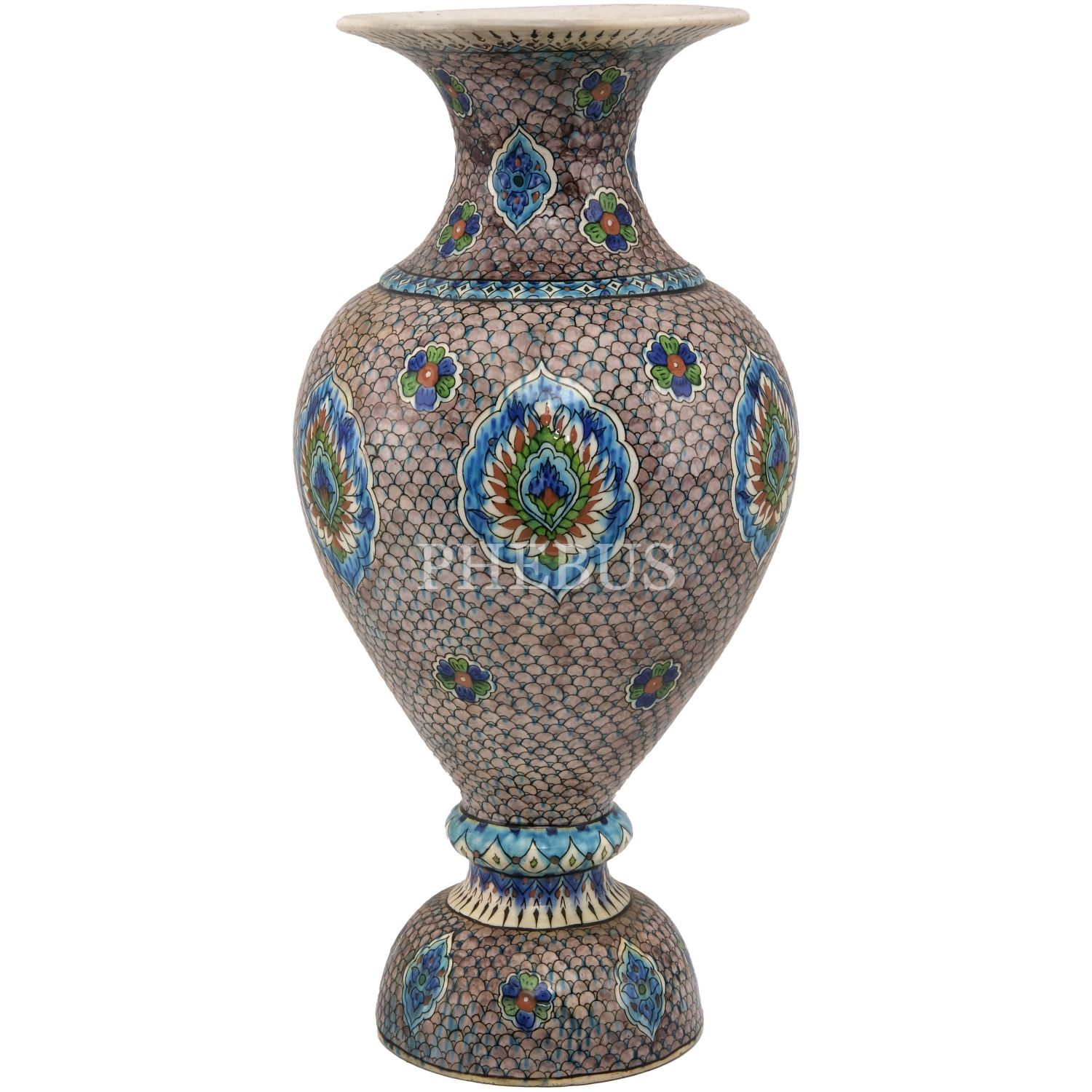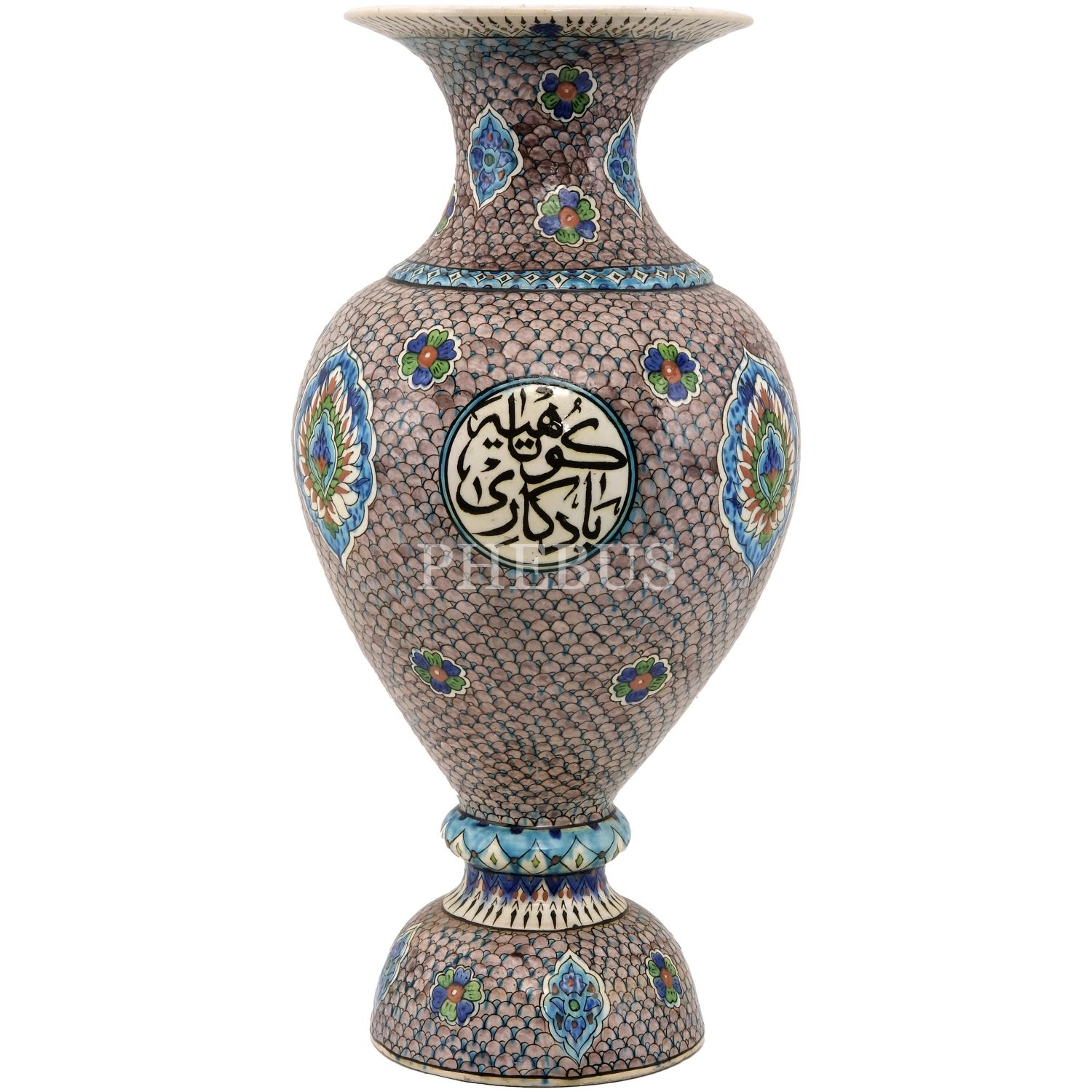 Kütahya işi çini motifleriyle bezeli, merkezi "Kütahya Yadigarı" yazılı el boyama, büyük boy seramik vazo, çap 24 cm, yükseklik 63 cm...