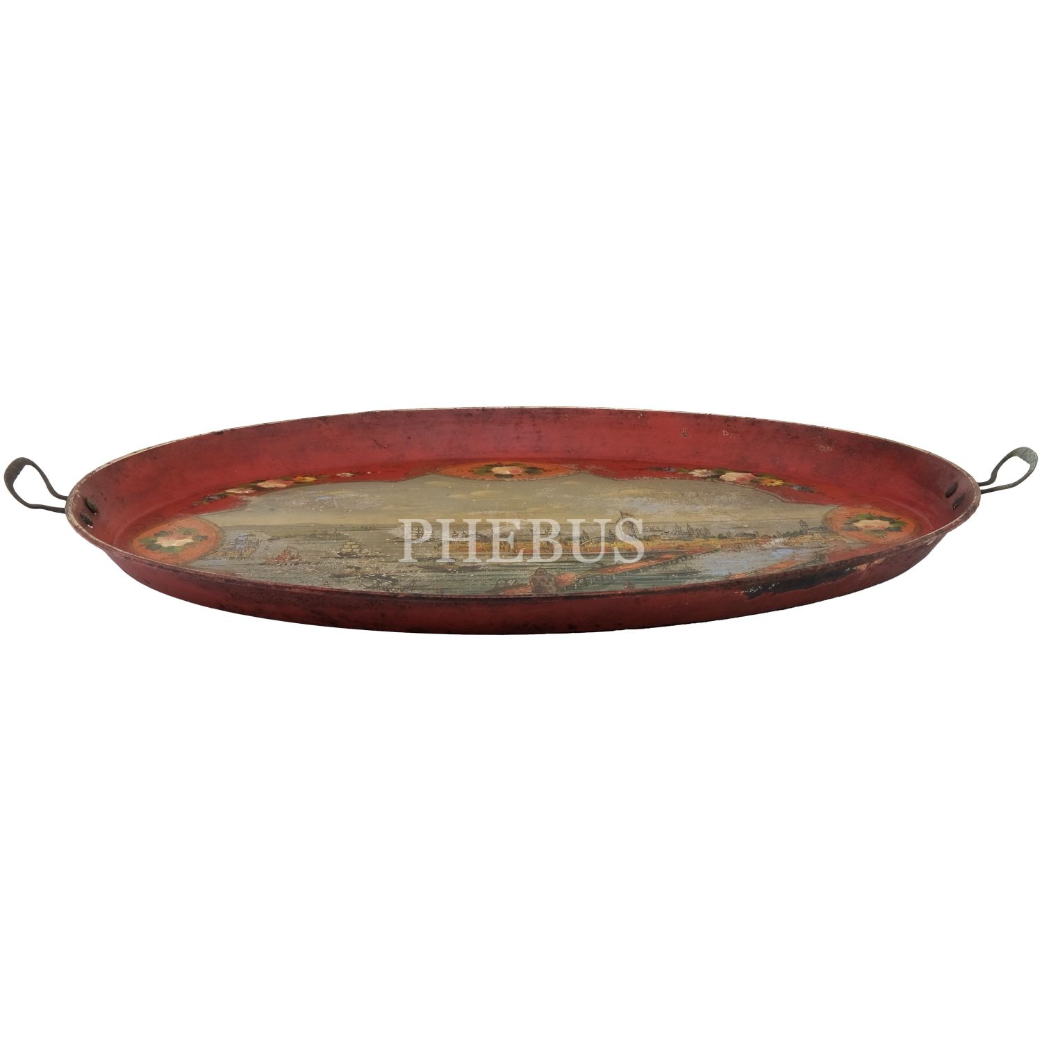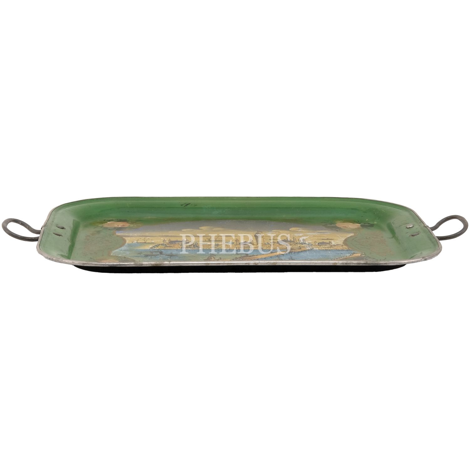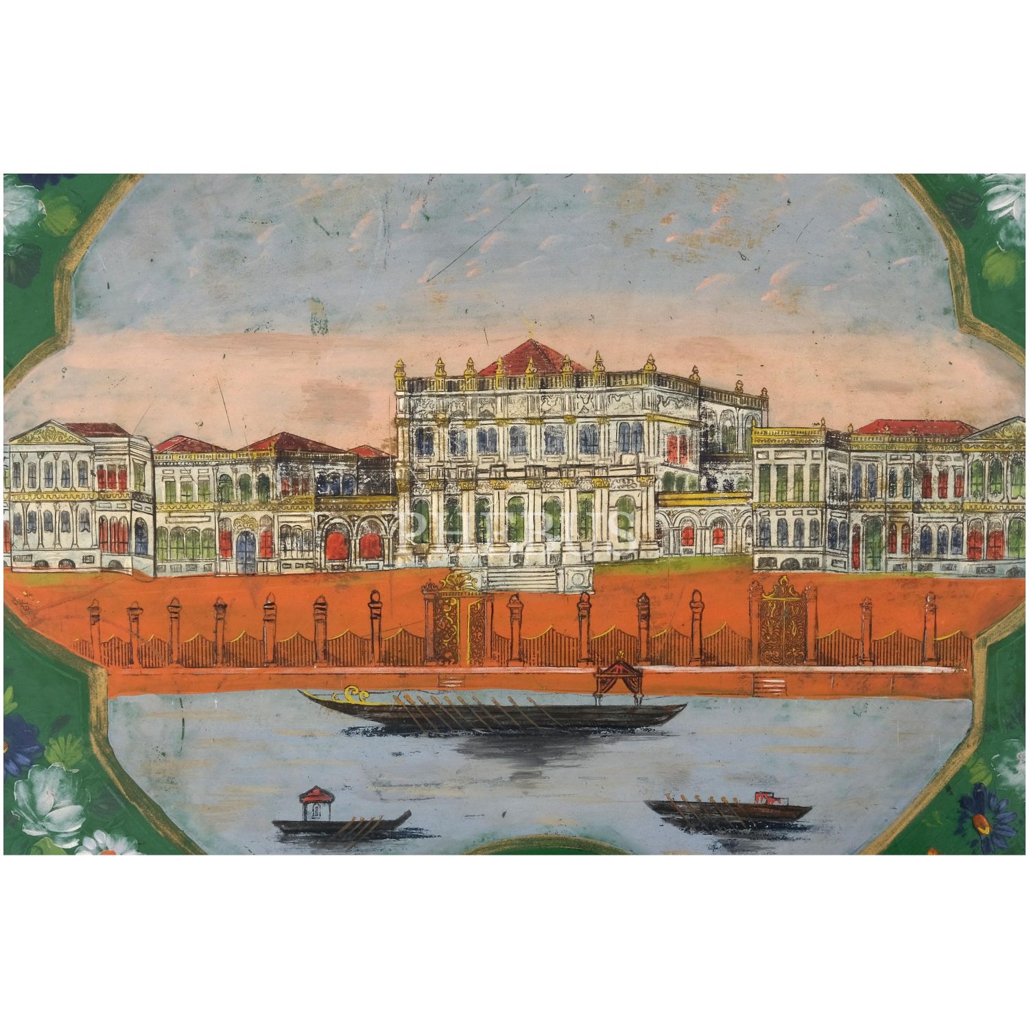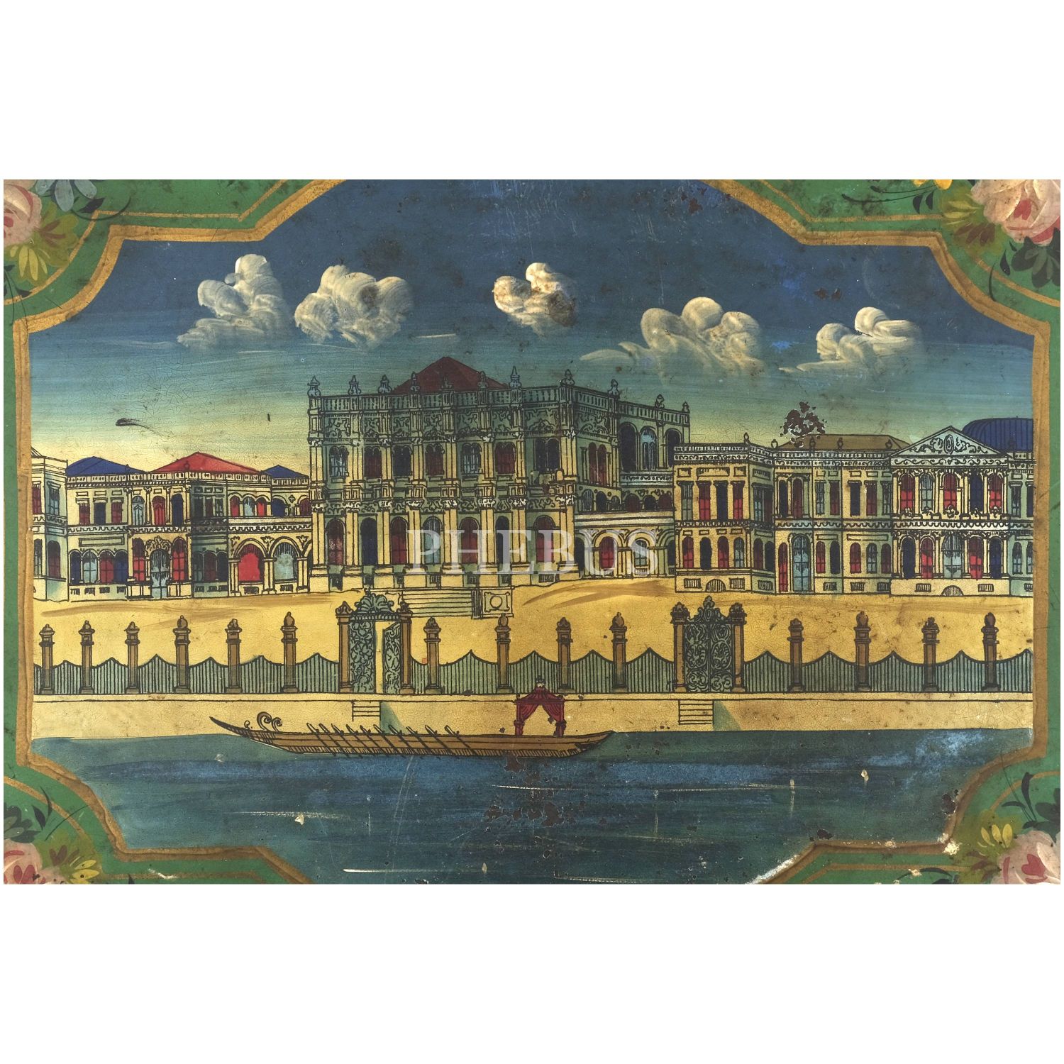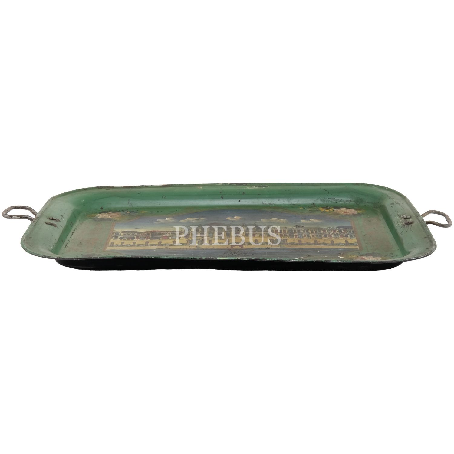 İkisi Dolmabahçe Sarayı, üçü Haliç tasvirli, her biri floral motiflerle dekore edilmiş 5 adet pulat tepsi, büyükten küçüğe 58x47 cm, 58x46 cm, 57x44 cm, 52x42 cm, 45x35 cm...
