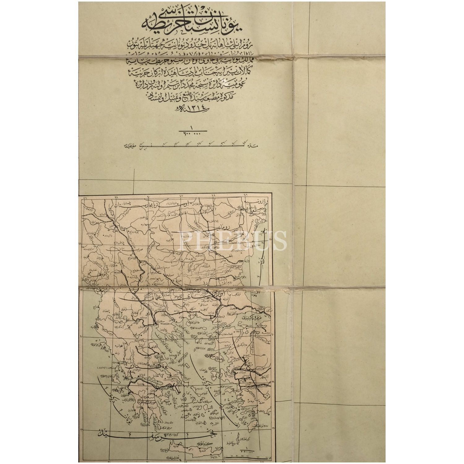 "Rumeli-yi Şahane´nin hudud-i Yunaniye cihetleriyle bütün Memalik-i Yunaniye-i havi olan işbu harita kemalat-i piraye-i cenab-ı padişahide erkan-ı harbiye-i umumiye dairesince müceddiden tersim olunarak daire-i mezkure matbaasında ta´b ve temsil olunmuştur."