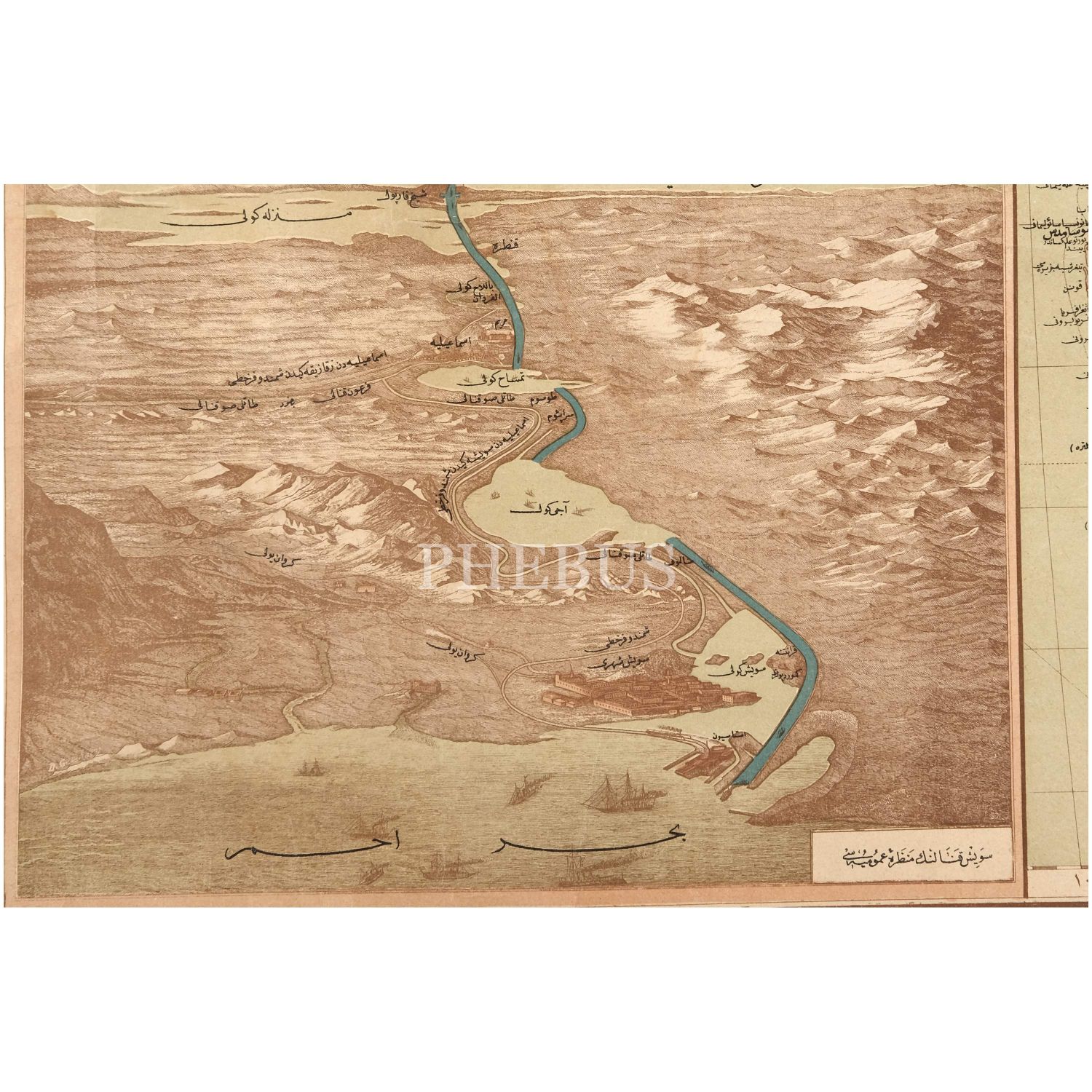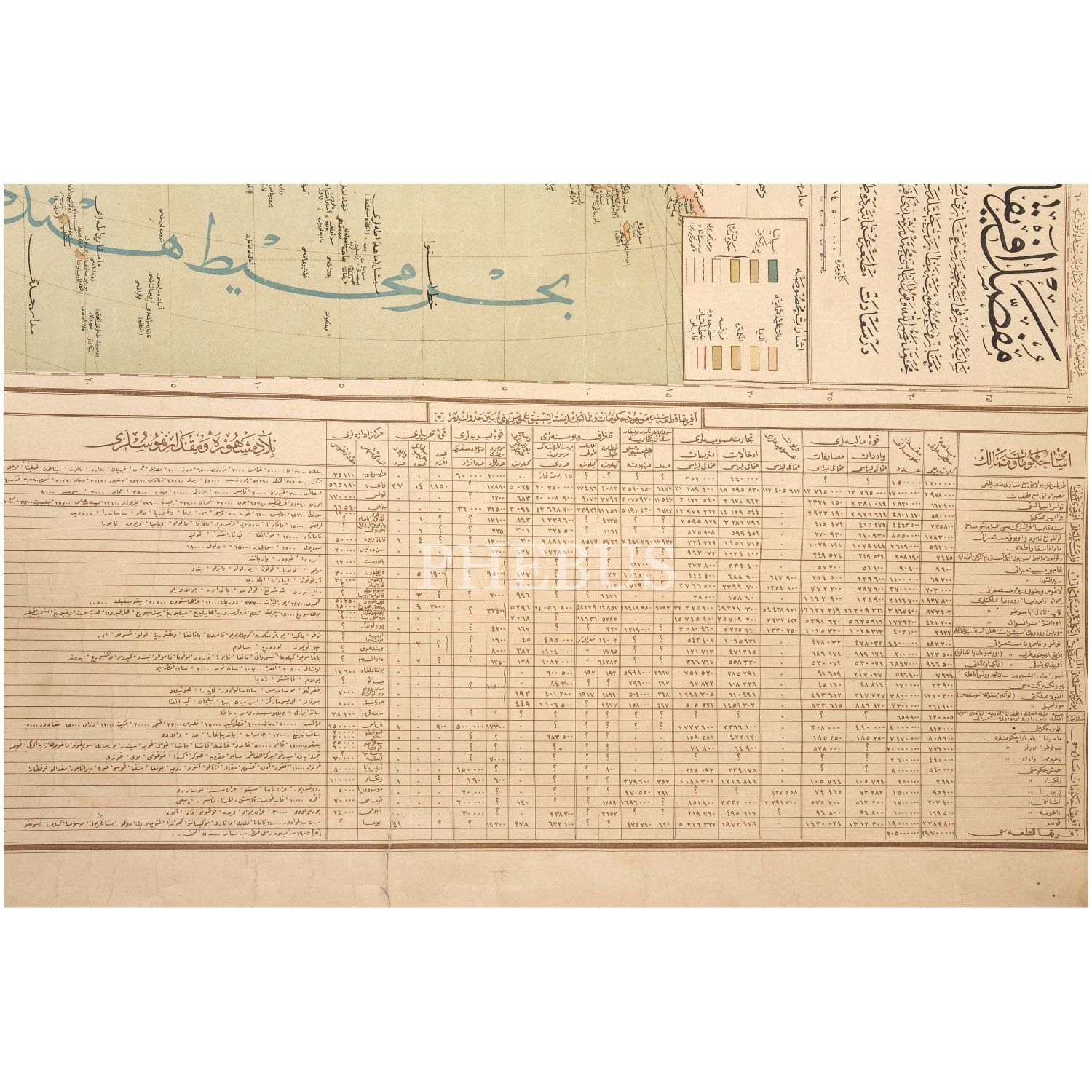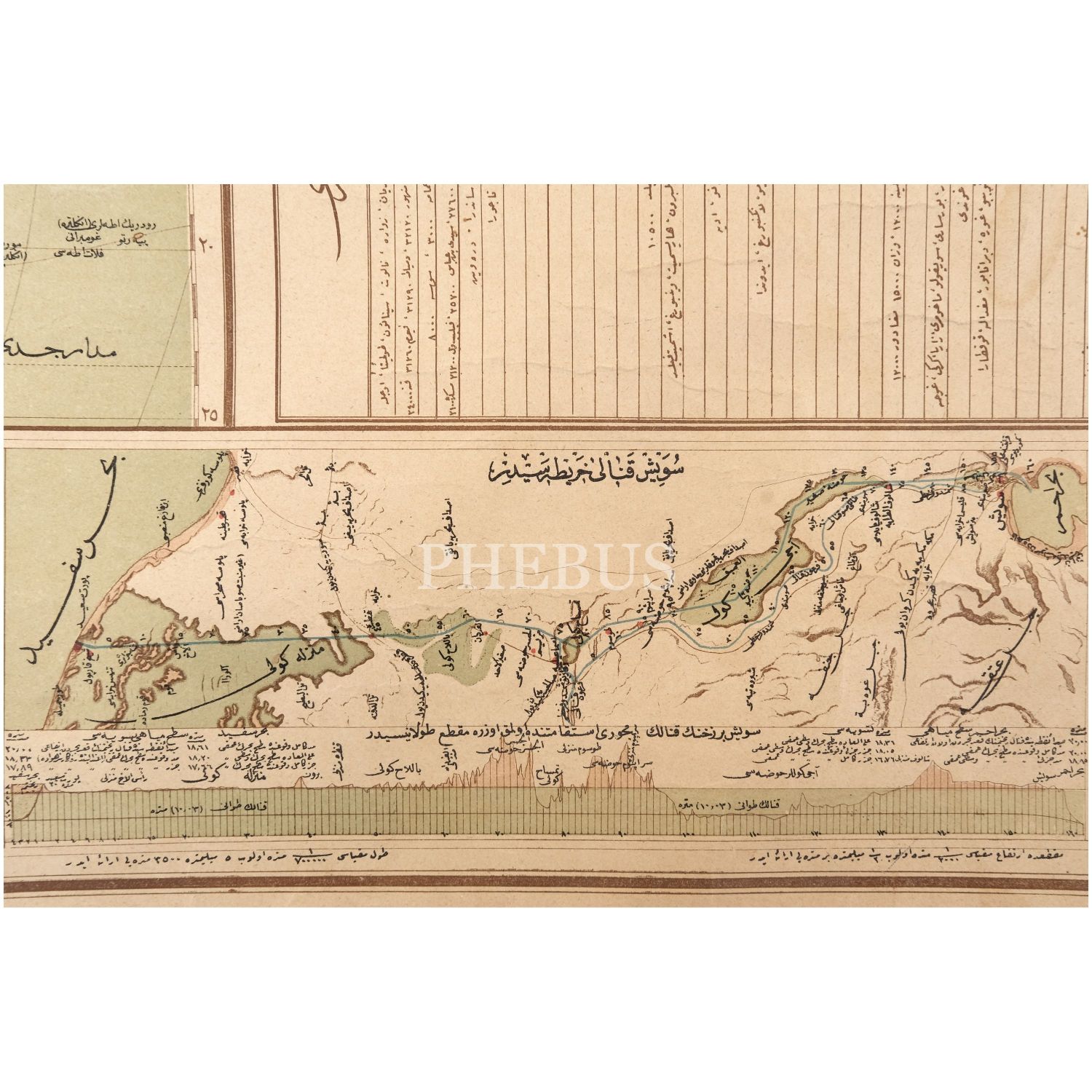 Haritanın sağ köşesindeki çizelgede Afrika´daki Osmanlı vilayetleri, mevcut bağımsız devletler ve Fransa, İngiltere, Portekiz ve Almanya´nın müstemlekelerine dair istatistiki bilgiler yer almaktadır. Sağ alt köşede Süveyş Kanalı´nın detaylı bir haritası, sol alt köşedeyse yine Süveyş Kanalı resmedilmiştir.