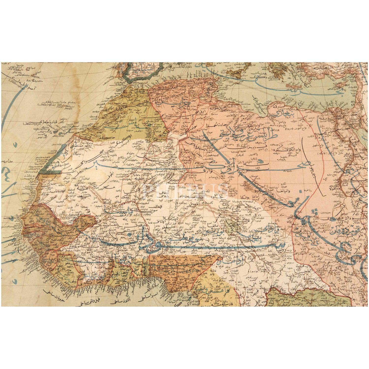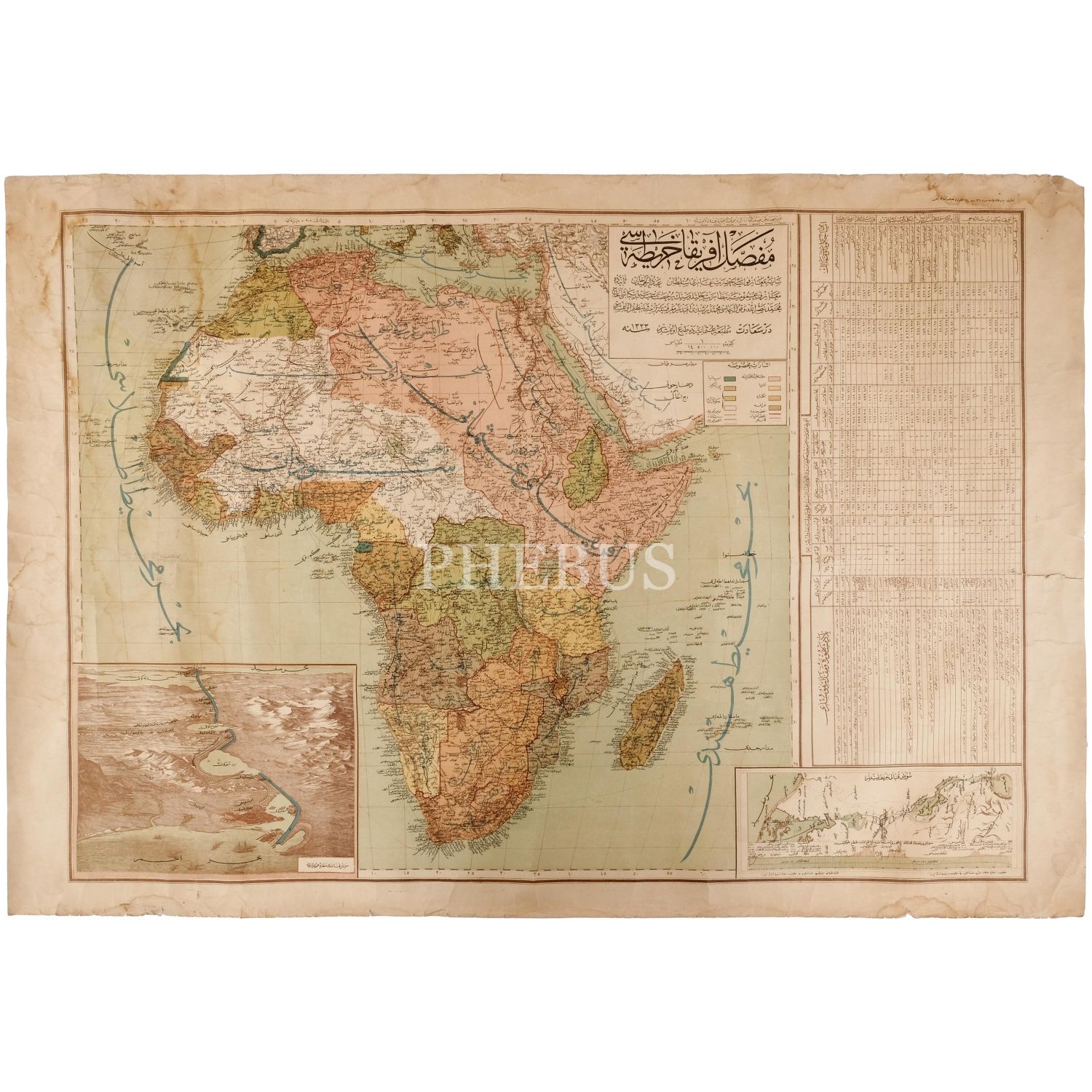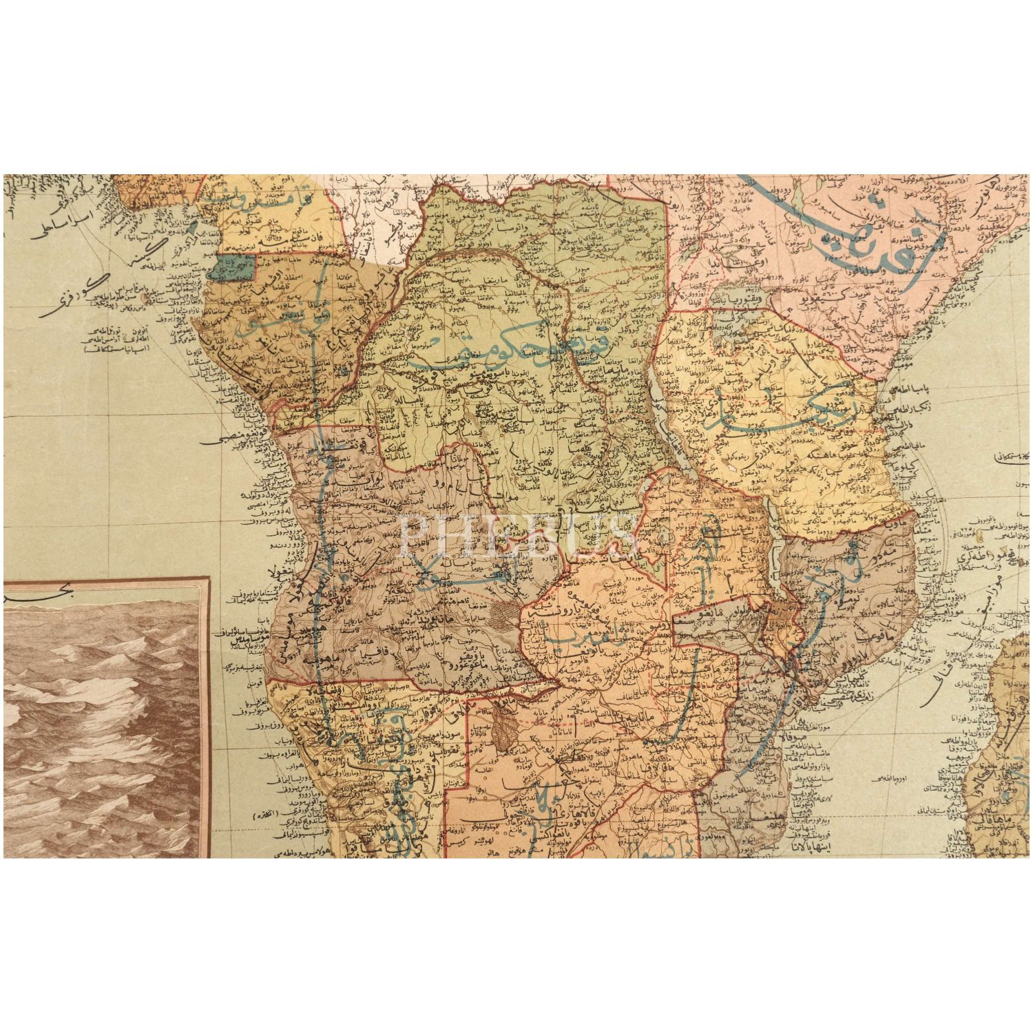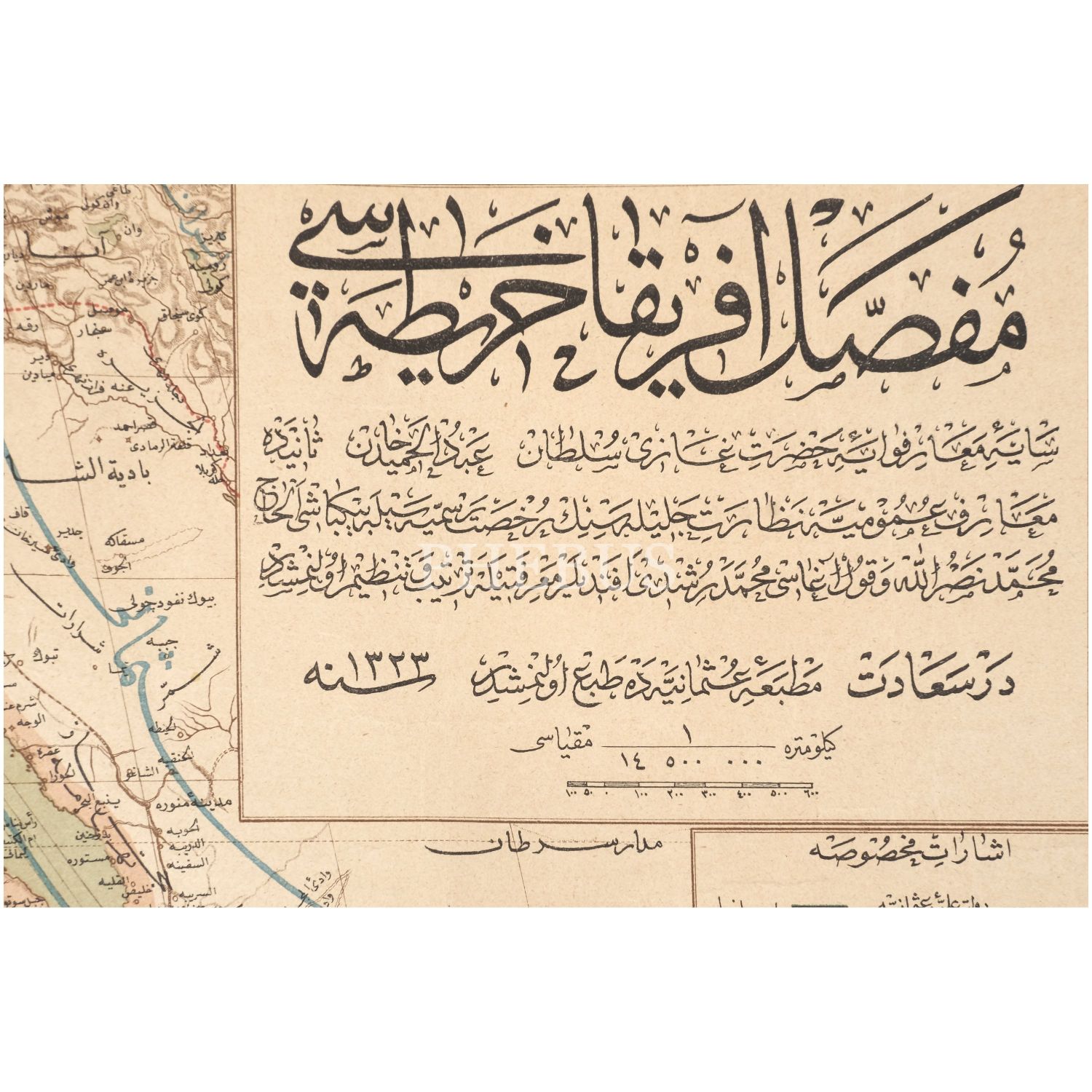 Binbaşı el-hac Mehmed Nasrullah Efendi ve Kolağası Muhammed Rüştü Efendi tarafından hazırlanan "Mufassal Afrika Haritası" başlıklı Osmanlıca harita, 1323, Matbaa-i Osmaniye,