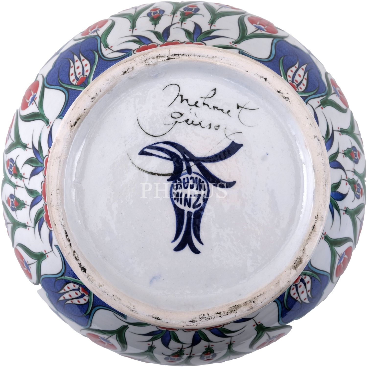 Mehmet Gürsoy imzalı İznik çini vazo (laleler), 25x20 cm...