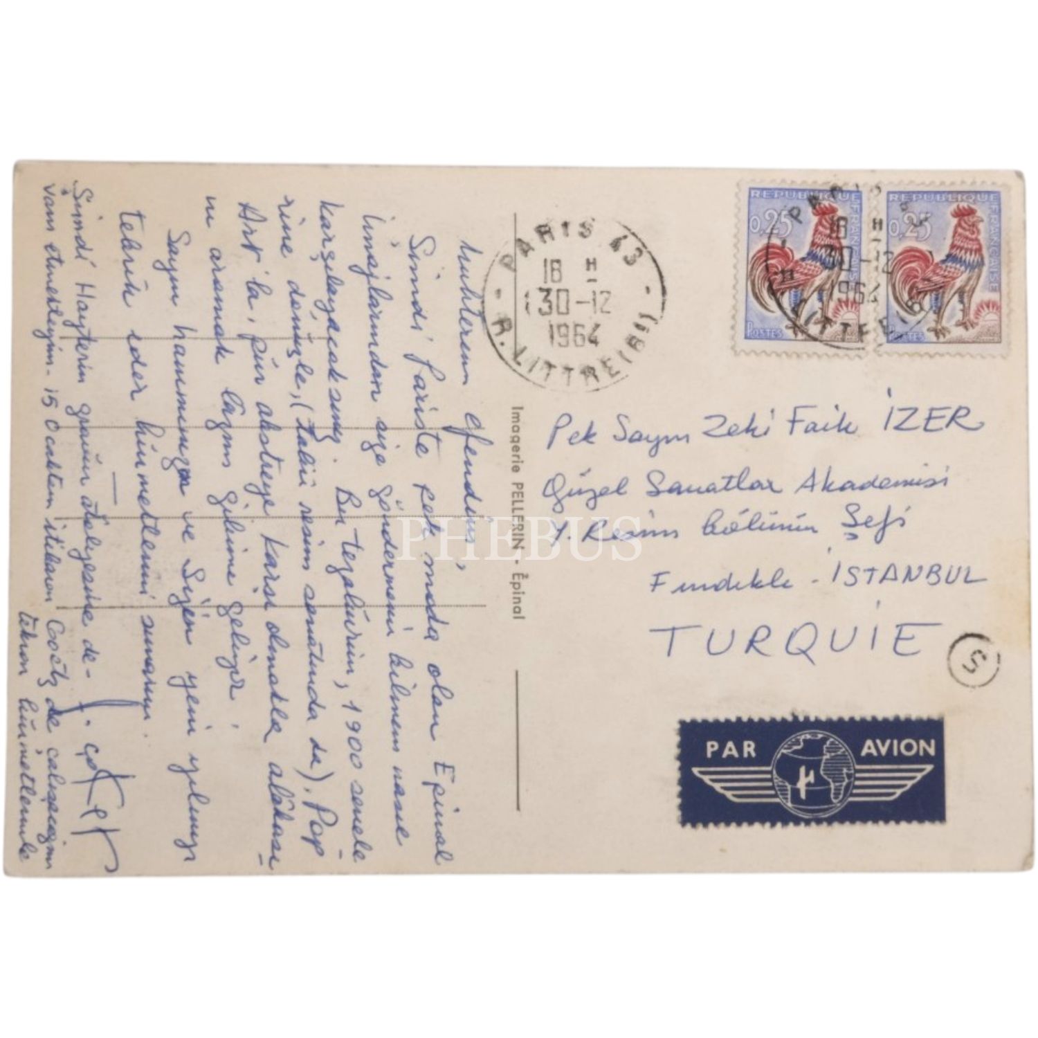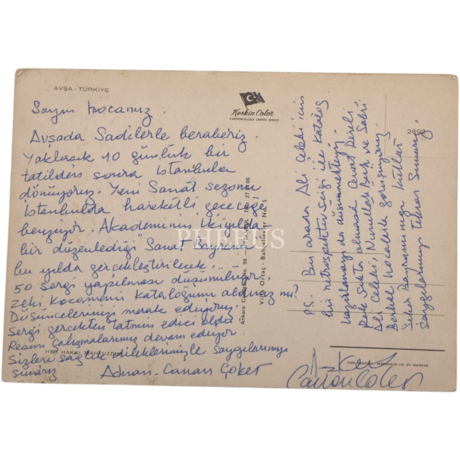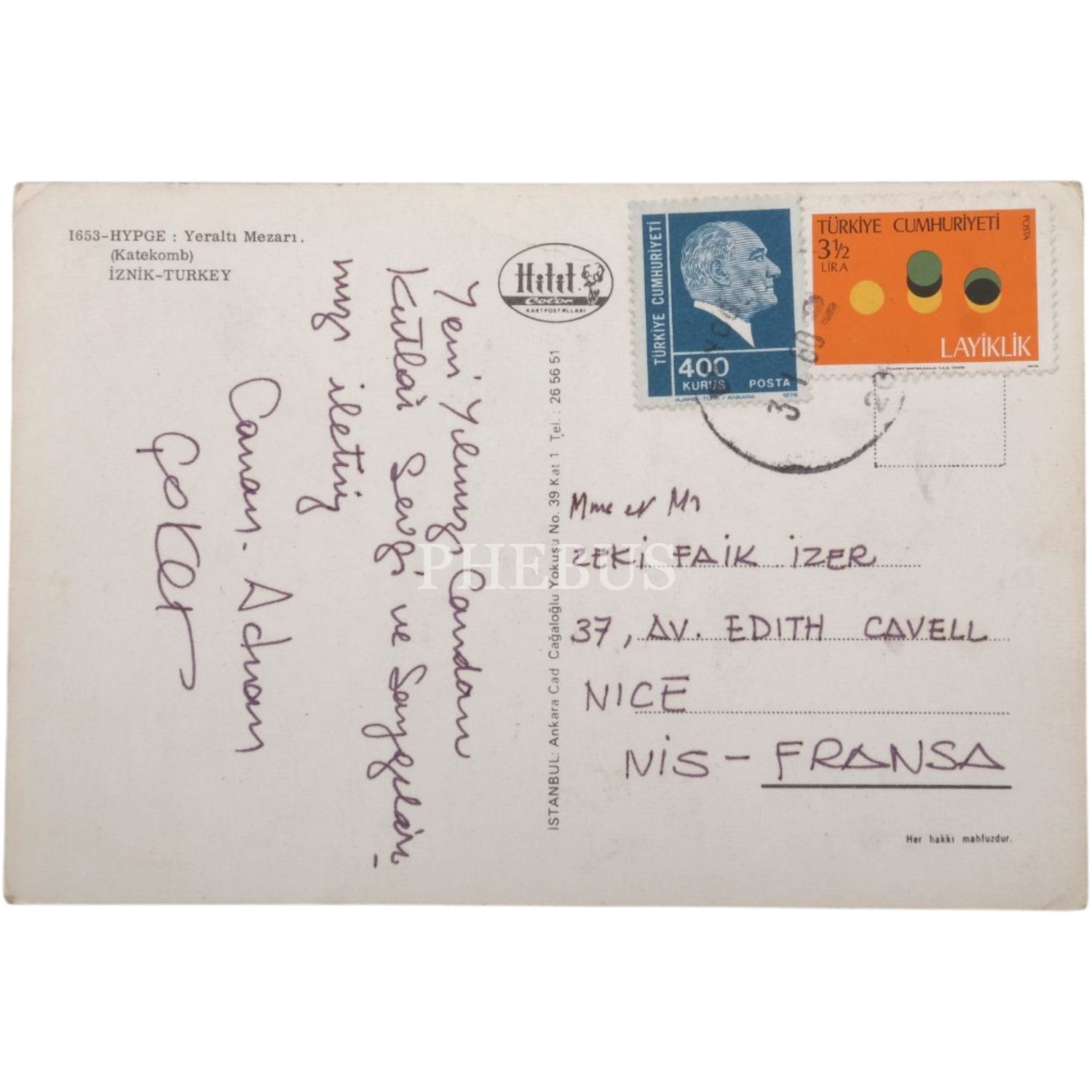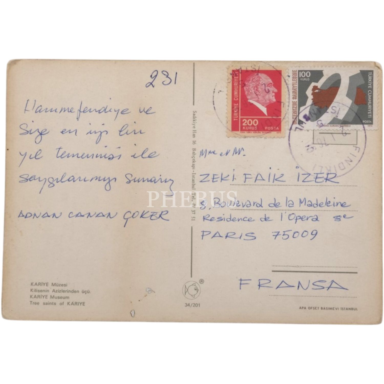 Ressam Adnan Çoker ve eşi Canan Hanım´dan Zeki Faik İzer´e 1960-81´li yıllarda Paris, Salzburg, Nice ve İstanbul gibi şehirlerden gönderilen 9 adet kartpostal, 10x15 cm...