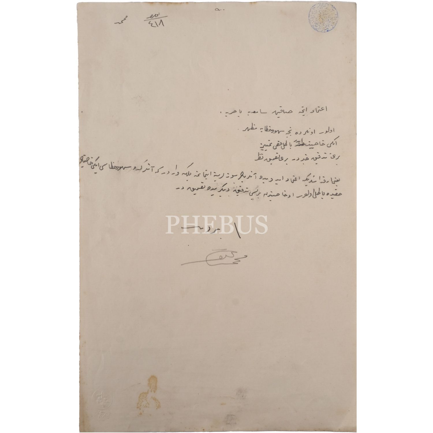 Mehmet Akif´in, Darülfünun Edebiyat Şubesi öğretmenliği görevindeyken "birdir" notuyla değerlendirdiği ve imzaladığı sınav kağıdı, 23x35 cm...