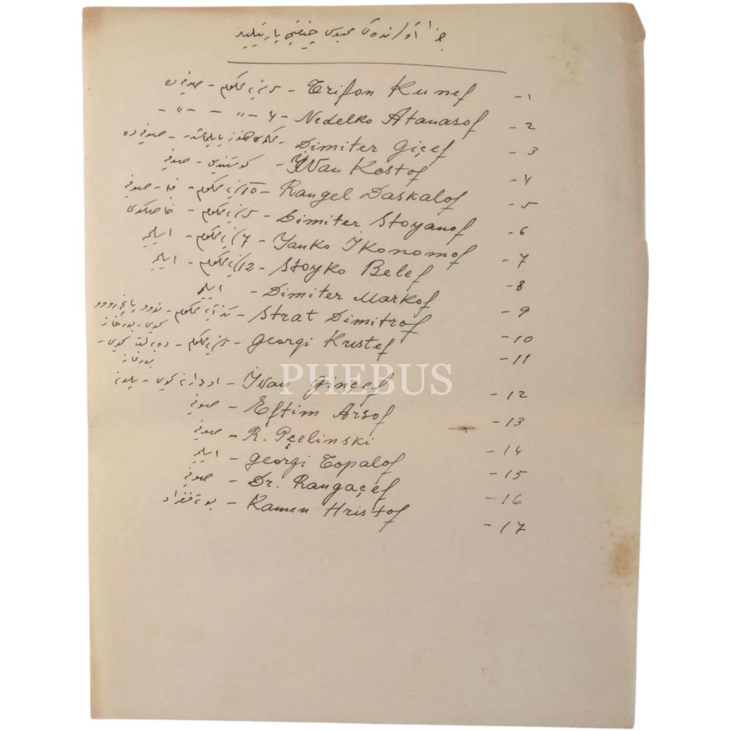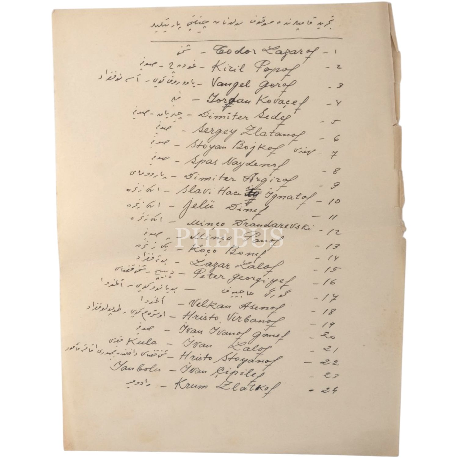 4- Toplama kamplarındaki Çiftçi Partililerin Bulgarca-Osmanlıca listesi,