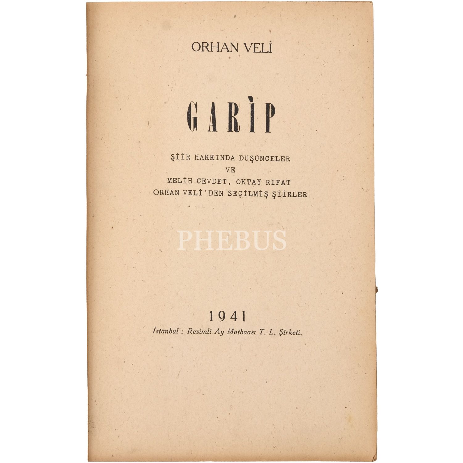 GARİP (Şiir Hakkında Düşünceler ve Melih Cevdet, Oktay Rifat Orhan Veli´den Seçilmiş Şiirler), 1941, Resimli Ay Matbaası, 63 sayfa, 16x23 cm...