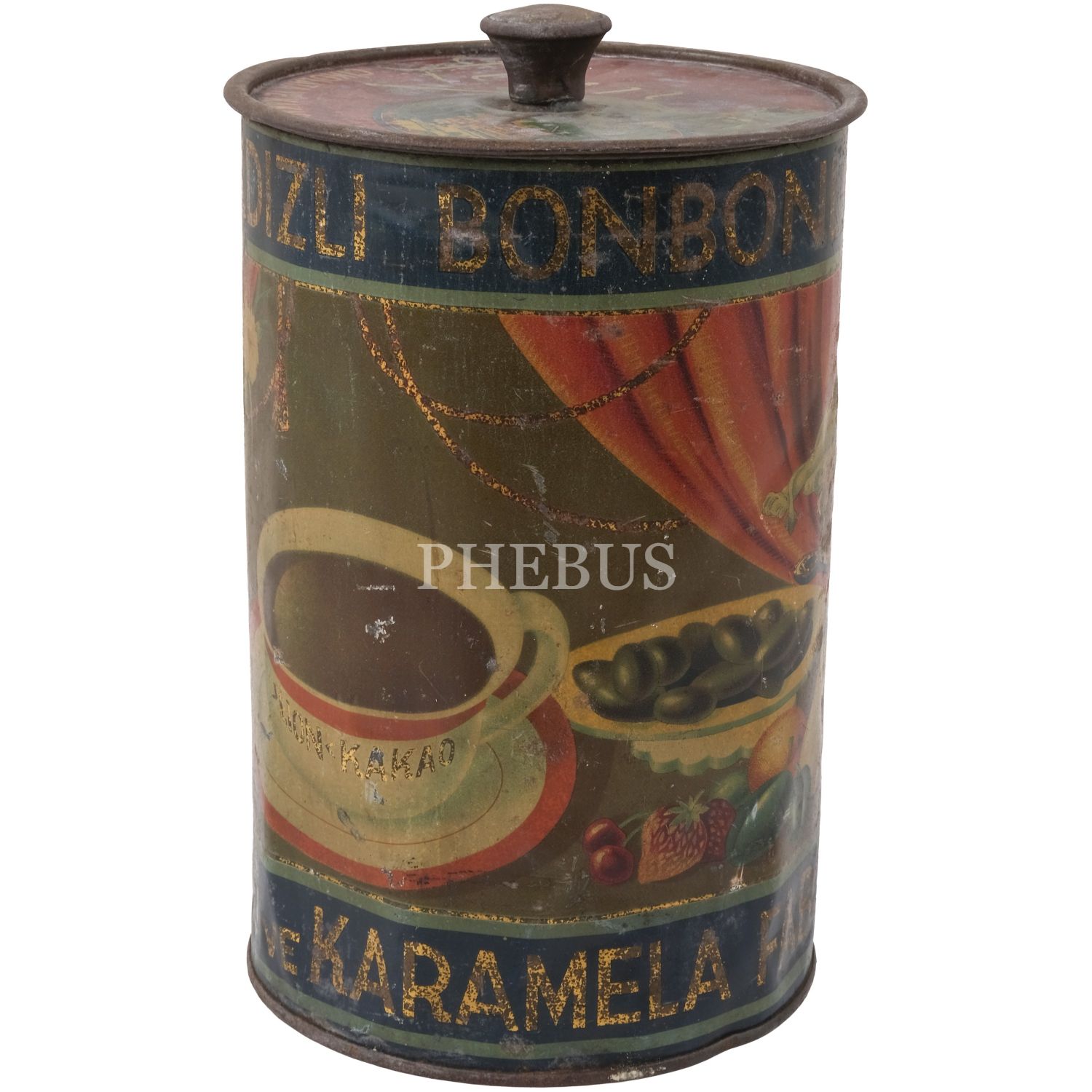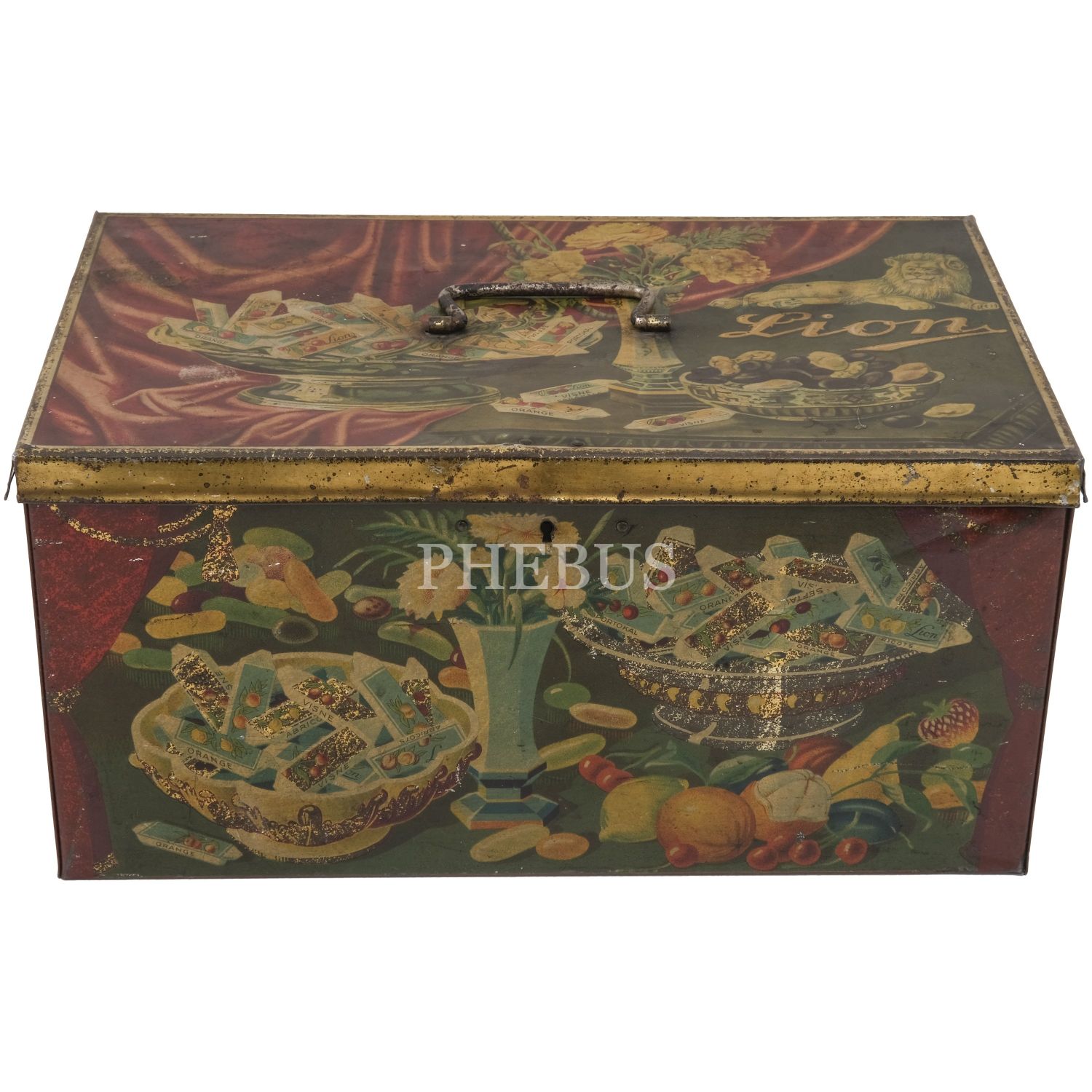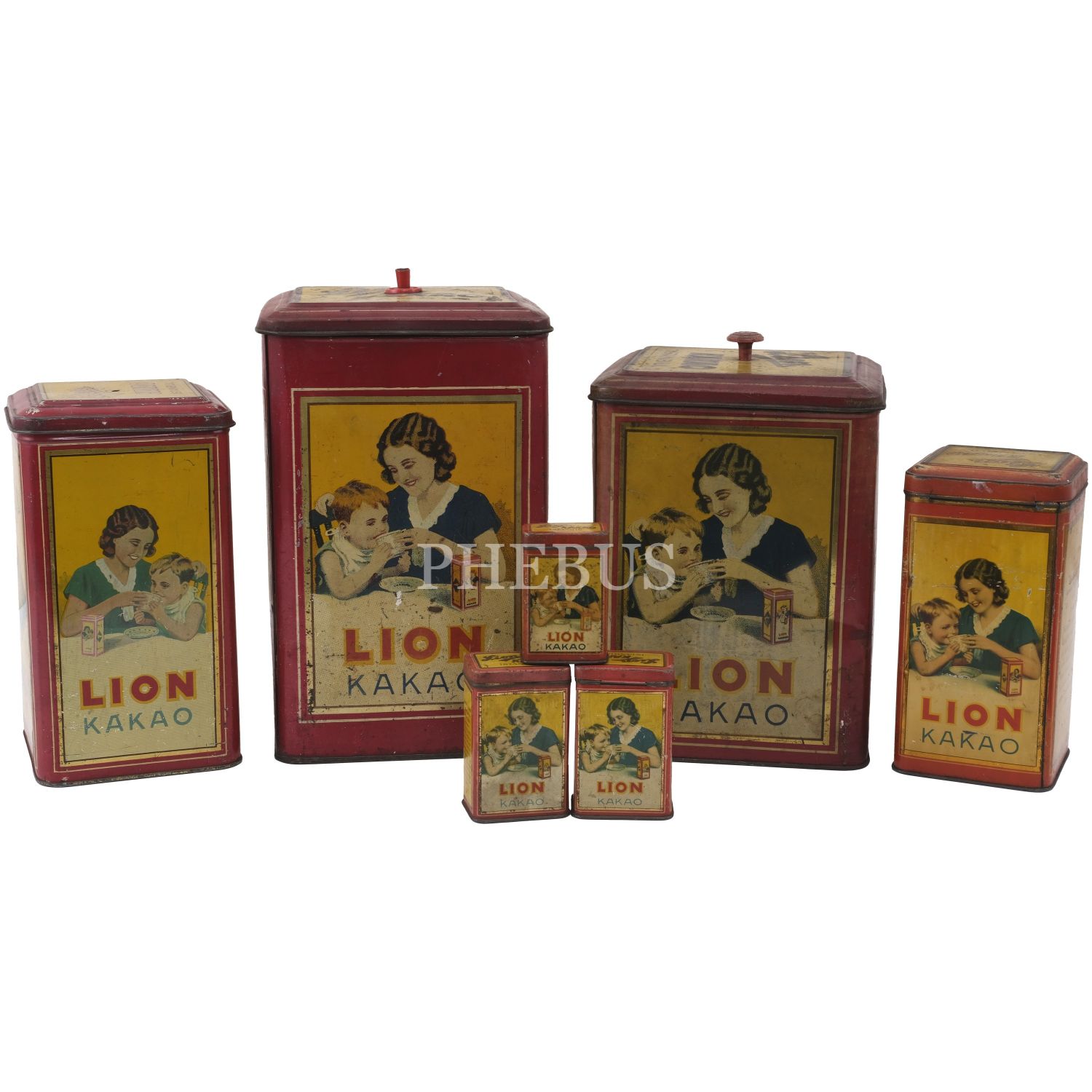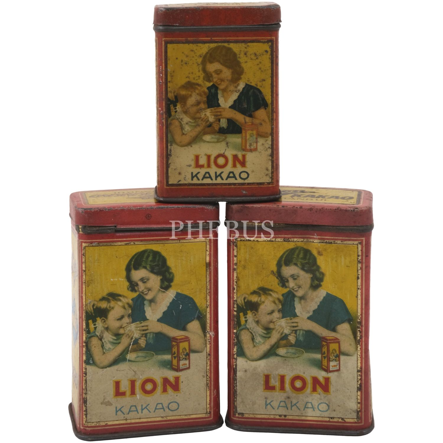 Lion Çikolata ve Bonbon Fabrikası tarafından üretilmiş; çikolata, bonbon, kakao tozu, pastil komprime gibi çeşitli ürün gruplarının büyük, orta ve küçük boy teneke kutuları ile "Lion Çikolata ve Bonbon Fabrikası" yazılı, son derece nadir bir mini masa lambası...