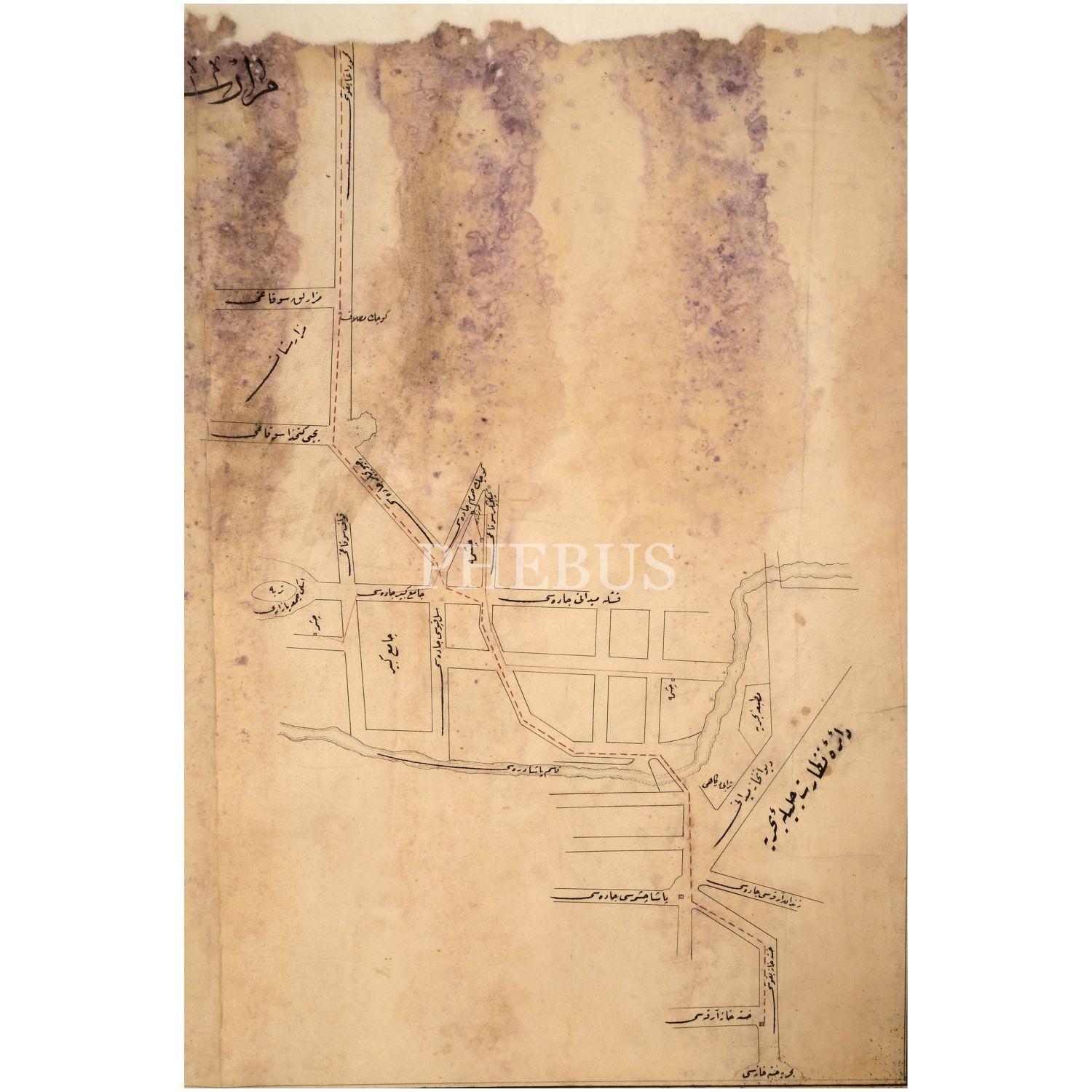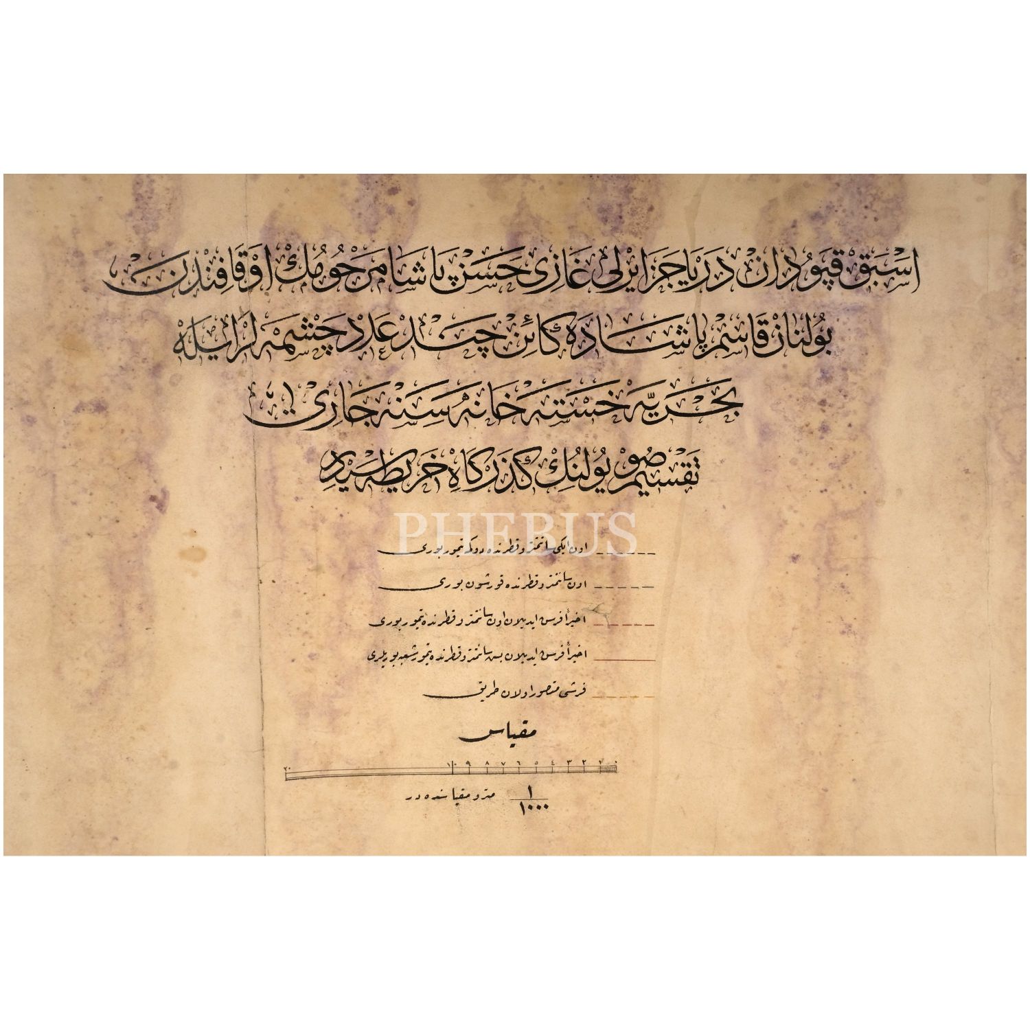 "Esbak-ı Kaptan-ı Derya Cezayirli Gazi Hasan Paşa merhumun evkafından bulunan Kasımpaşa´da kain çend-i adad çeşmeler ile Bahriye Hastahanesi´ne cari Taksim su yolunun güzergah haritasıdır."