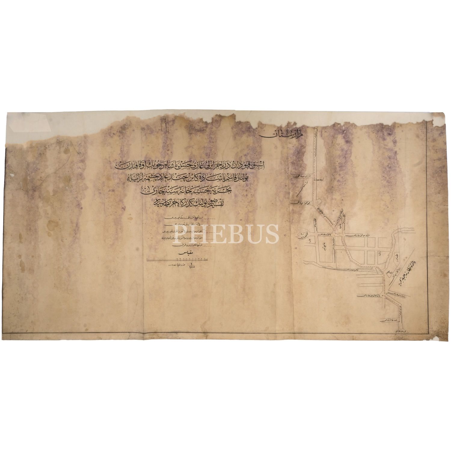 Kasımpaşa´da bulunan çeşitli çeşmeler ve Bahriye Hastanesi´ne akan Taksim Su Yolu´nun güzergahının gösterildiği, Osmanlıca harita, metal saklama kutusunda, 145x73 cm...