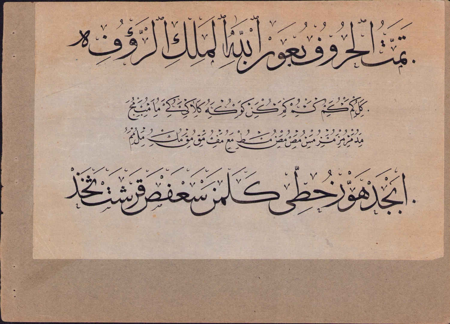 Sülüs Nesih Hoca işi hurufat meşk murakkaı, 12 parça, 21x13,5 cm.