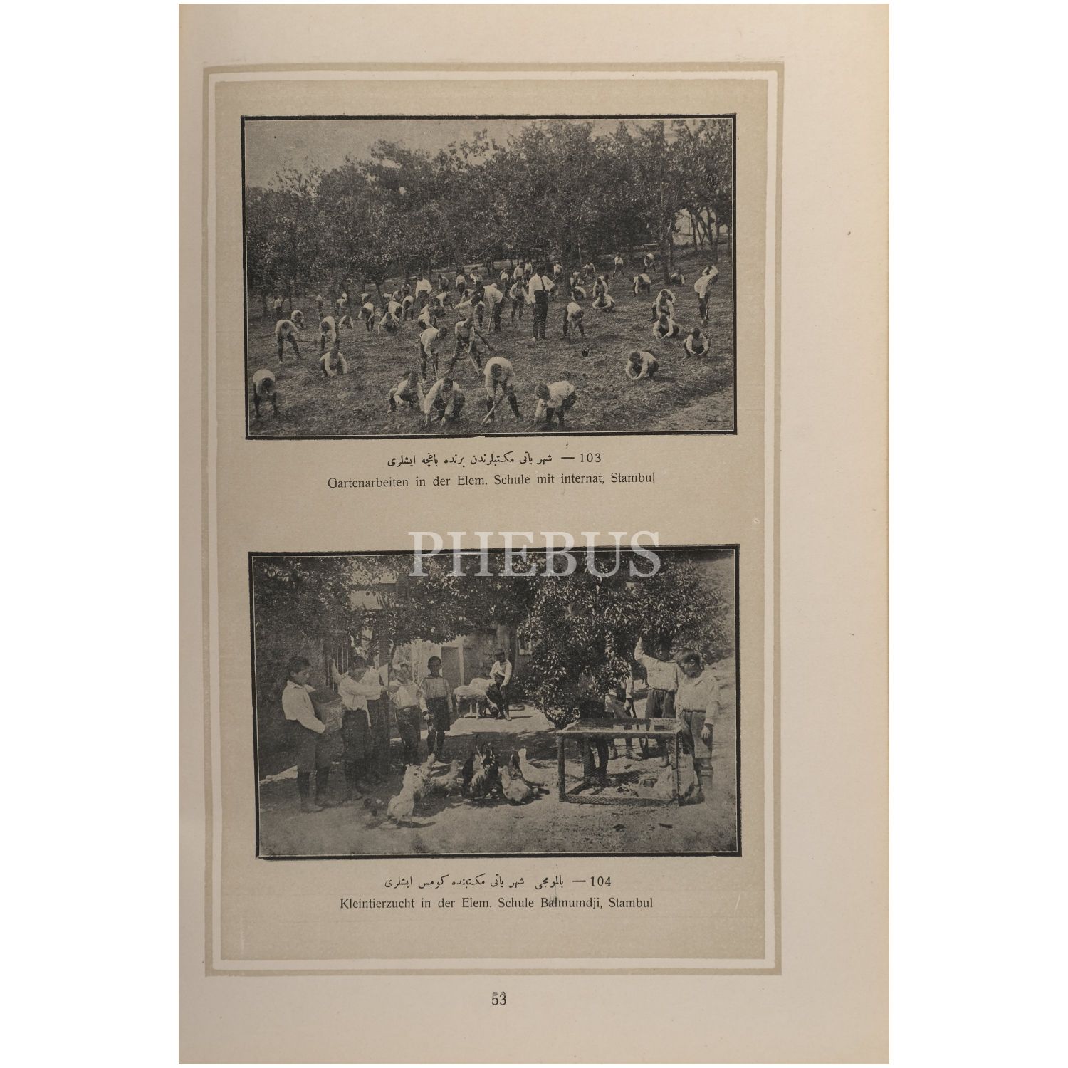 Erken Cumhuriyet eğitim hayatının ülkenin hemen her yerinden fotoğraflarla gösterildiği Osmanlı Türkçesi ve Almanca olarak hazırlanmış albüm.