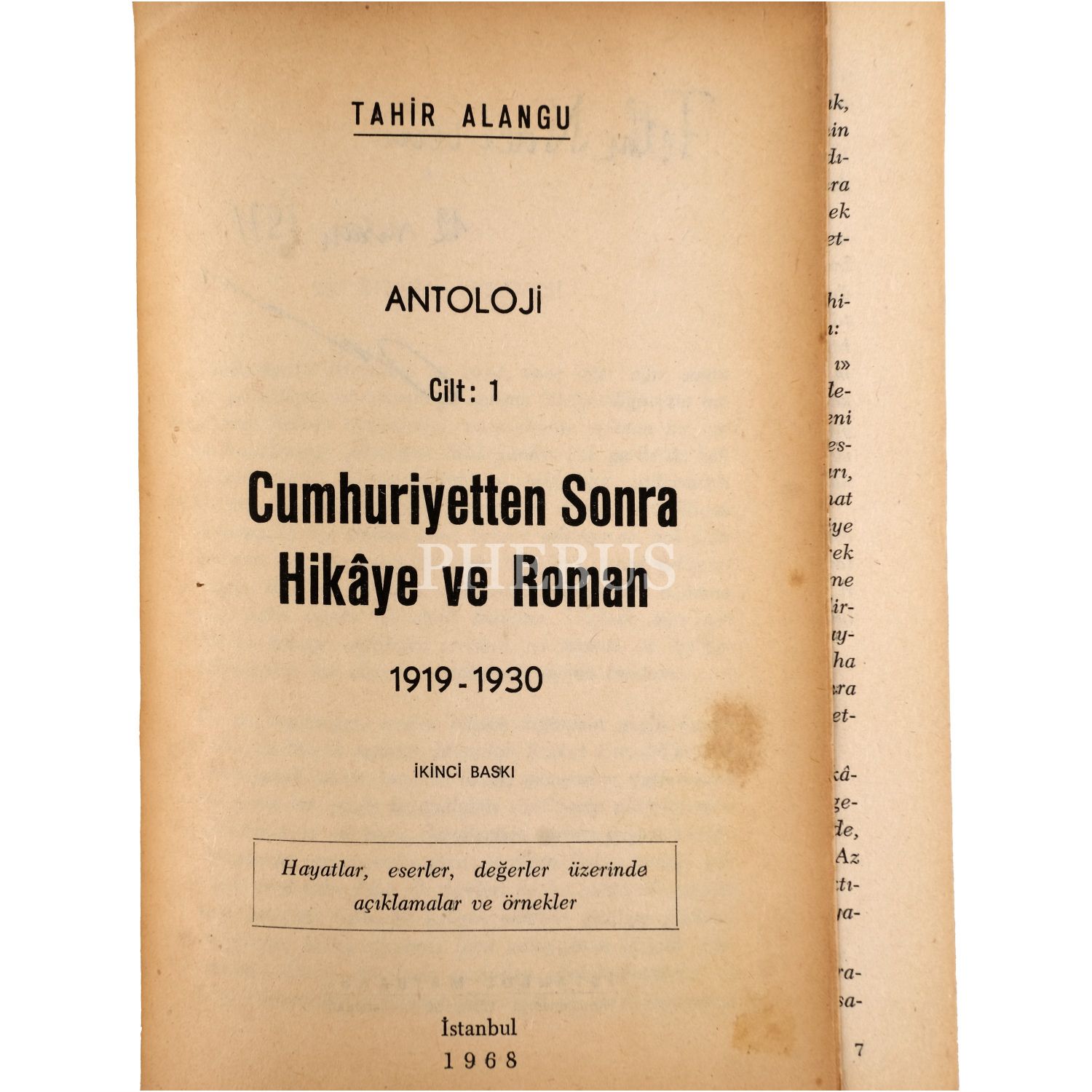 CUMHURİYETTEN SONRA HİKÂYE VE ROMAN (Antoloji / Cilt: 1-2-3), Tahir Alangu, 1965-1968, 863 sayfa, 13x19 cm...