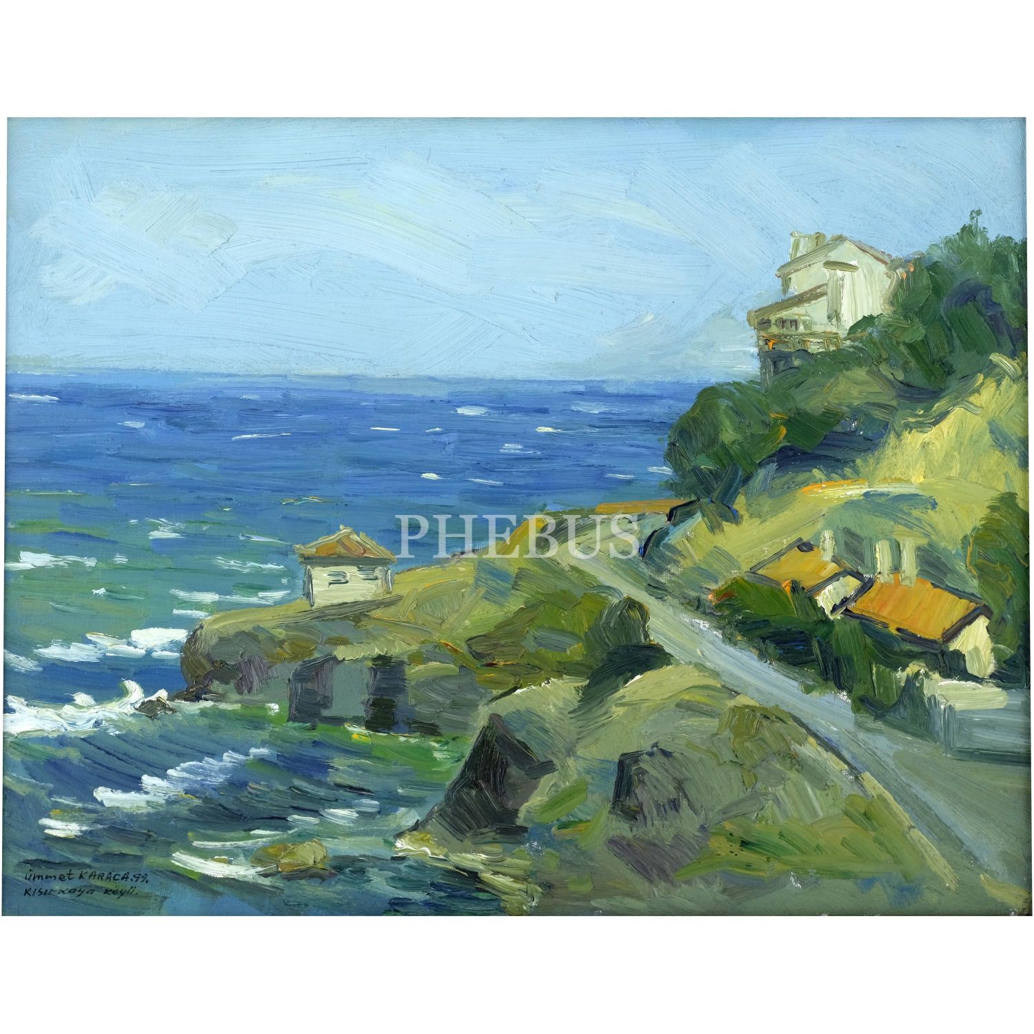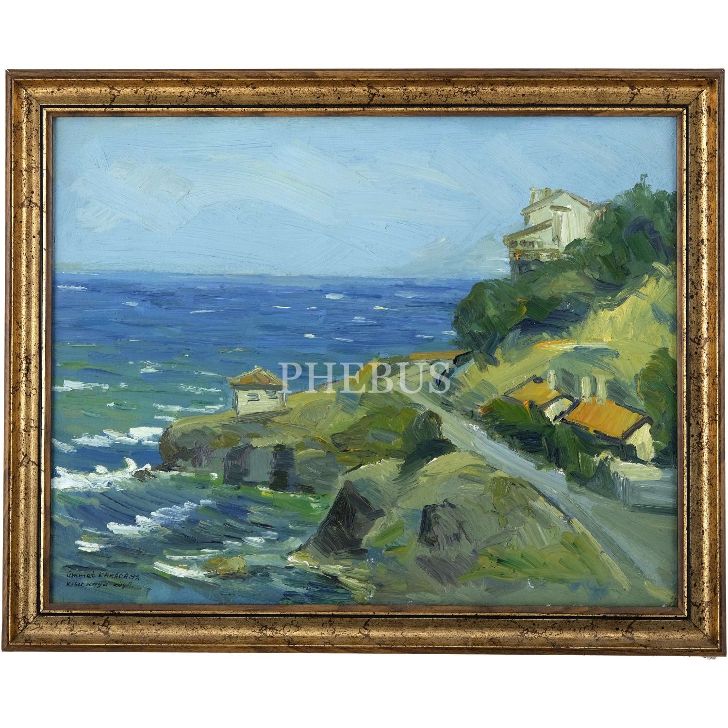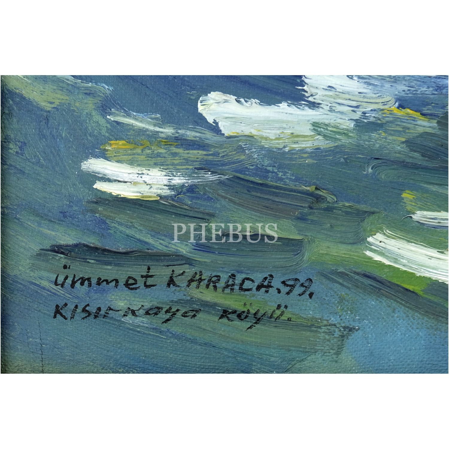 Ümmet Karaca imzalı, tuval üzerine yağlı boya peyzaj, "Kısırkaya Köyü", 1999,