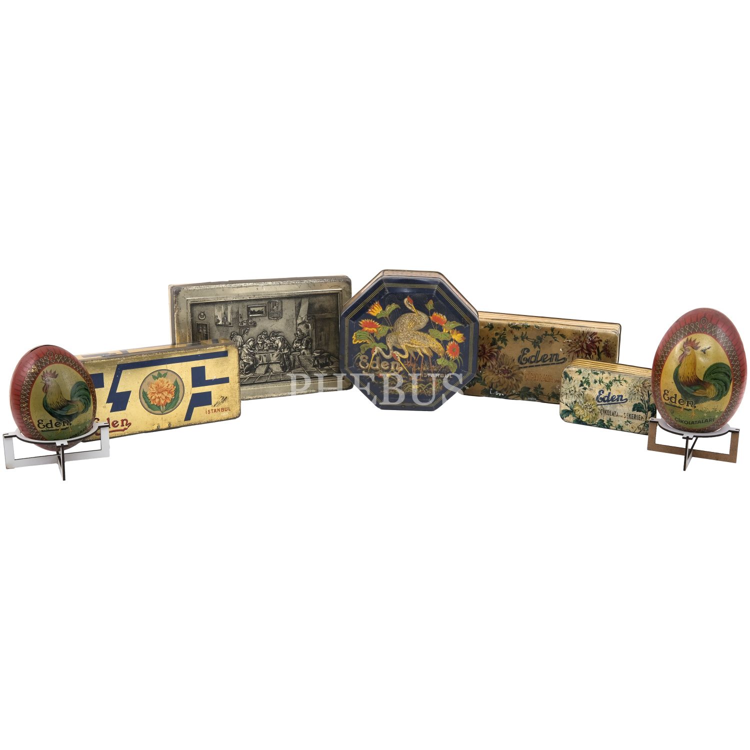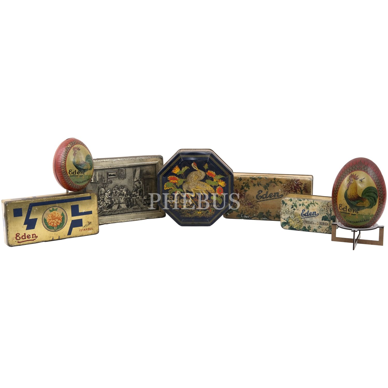 Eden Çikolata ve Şekerleme Fabrikası tarafından üretimiş çeşitli ürünlerin teneke kutuları (7 parça)...