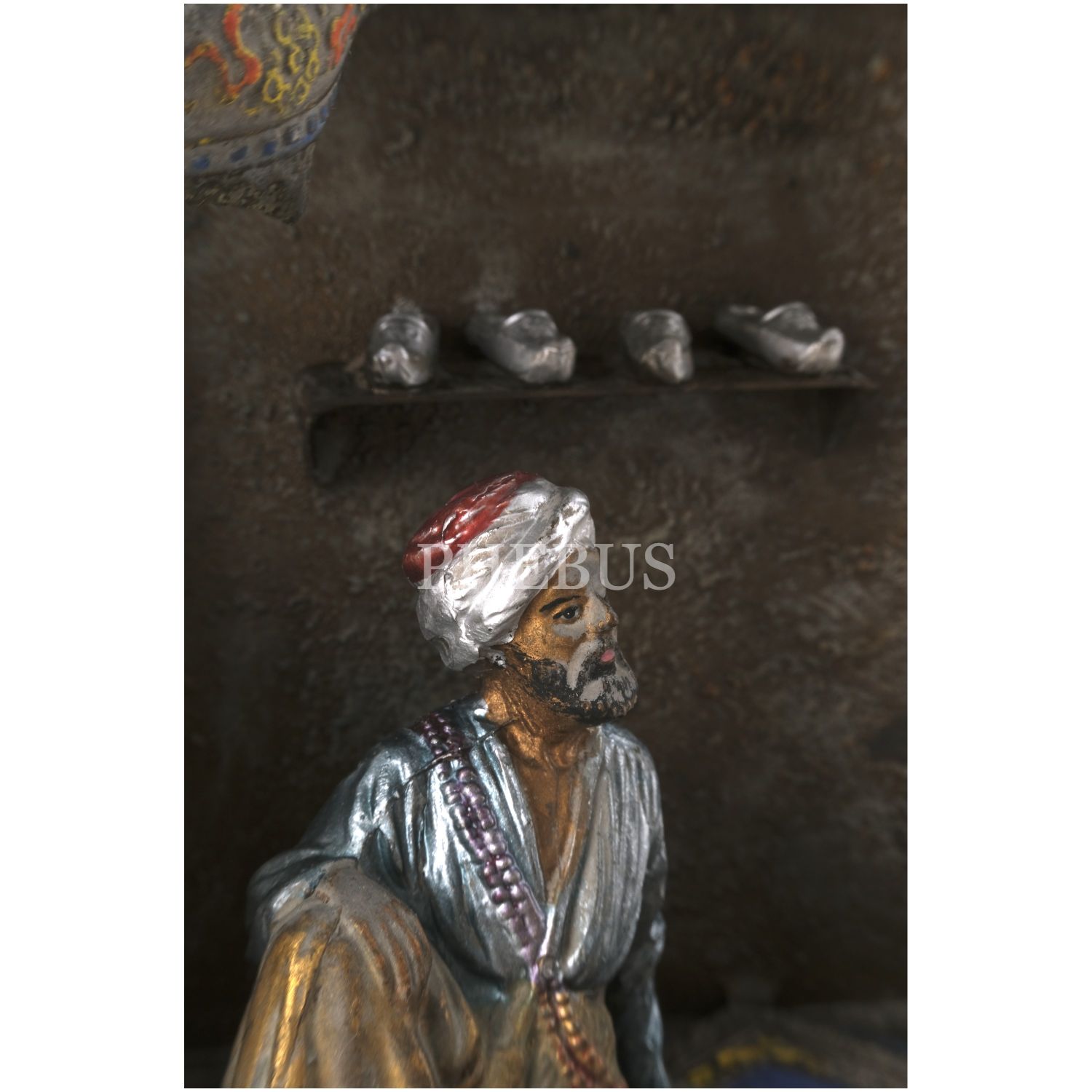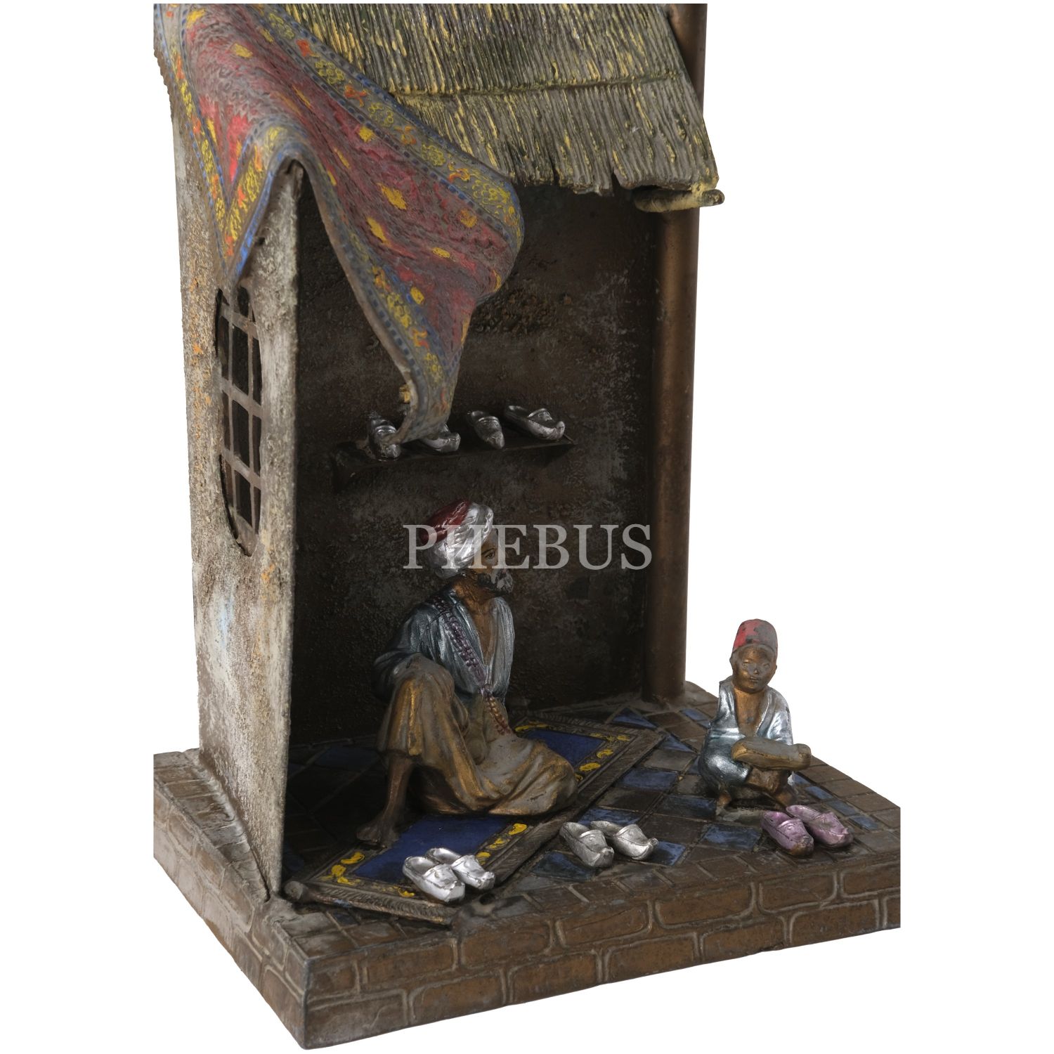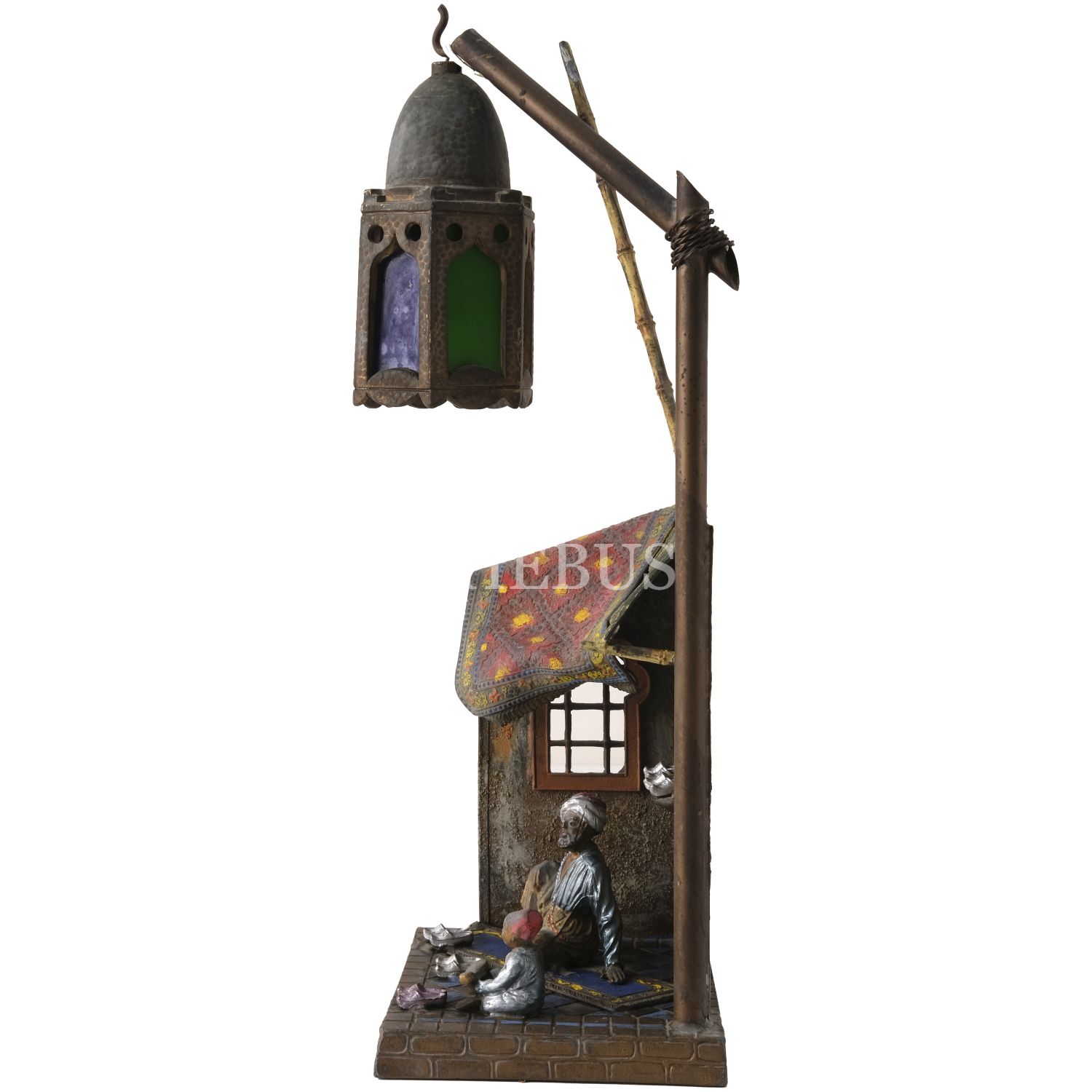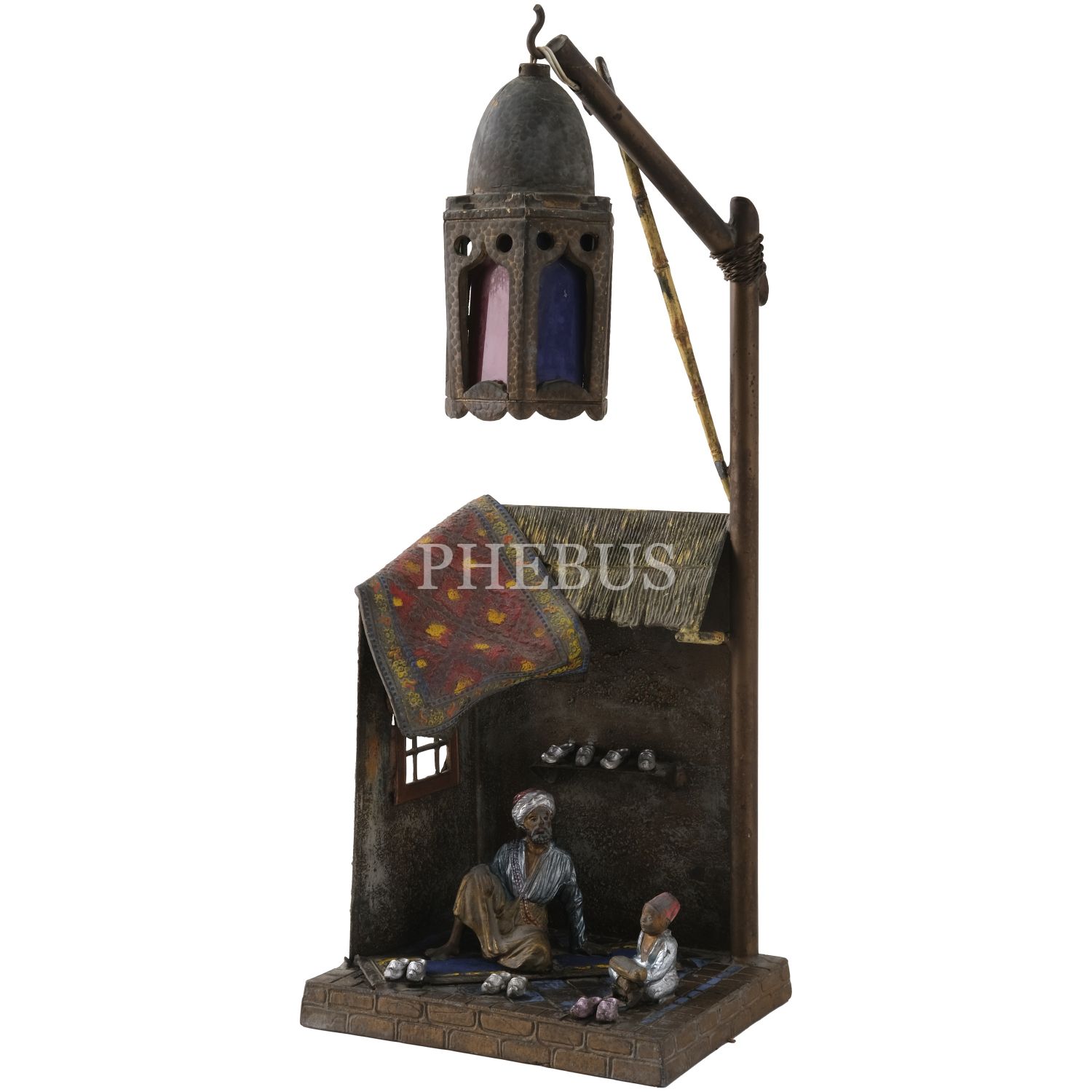 19. yüzyıl Viyana üretimi, harika detaylarla bezenmiş oryantal çarık dükkanı formunda masa lambası, 38x15x12 cm...