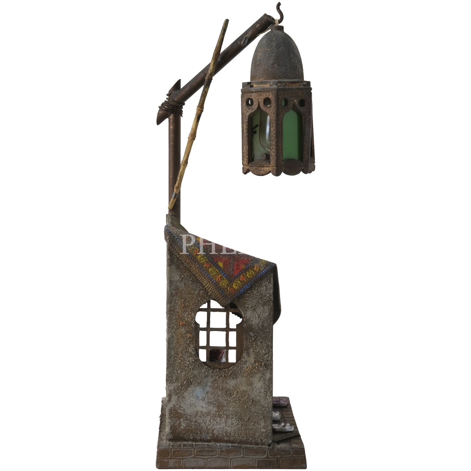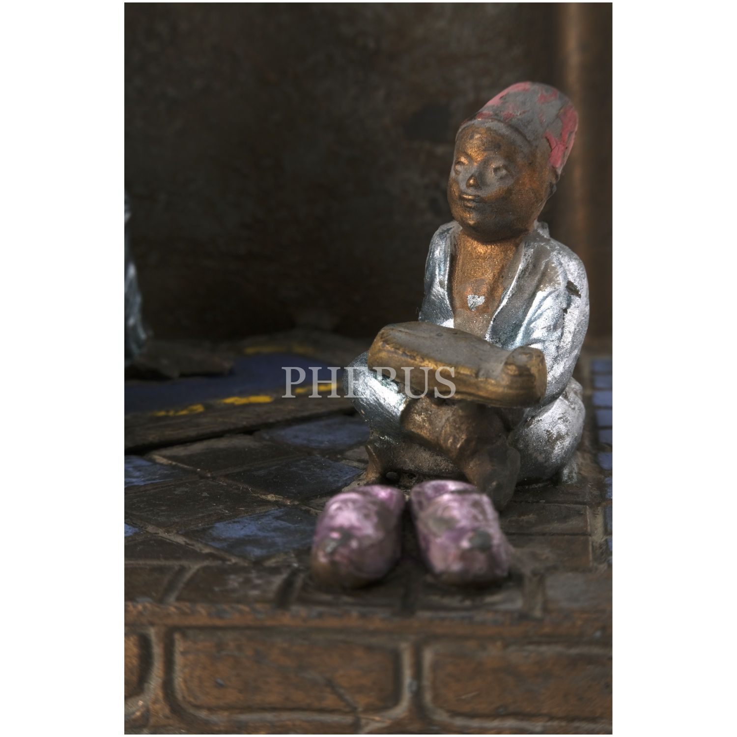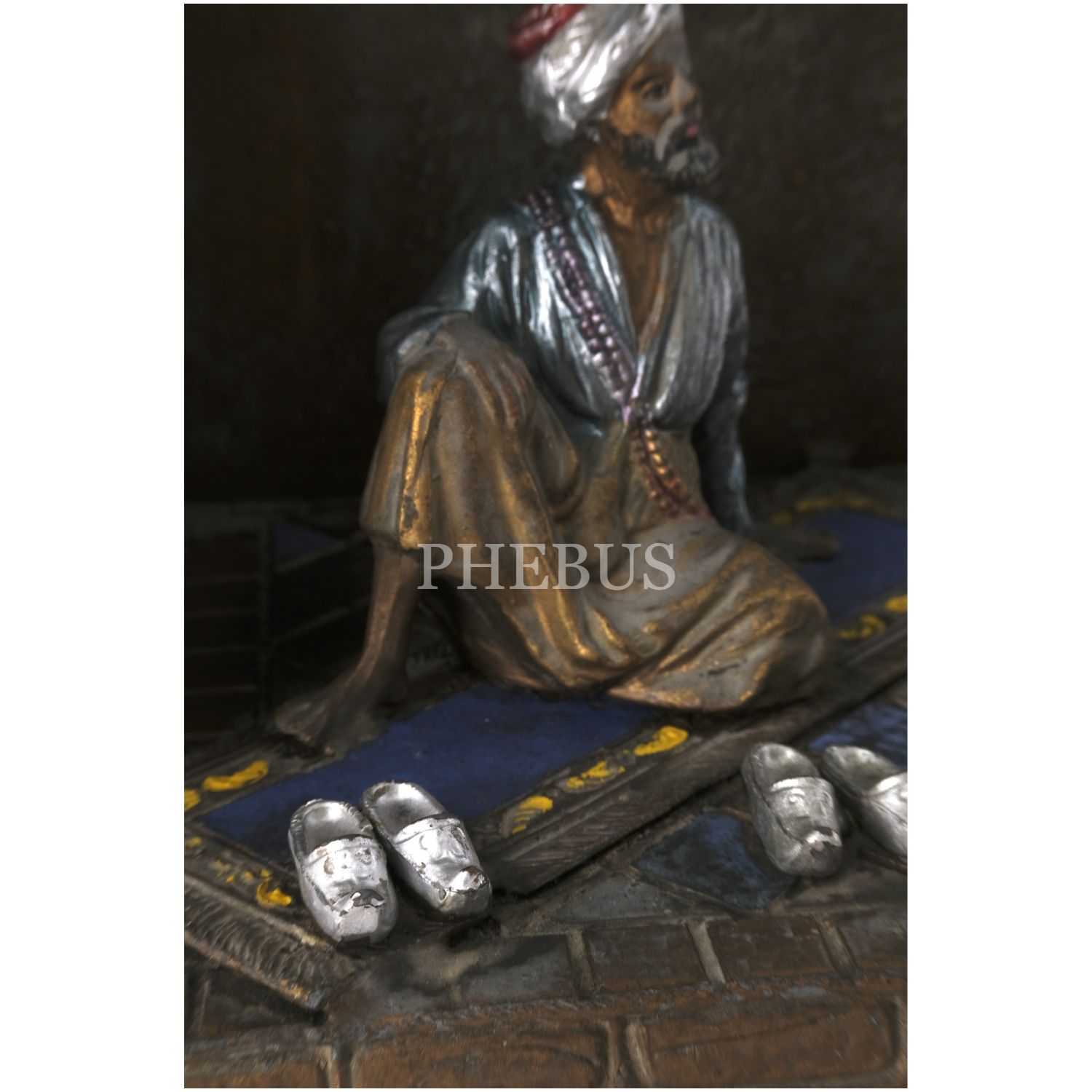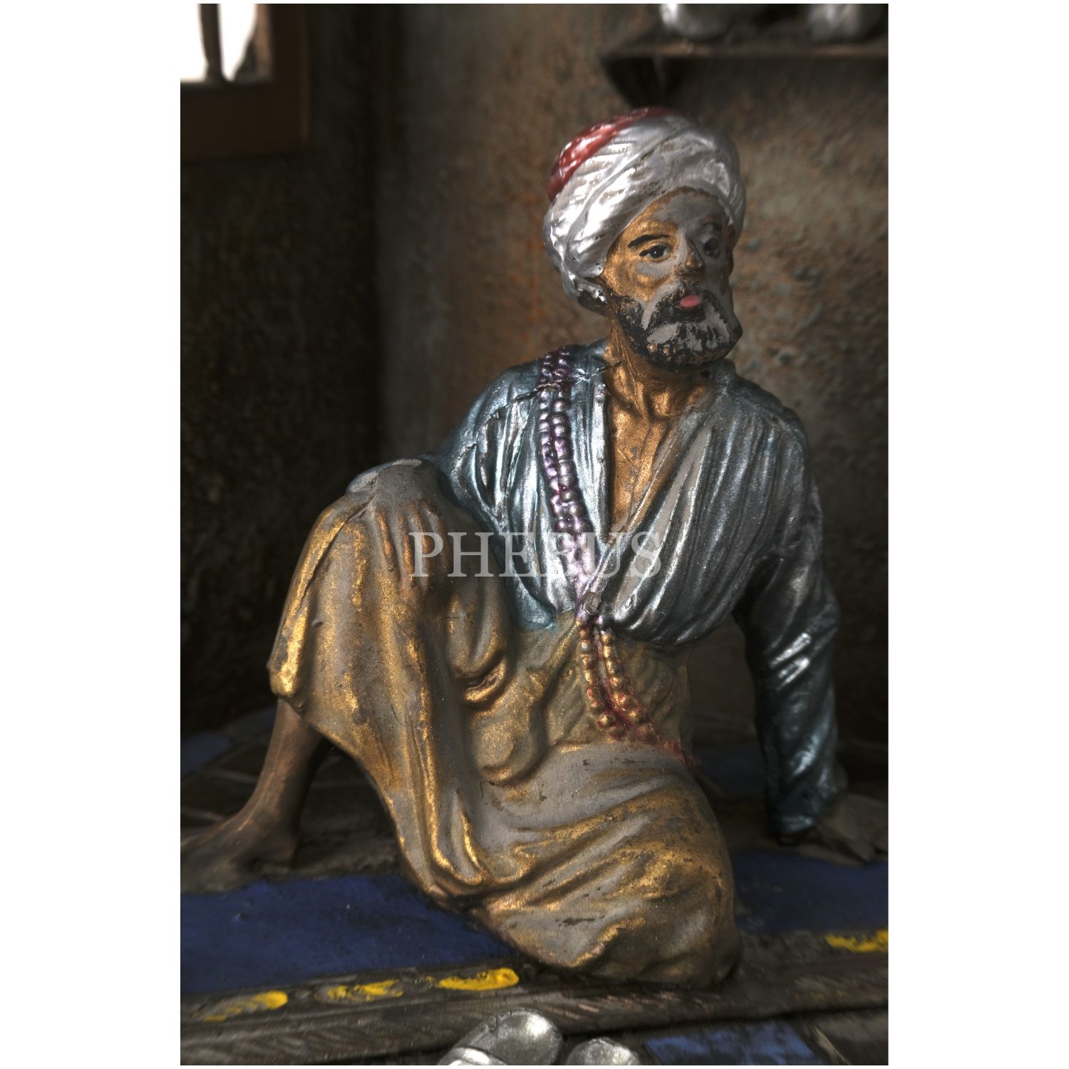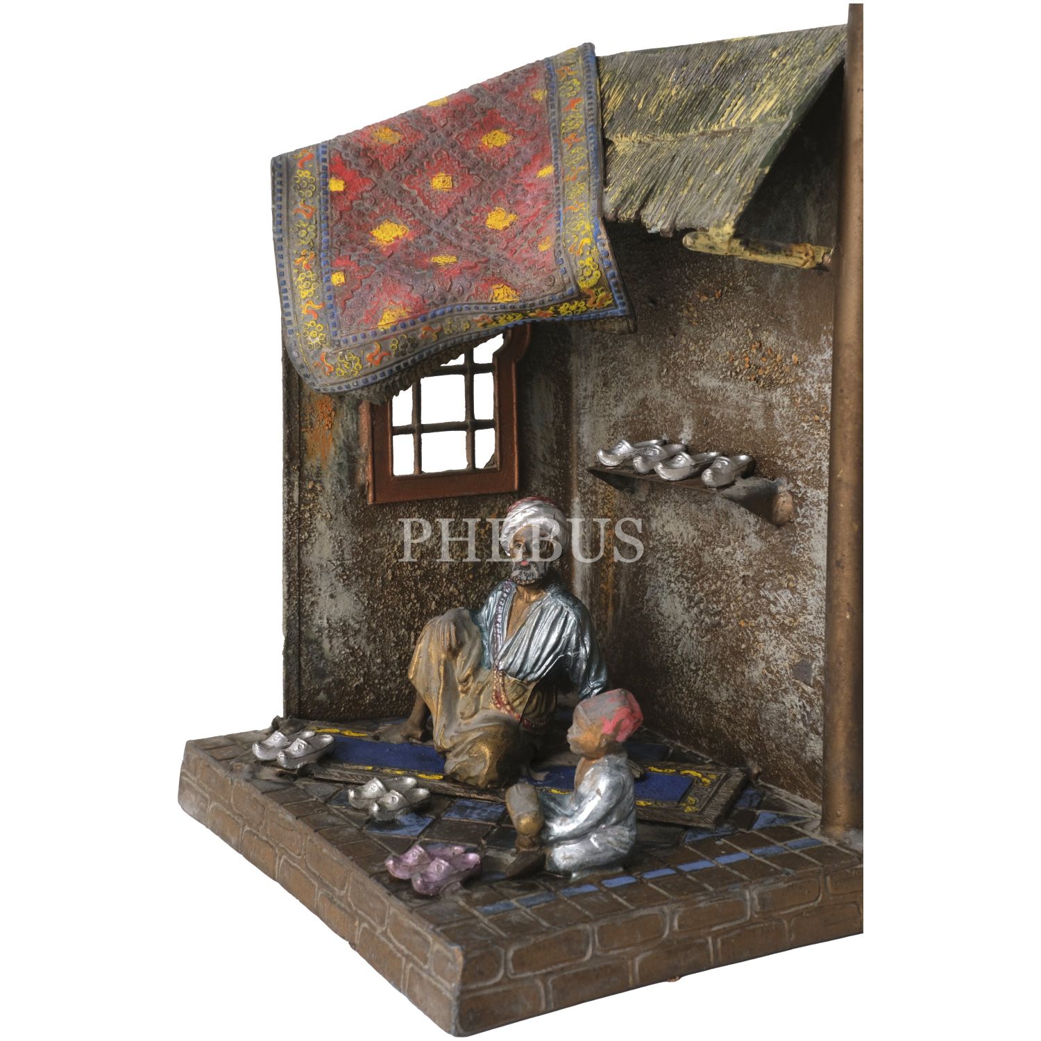 19. yüzyıl Viyana üretimi, harika detaylarla bezenmiş oryantal çarık dükkanı formunda masa lambası, 38x15x12 cm...