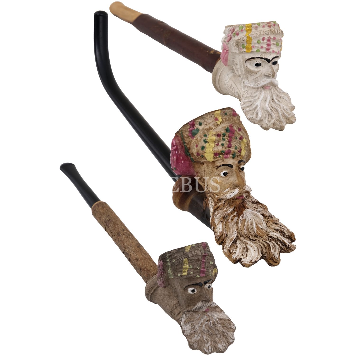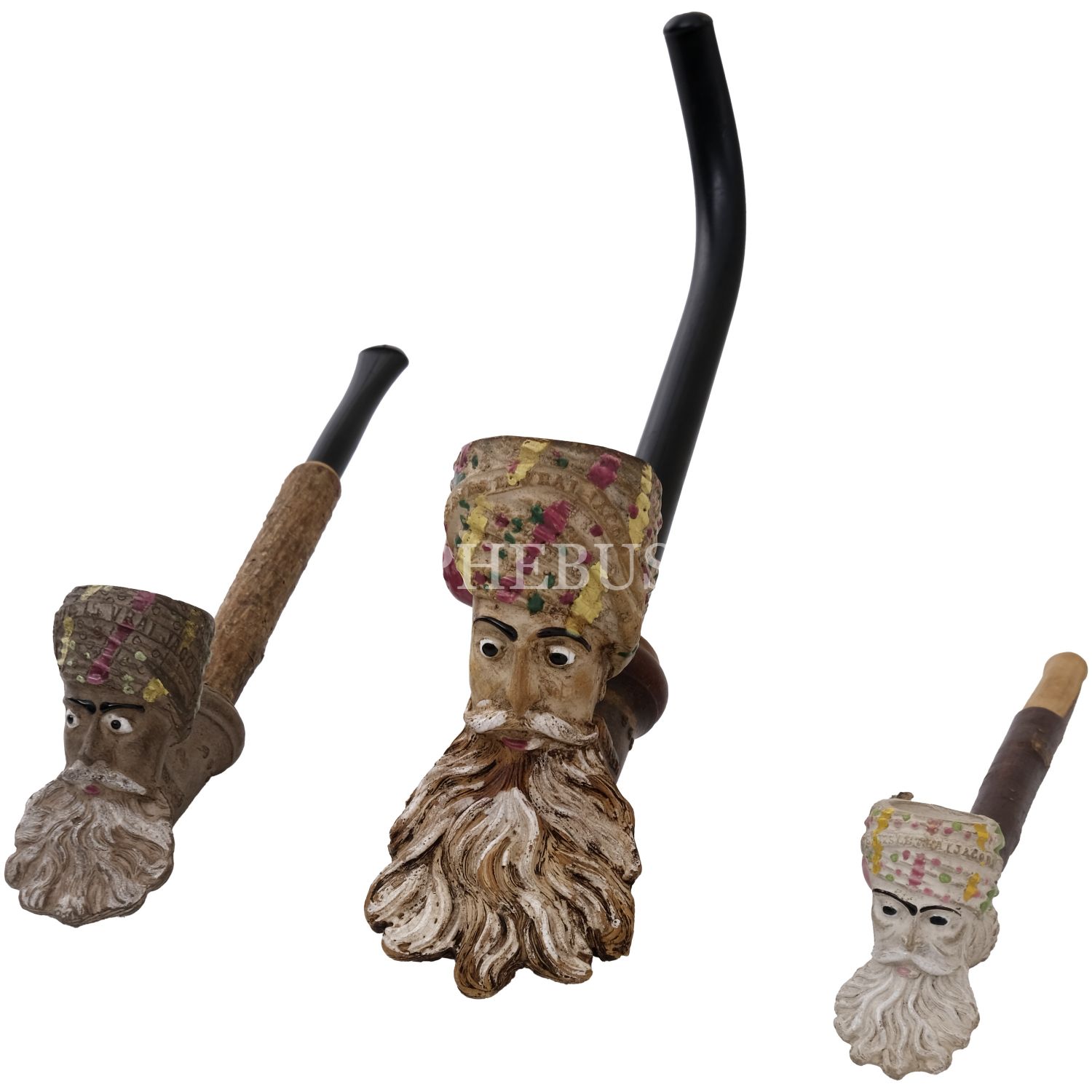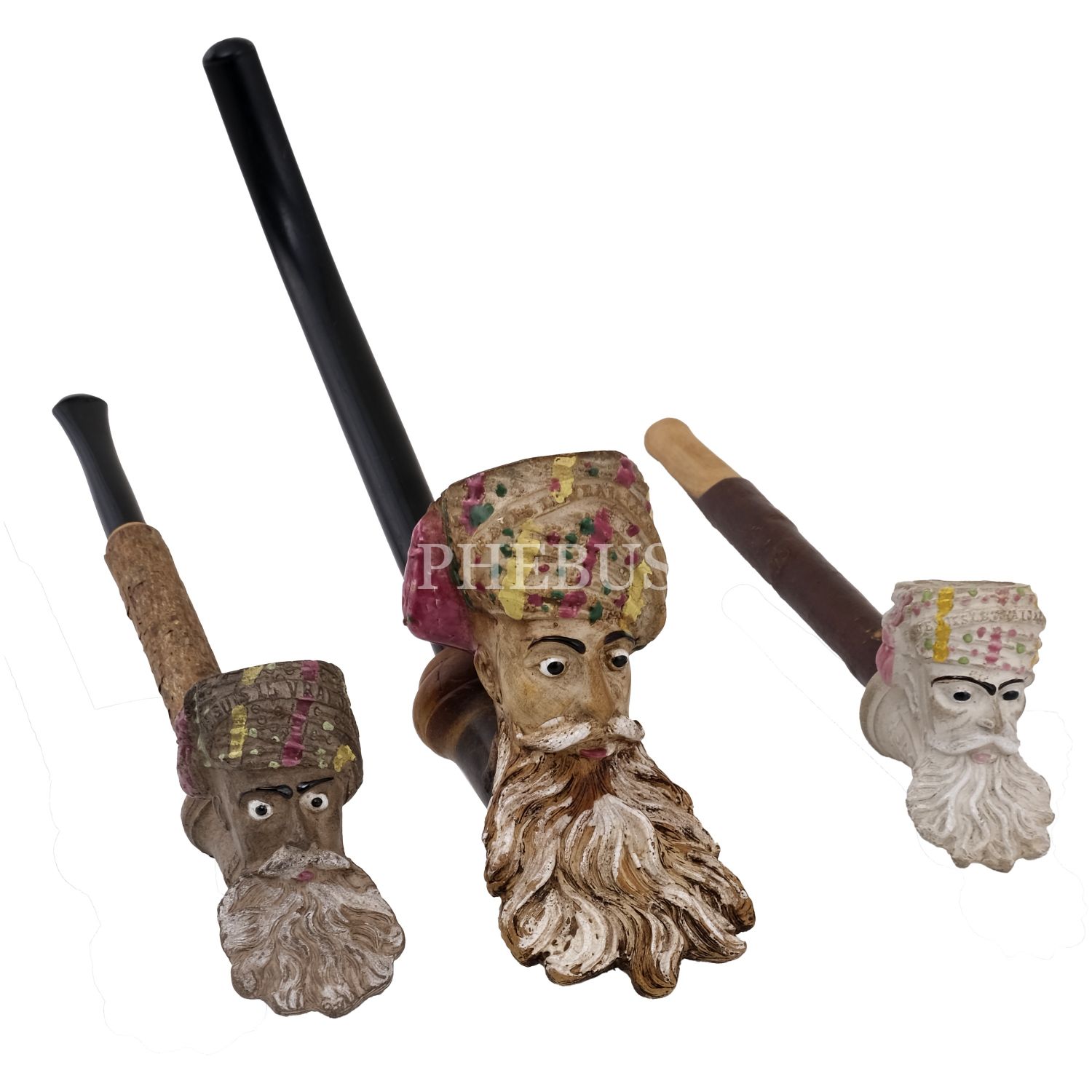Osmanlı pazarı için üretilmiş, sarıklı ve sakallı Osmanlı figürlü, 3 adet "Jacob" marka lüle ve ahşap çubukları...